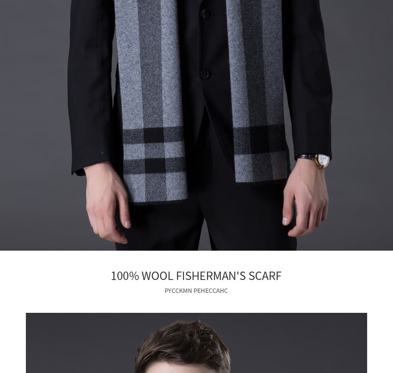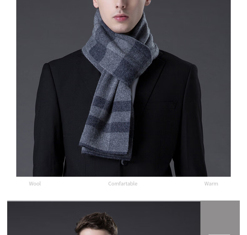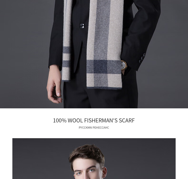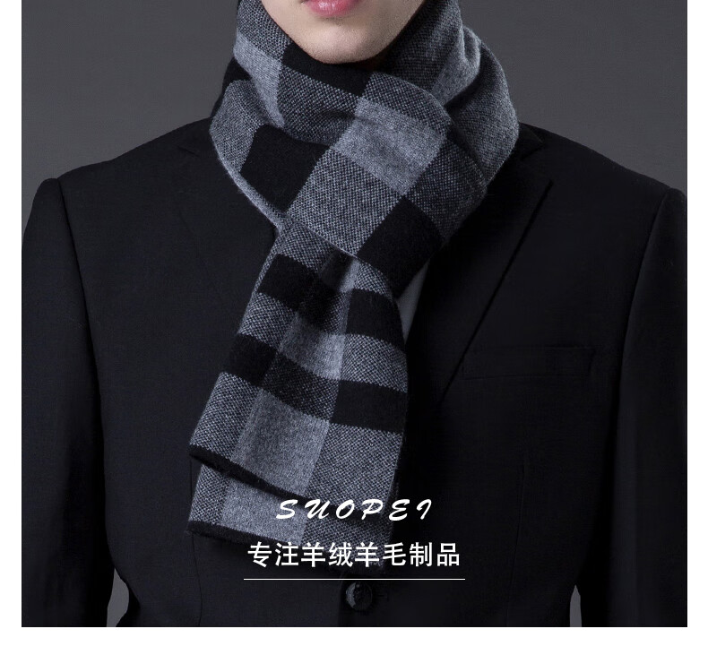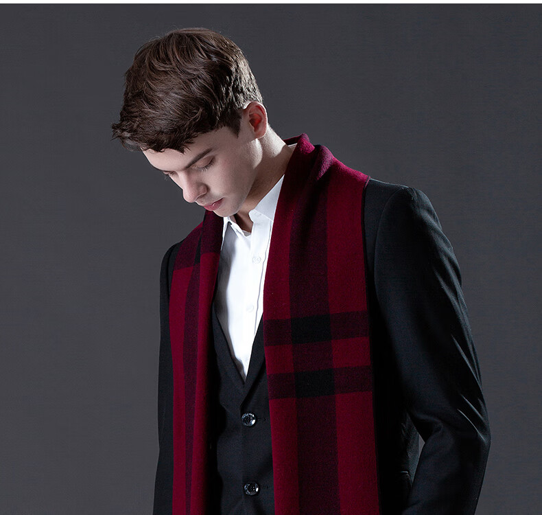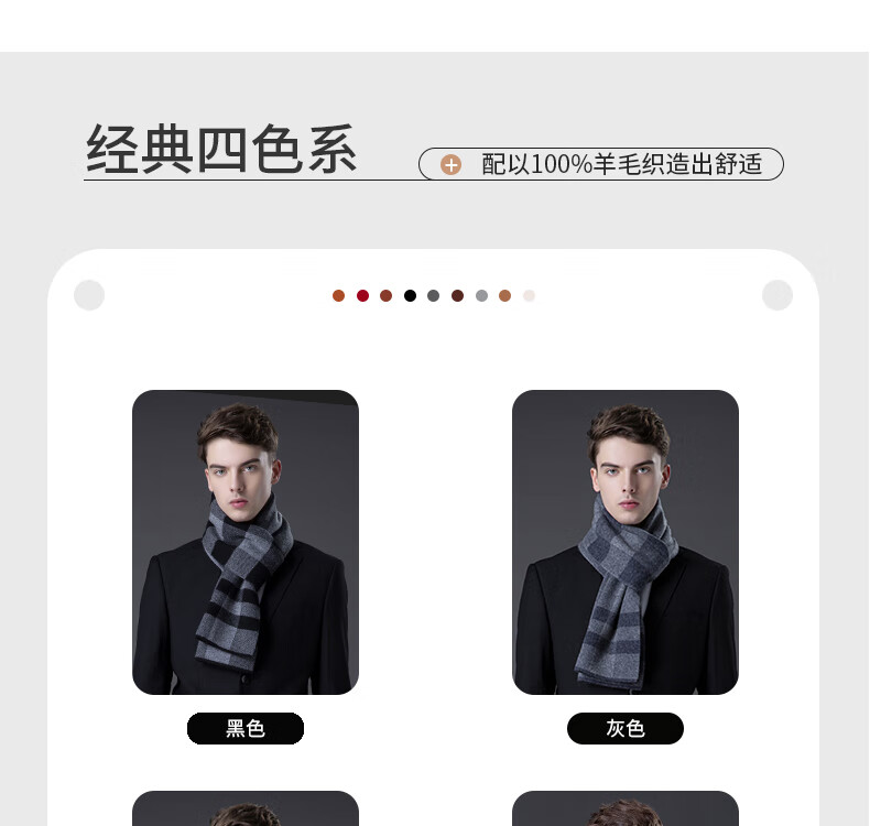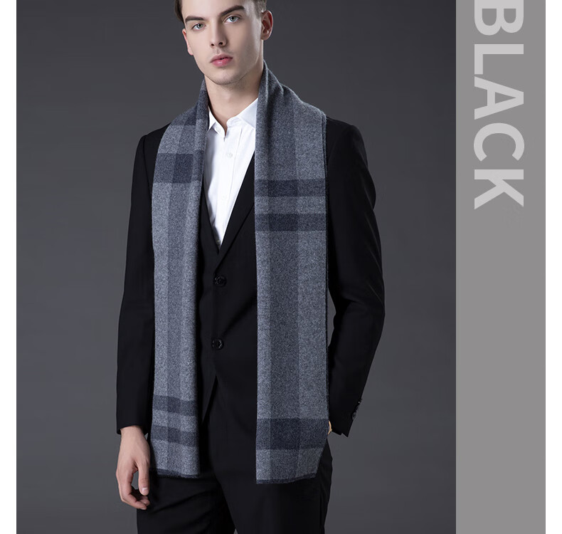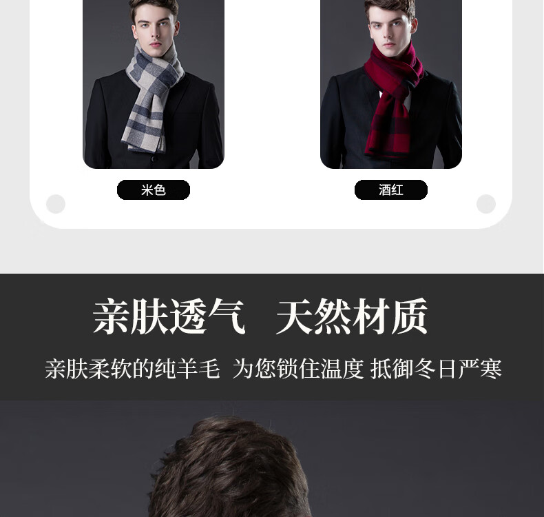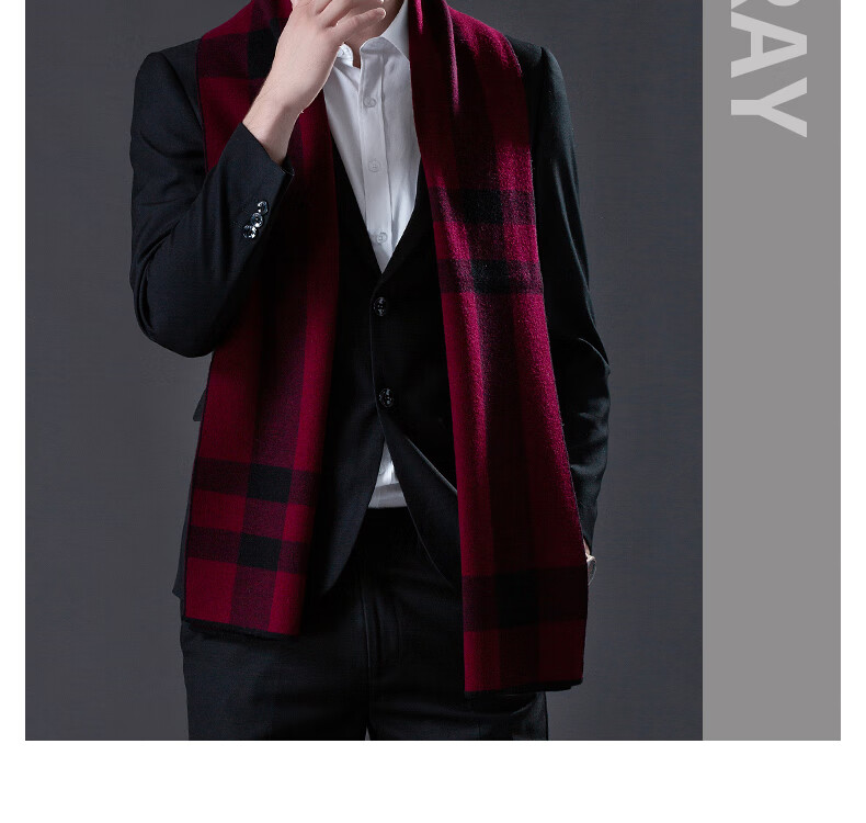 ERDOS Ordos pure wool scarf men's winter birthday gift versatile warm scarf men's scarf gift box rice gray-PY3008