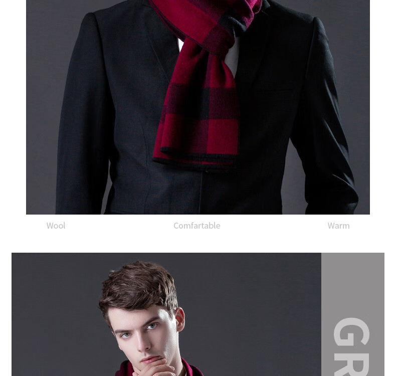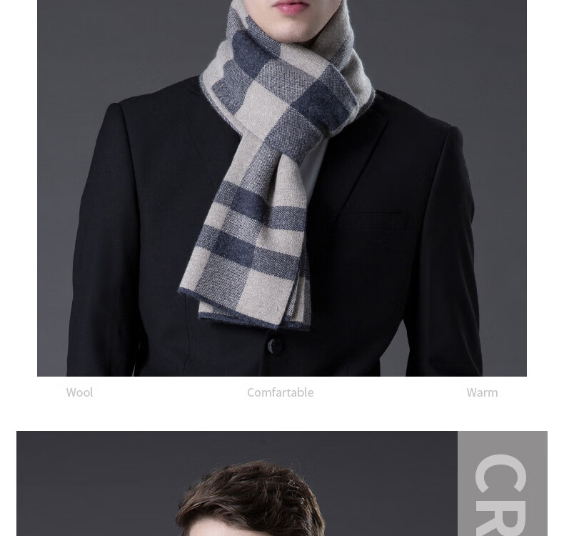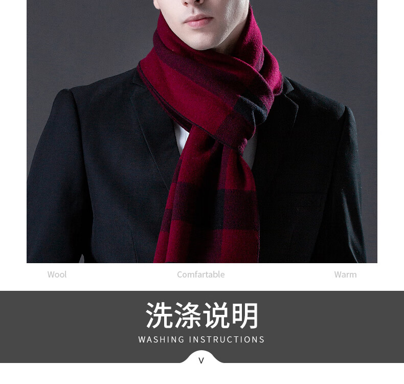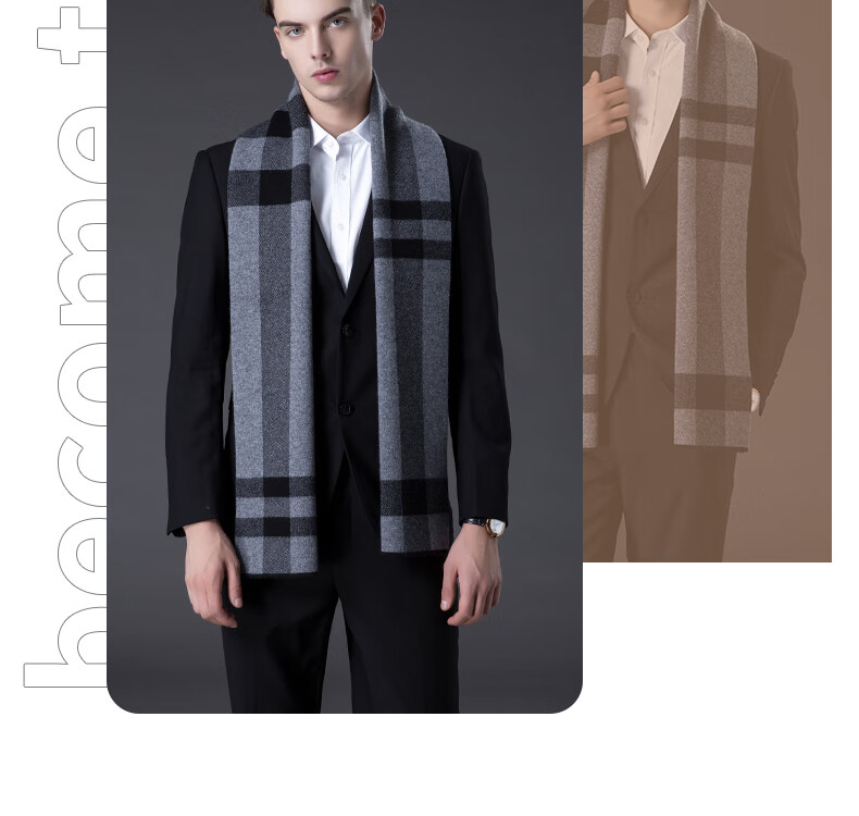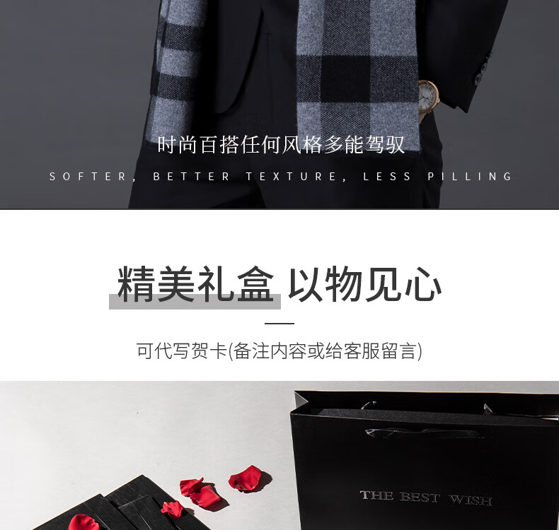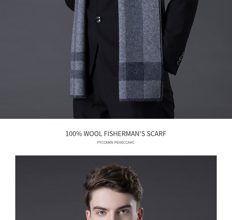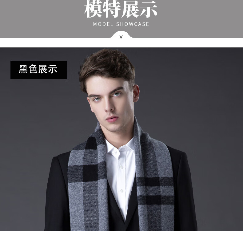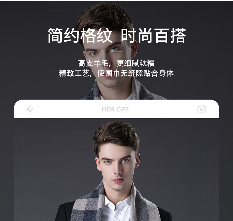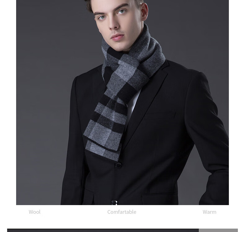 ERDOS Ordos pure wool scarf men's winter birthday gift versatile warm scarf men's scarf gift box rice gray-PY3008
