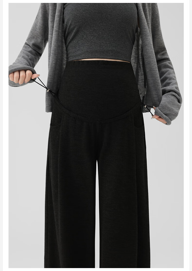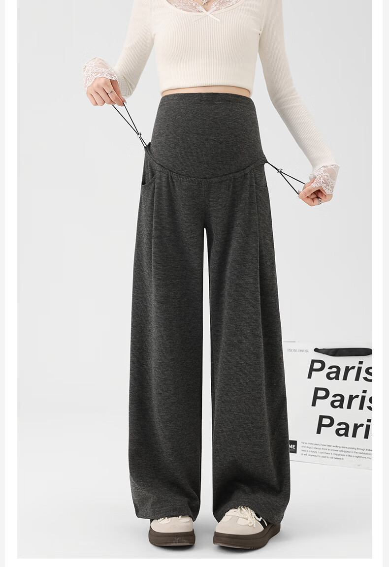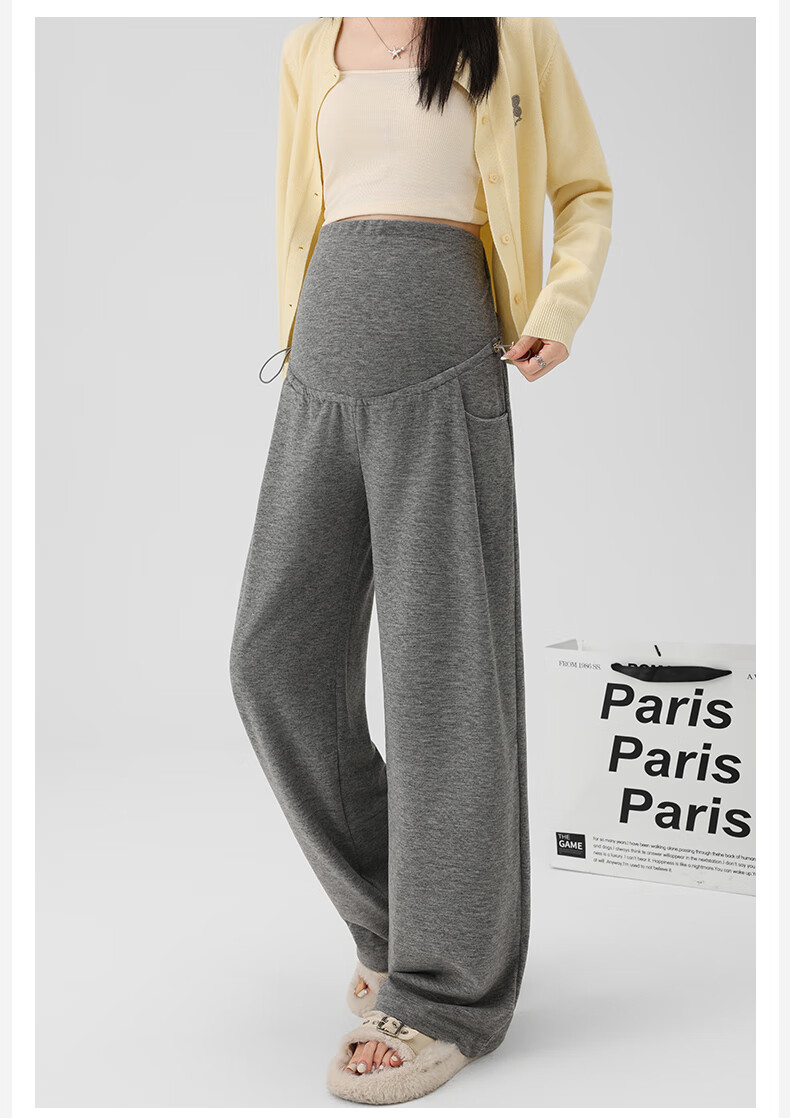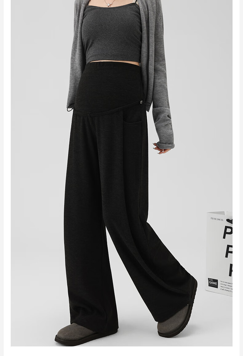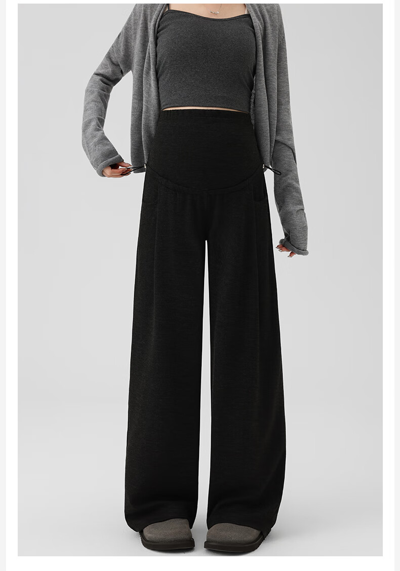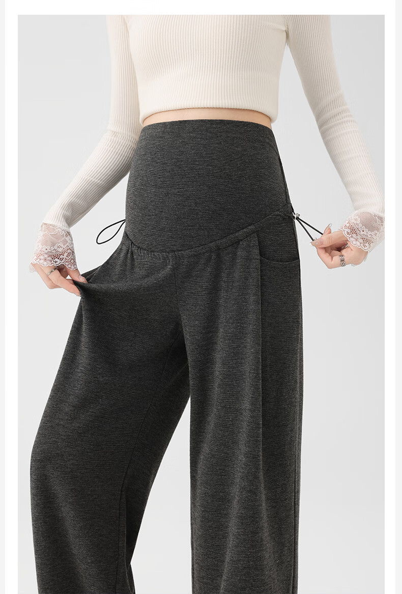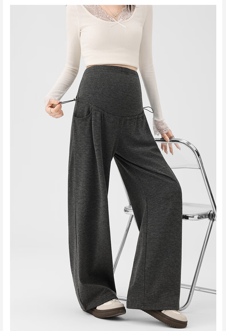 Ranqi Mommy Maternity Pants Autumn Outerwear Pregnancy Pants Spring and Autumn 2025 New Belly Supporting Wide Leg Pants Autumn and Winter Dark Gray Velvet Style L