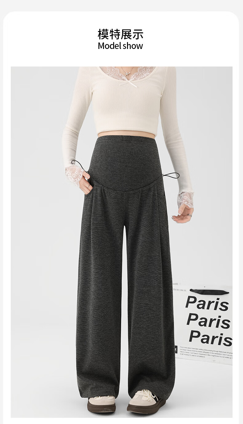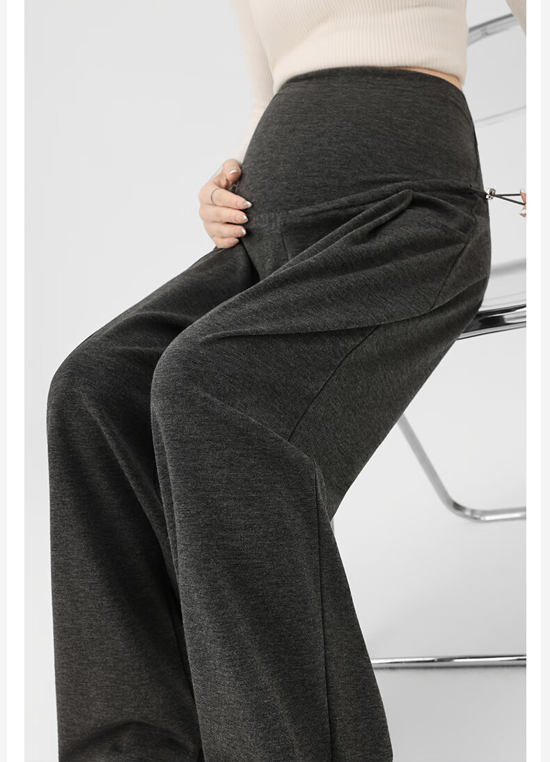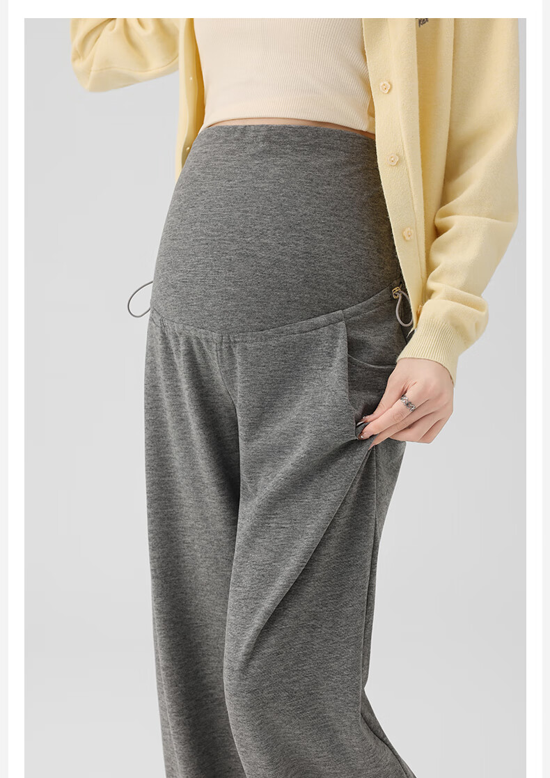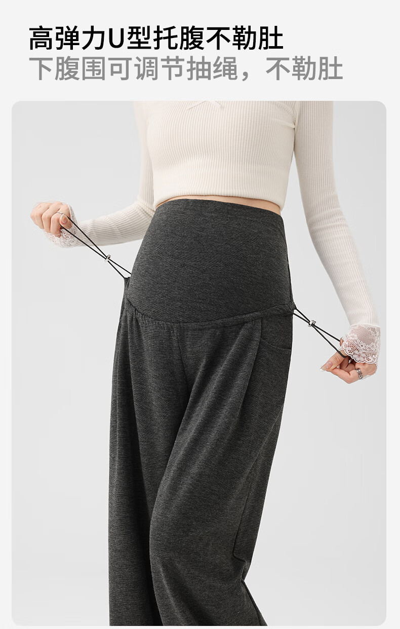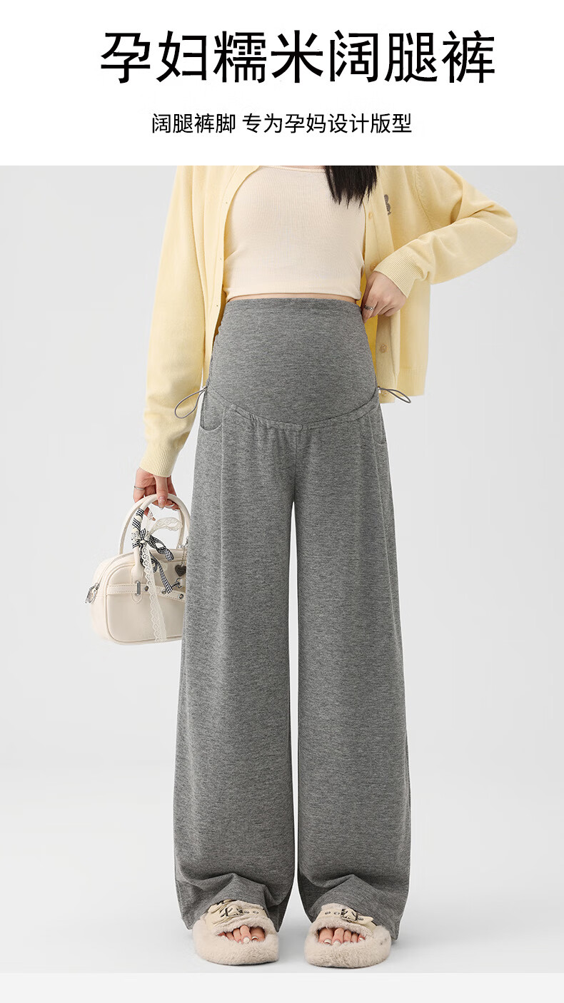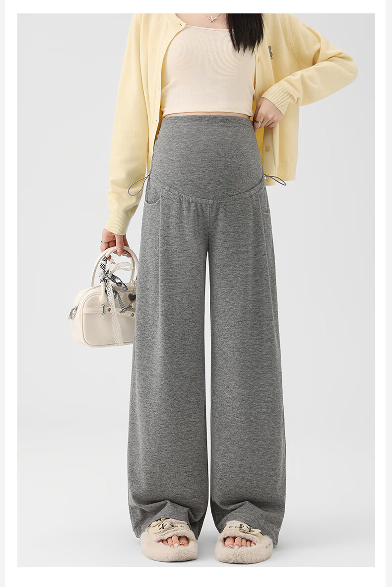 Ranqi Mommy Maternity Pants Autumn Outerwear Pregnancy Pants Spring and Autumn 2025 New Belly Supporting Wide Leg Pants Autumn and Winter Dark Gray Velvet Style L