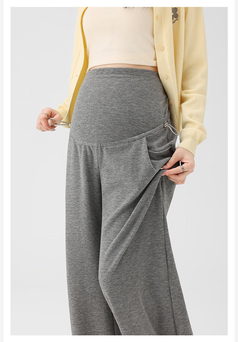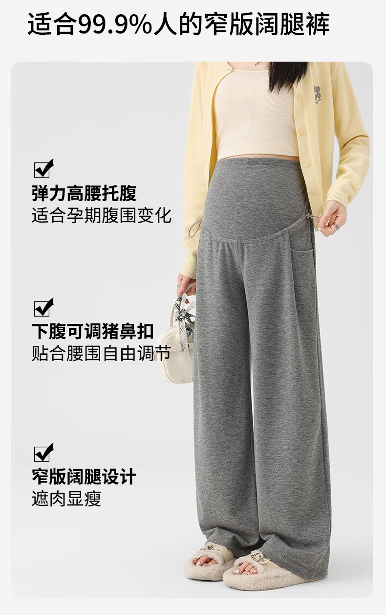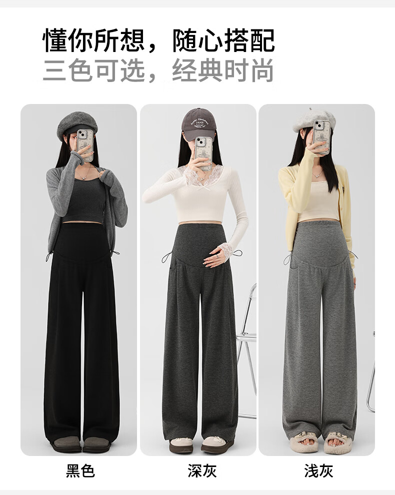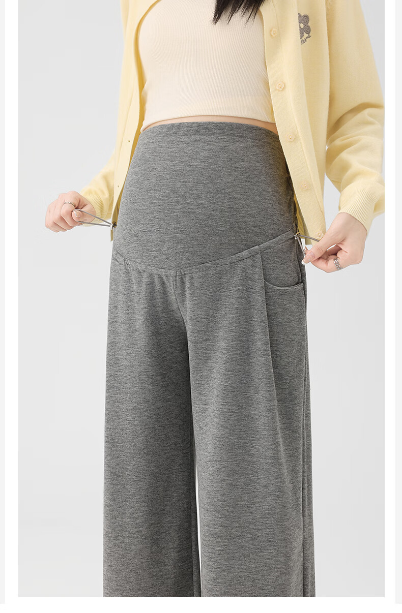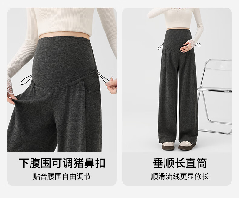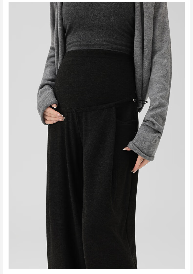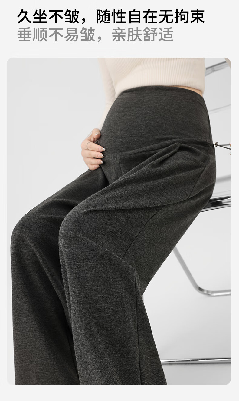 Ranqi Mommy Maternity Pants Autumn Outerwear Pregnancy Pants Spring and Autumn 2025 New Belly Supporting Wide Leg Pants Autumn and Winter Dark Gray Velvet Style L