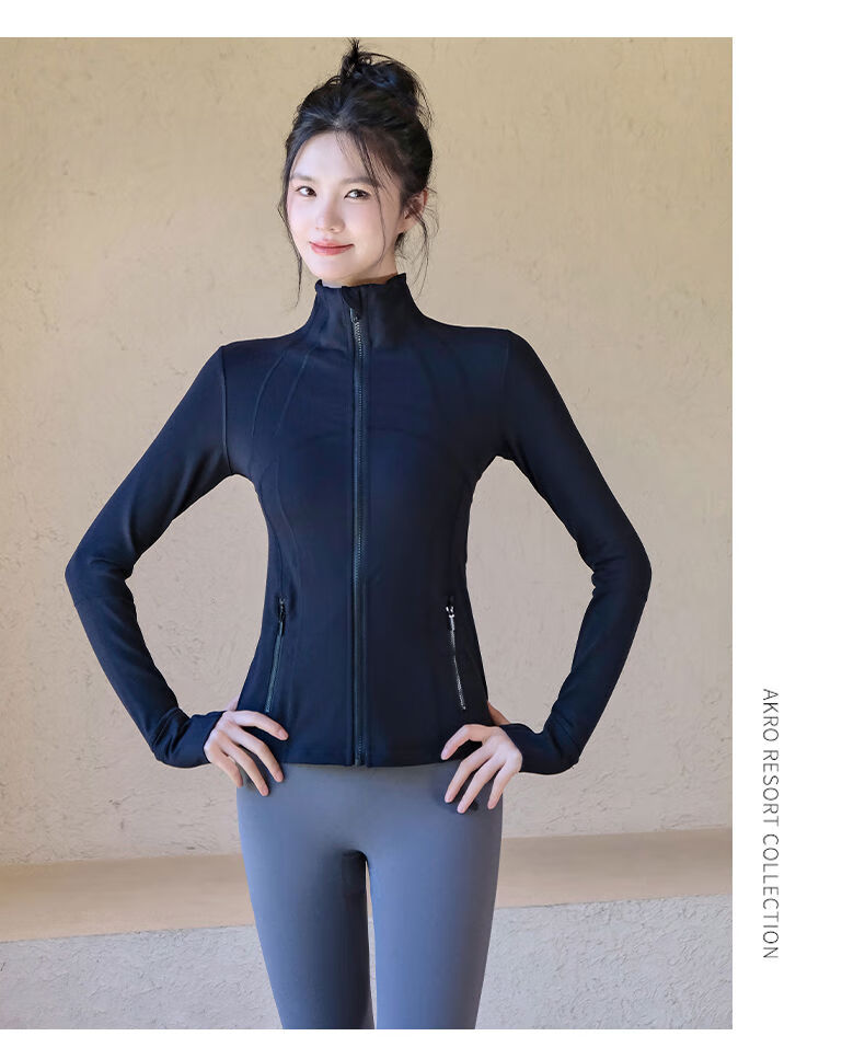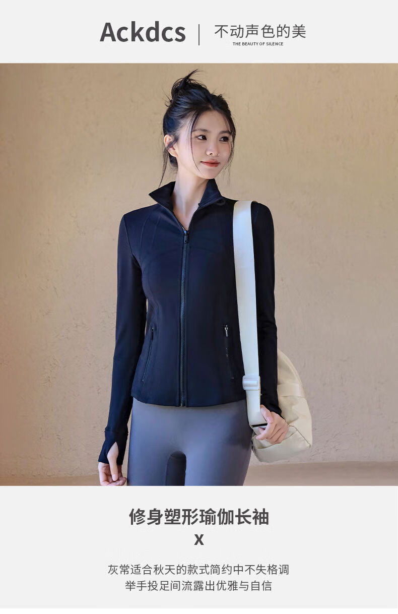 ACKDCS Slim Fit Yoga Wear Jacket Women's Autumn and Winter New Sports Jacket Top Fitness Long-Sleeved Cycling Suit Black Jacket + Sea Rock Gray Pants Suit with an Instant Discount of 10 Yuan S S