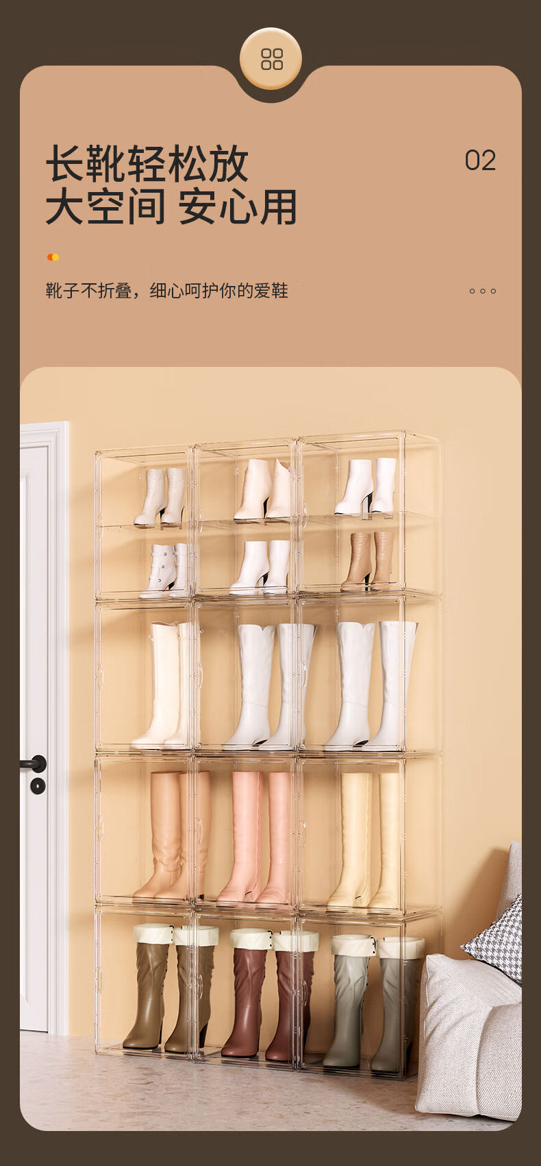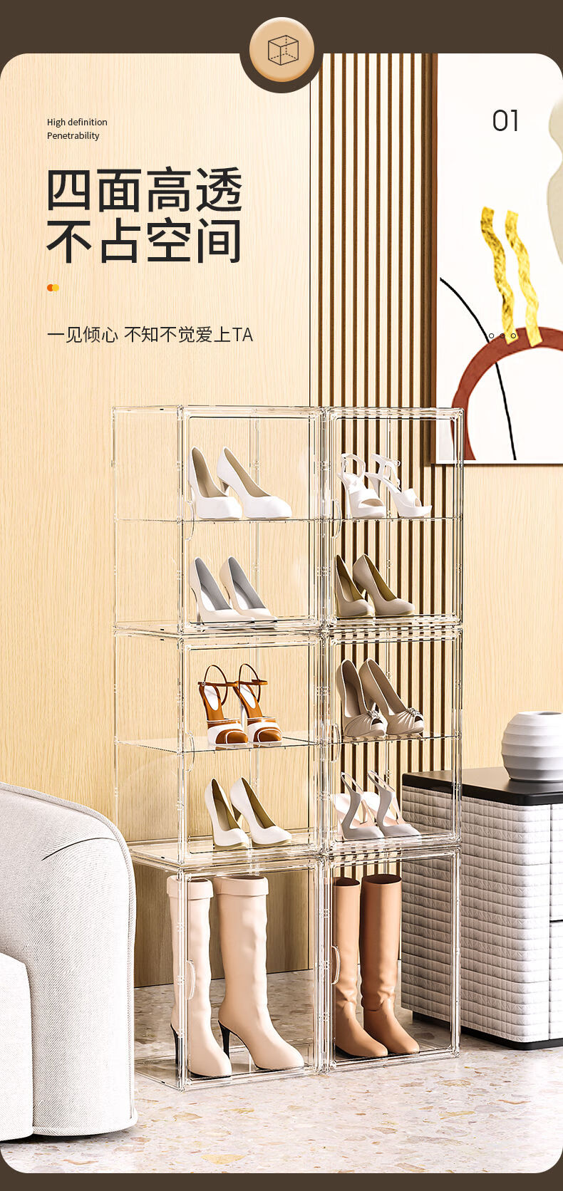Transparent shoe box drawer folding shoe rack home door dust-proof long boot storage box acrylic shoe cabinet side opening - transparent 10 pieces double magnetic door 48 yards easy to install