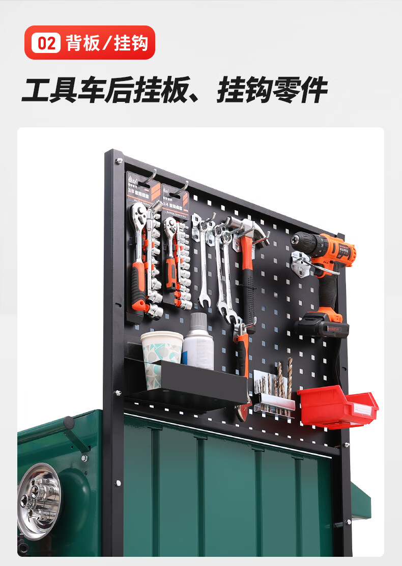 Green Forest Auto Repair Tool Cart Drawer Hardware Repair Small Push Box Multifunctional Mobile Heavy Tool Cabinet Workshop Use Space Upgrade DA-27 Green Black + Backplate Package Tool Hanging and Access Quick Man One
