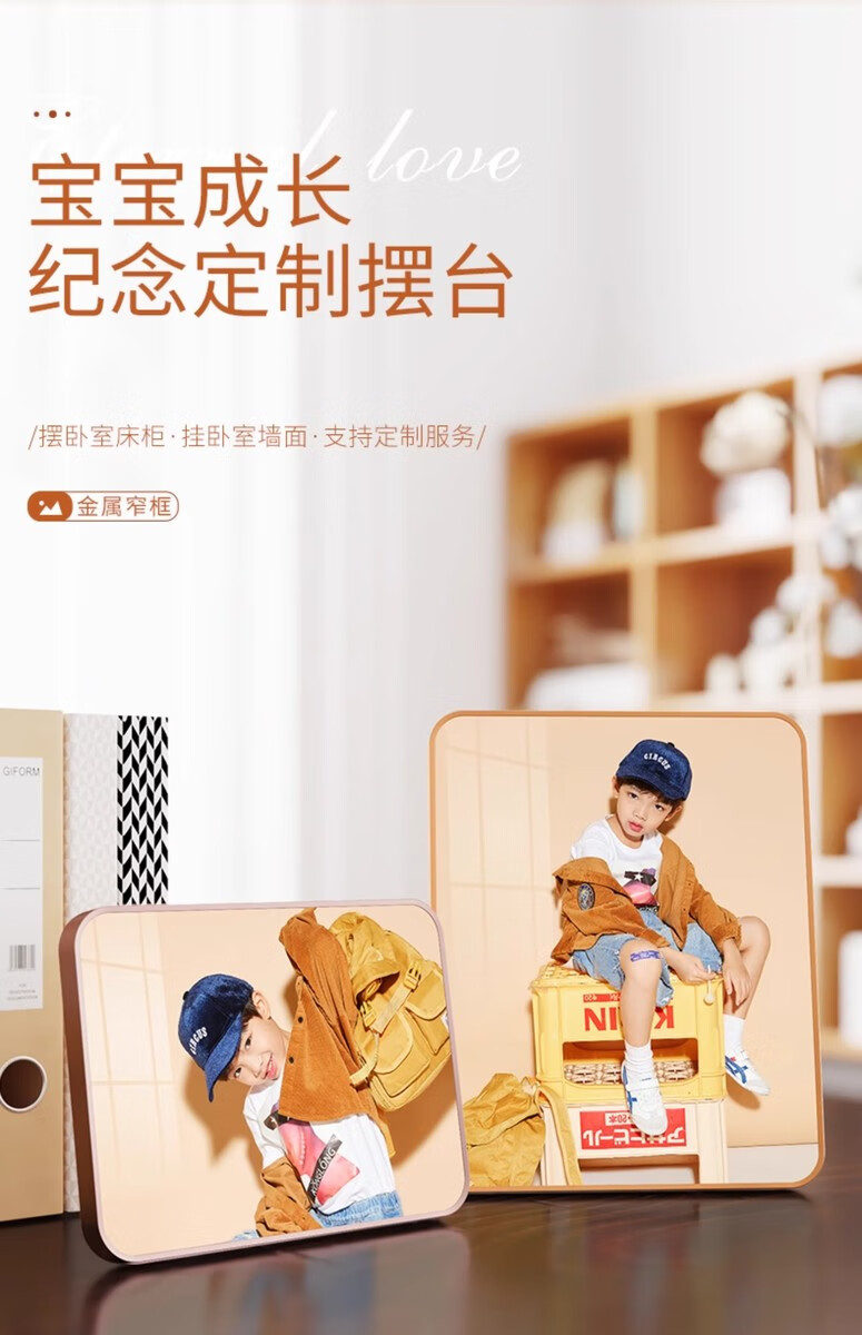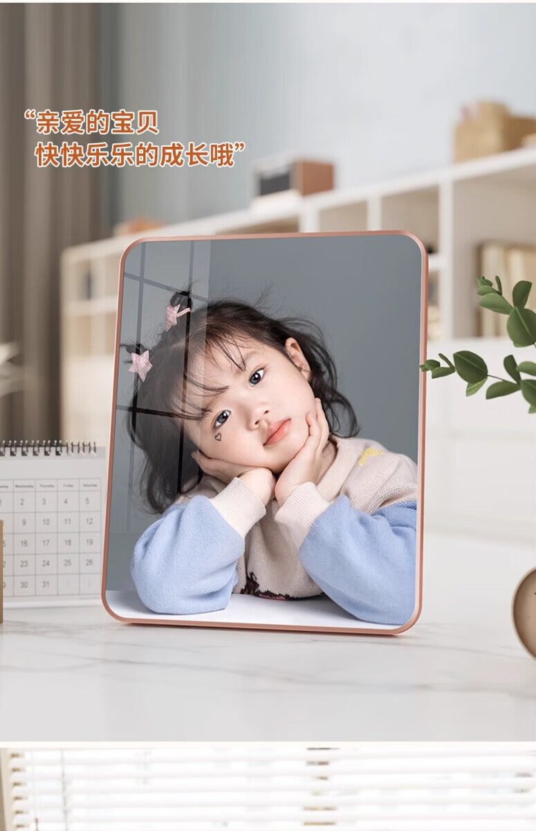 Fantasy baby photo crystal table with rose rounded corner photo frame. Customizable wedding photo studio quality. Single frame. Rose gold - rounded corner table (vertical version). 8 inches 15.2x20.3cm. High definition production - studio quality.