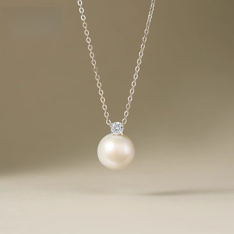 Yingxin Pearl Necklace Pendant Princess Diana Necklace Women's Round Strong Light Large Size Plain Beads Collarbone 10-11mm, 40+5cm Extended Chain with Tail Tag+