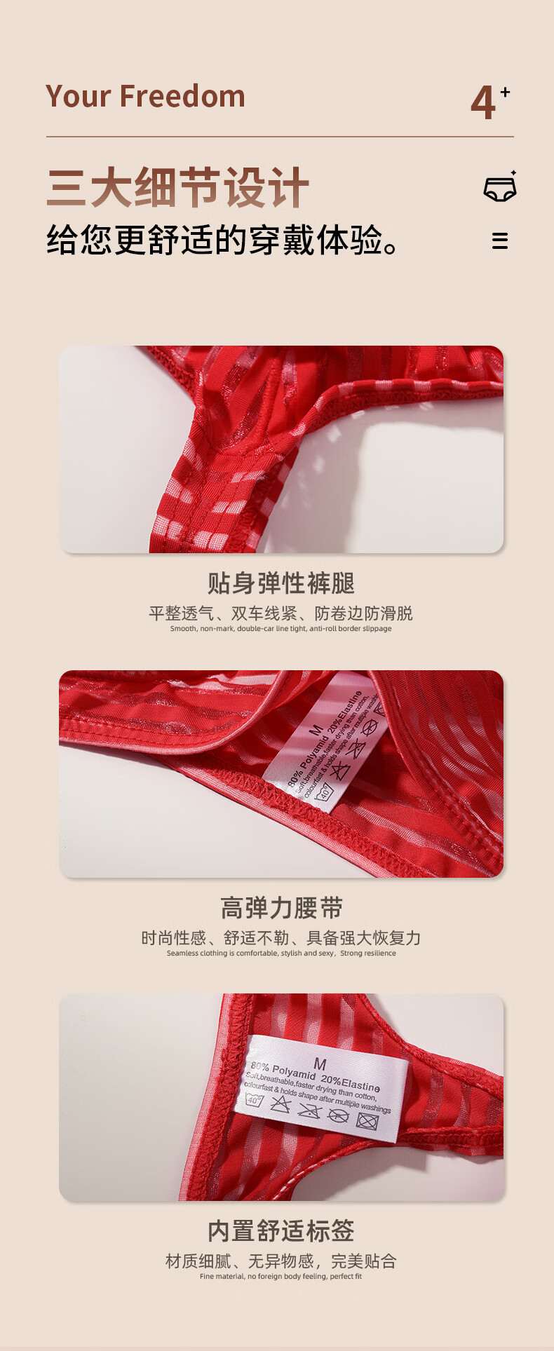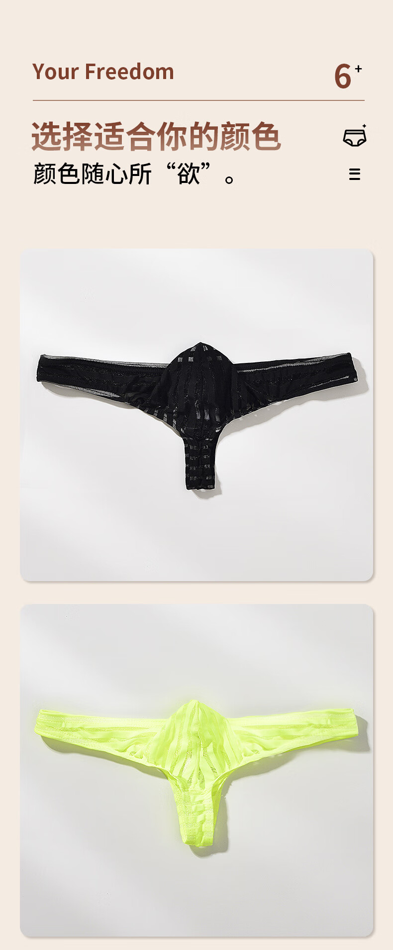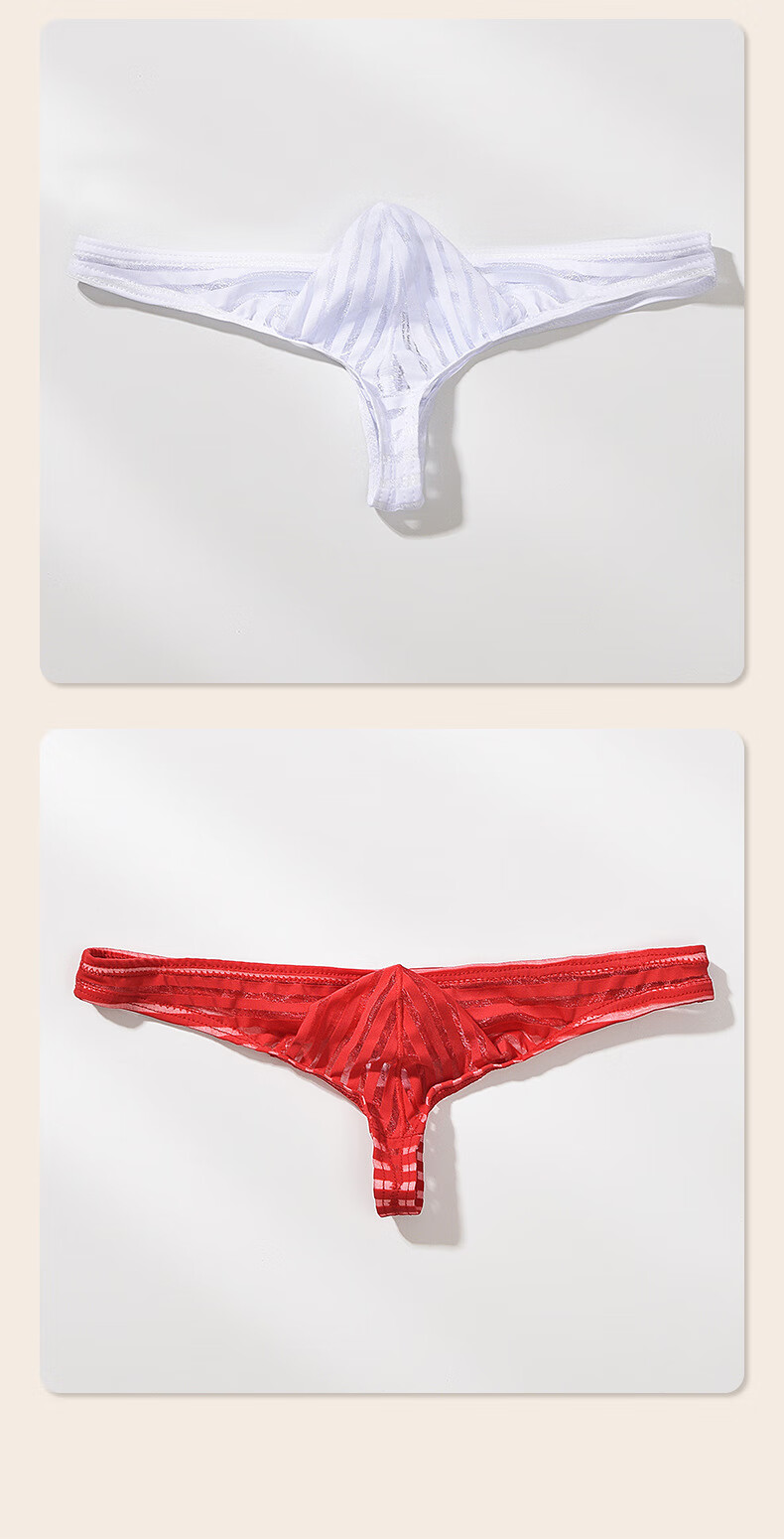 Men's mesh underwear transparent striped thong low-waist sexy thin bag underwear men's youth T-pants white M