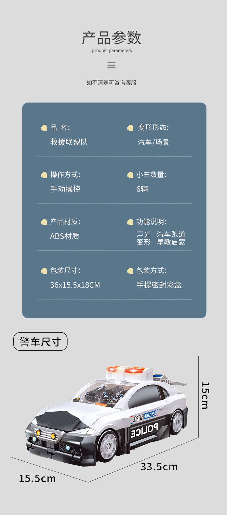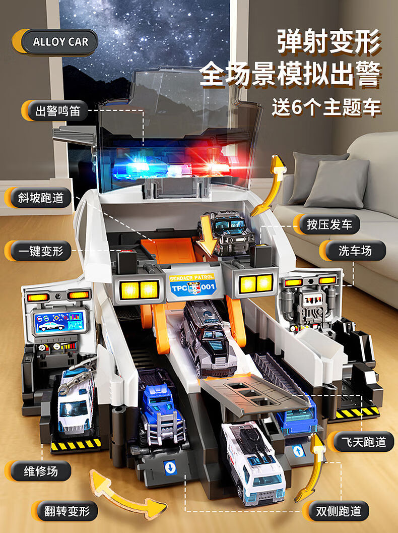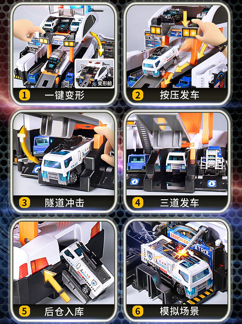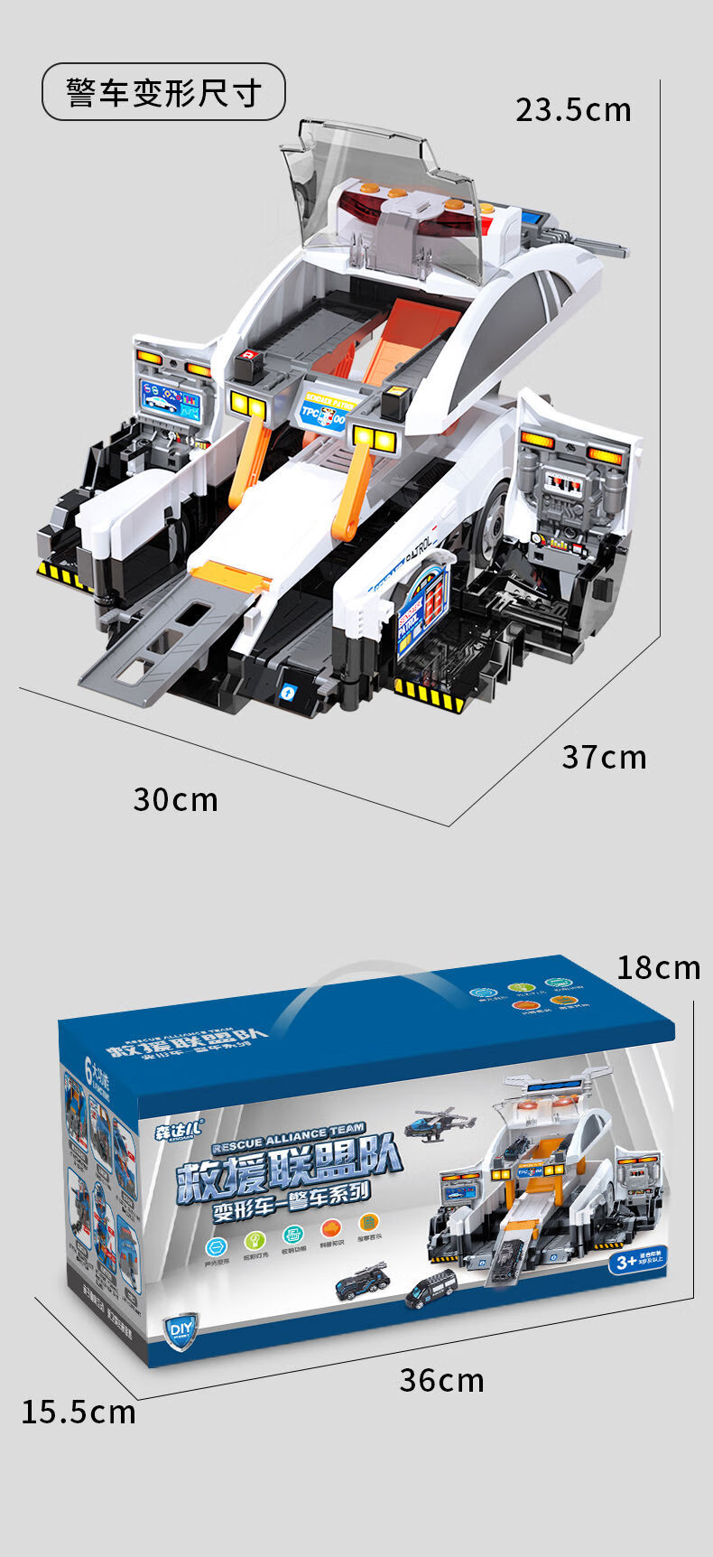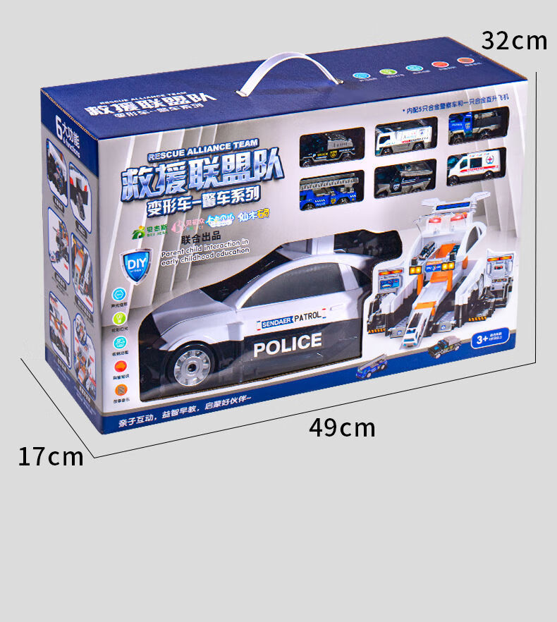 Shantou Lincun Children's Large Alloy Police Car Toy Boy Car Model Car Simulation Deformation Door Opening 110 Special Police Car Transformed Fire Truck Three-Layer Scene 6 Alloy Themed Firefighting + Exquisite Gift Box + Stickers Others