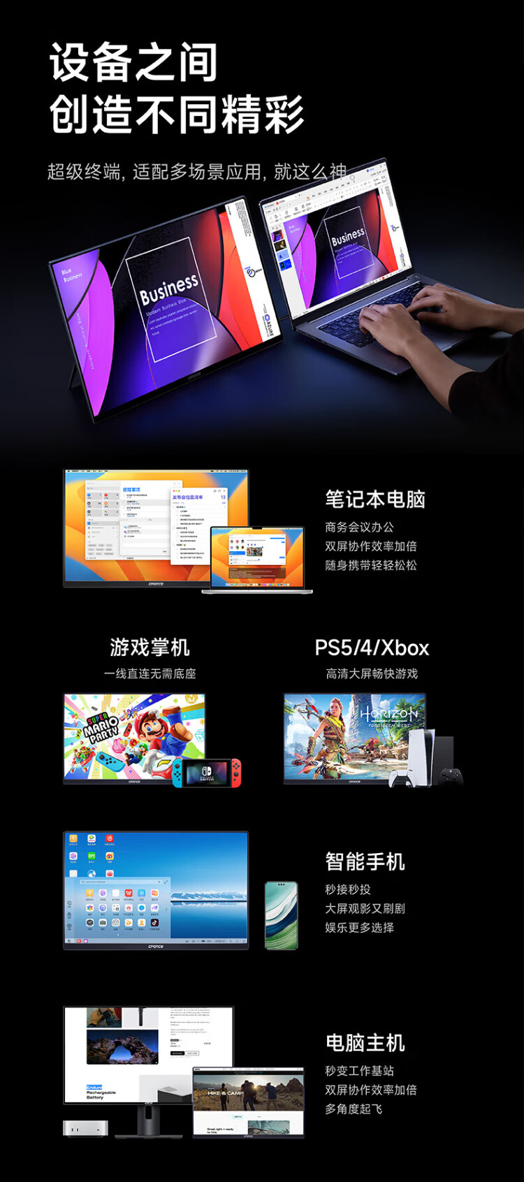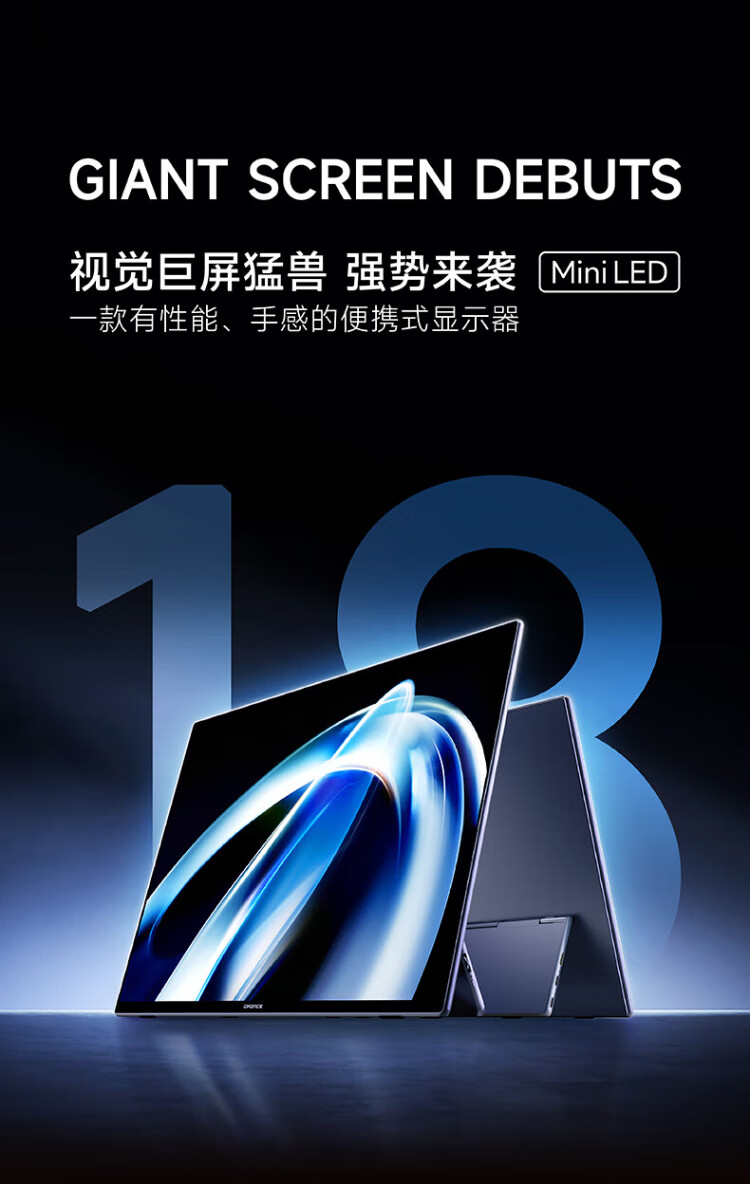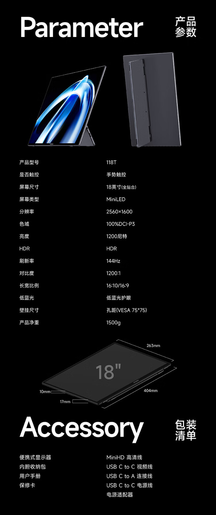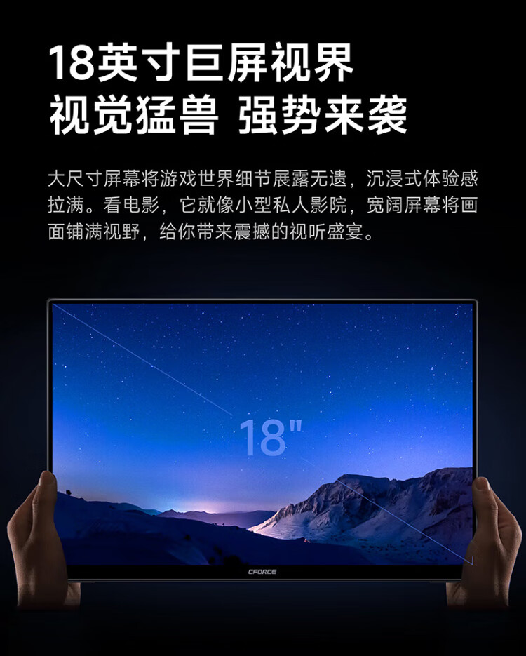 C-FORCE 18-inch MiniLED touch 144hz high brush portable display switch mobile phone laptop secondary screen portable screen desktop extended screen 2k e-sports screen 16-inch 2.5K 144Hz 16H metal arm hanging
