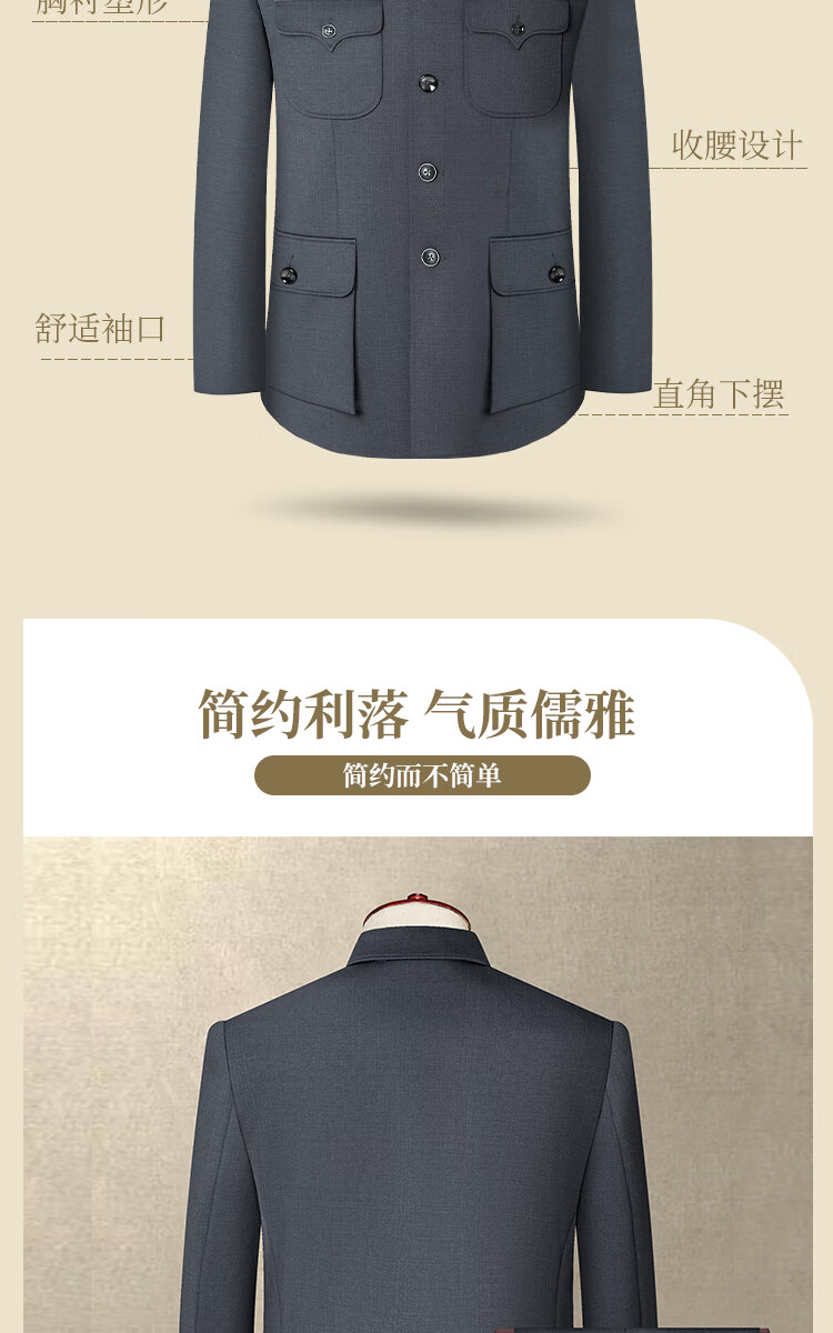 High-end Chinese tunic suit for men, middle-aged and elderly father, winter clothing, old man's Chinese tunic suit, grandpa's spring and autumn suit for men, gray, bright pocket, autumn and winter thickness 2XL 180/76 (160-170Jin Jin equals 0.5kg)