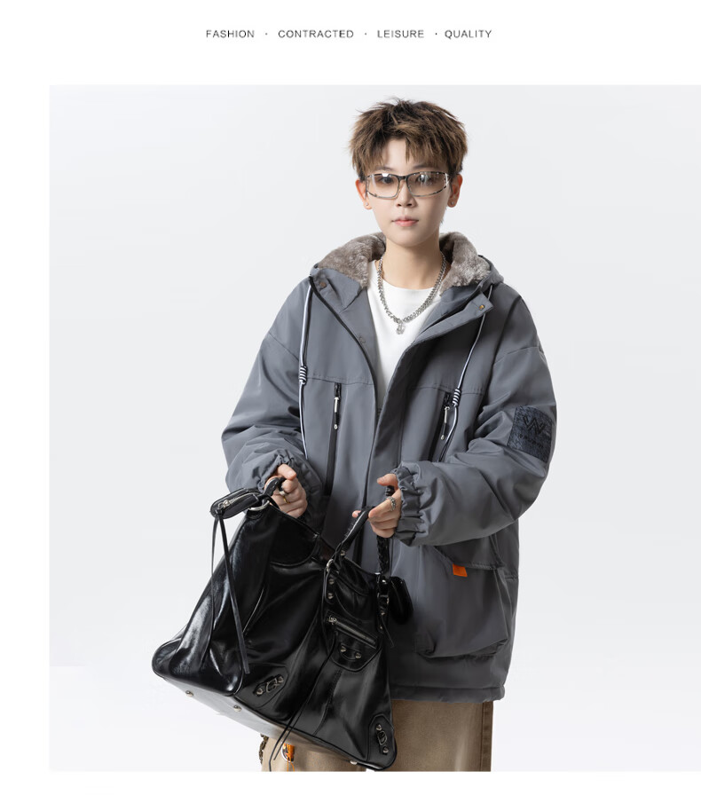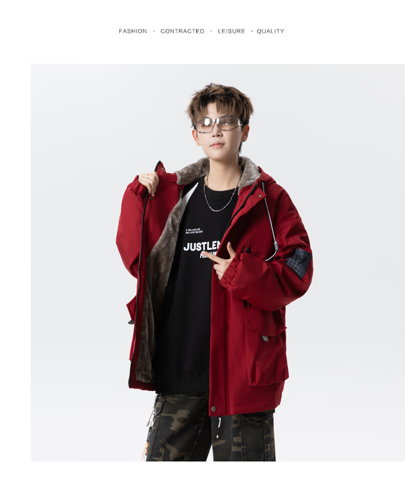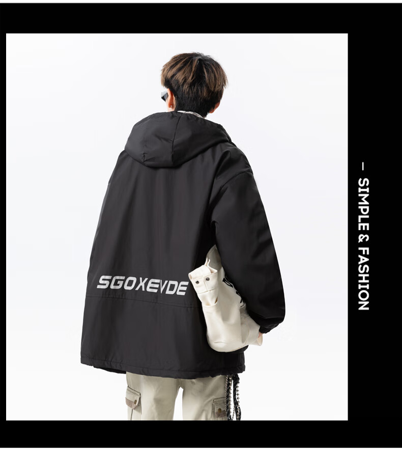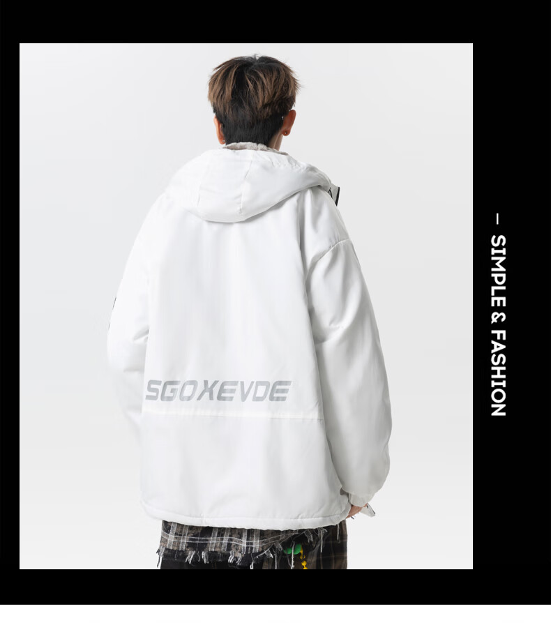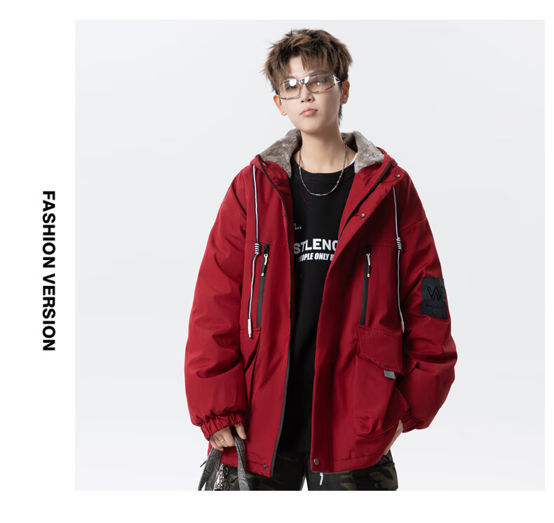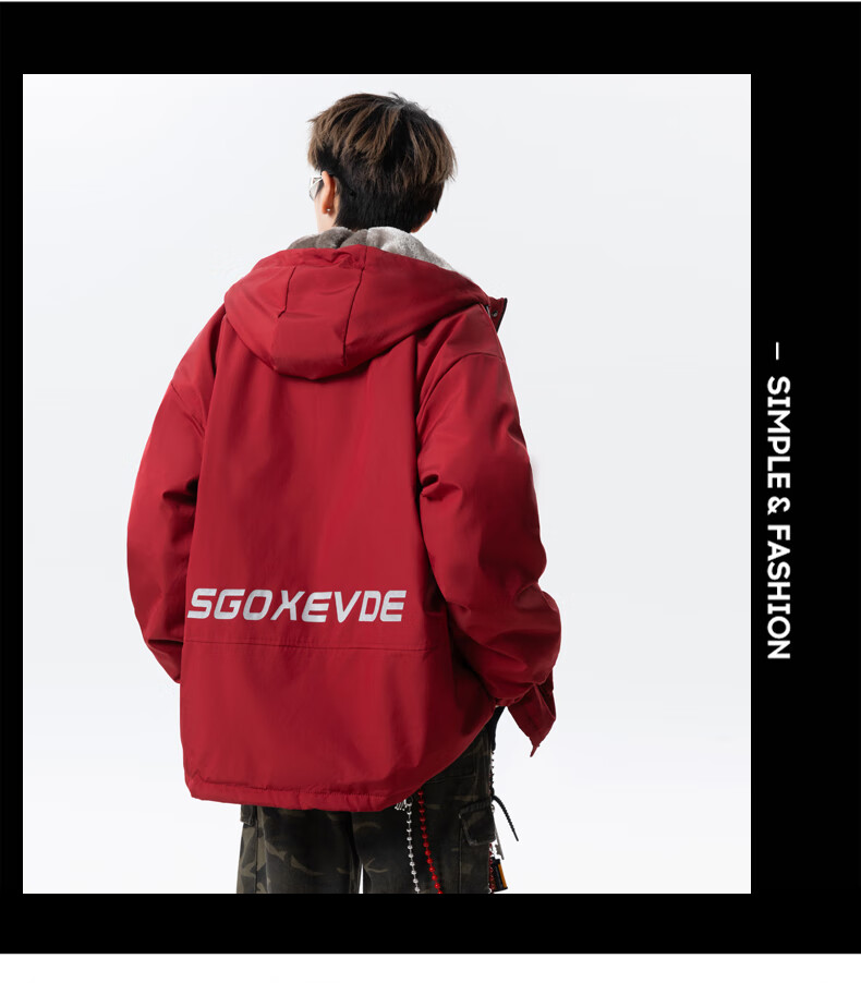 Teenage men's trendy autumn and winter workwear windproof jacket loose hooded jacket plus velvet thickened parka beige 4XL 195 size 180-200Jin Jin equals 0.5 kg