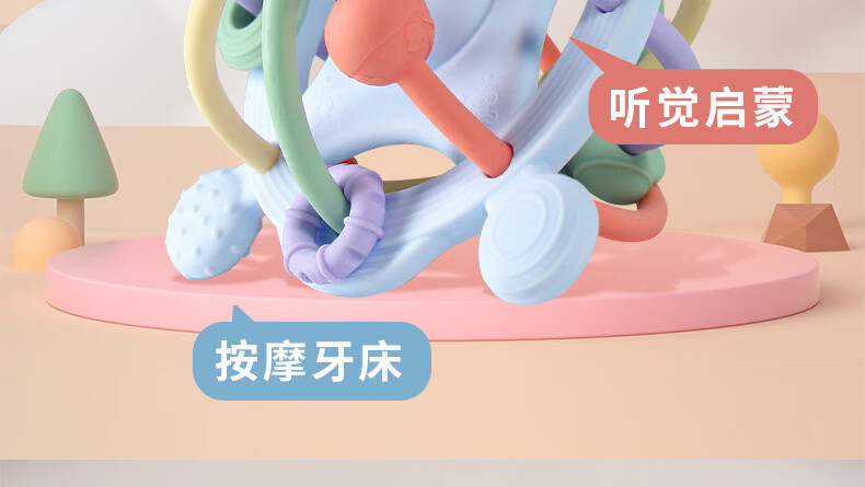 Newborn baby teether ball food grade silicone anti-eating hand chewing gum soothing rattle hand grasping ball chewing gum for teeth grinding blue teething gum 1 pack