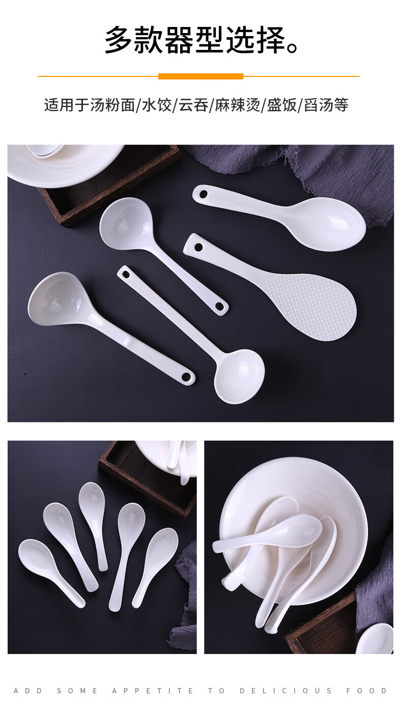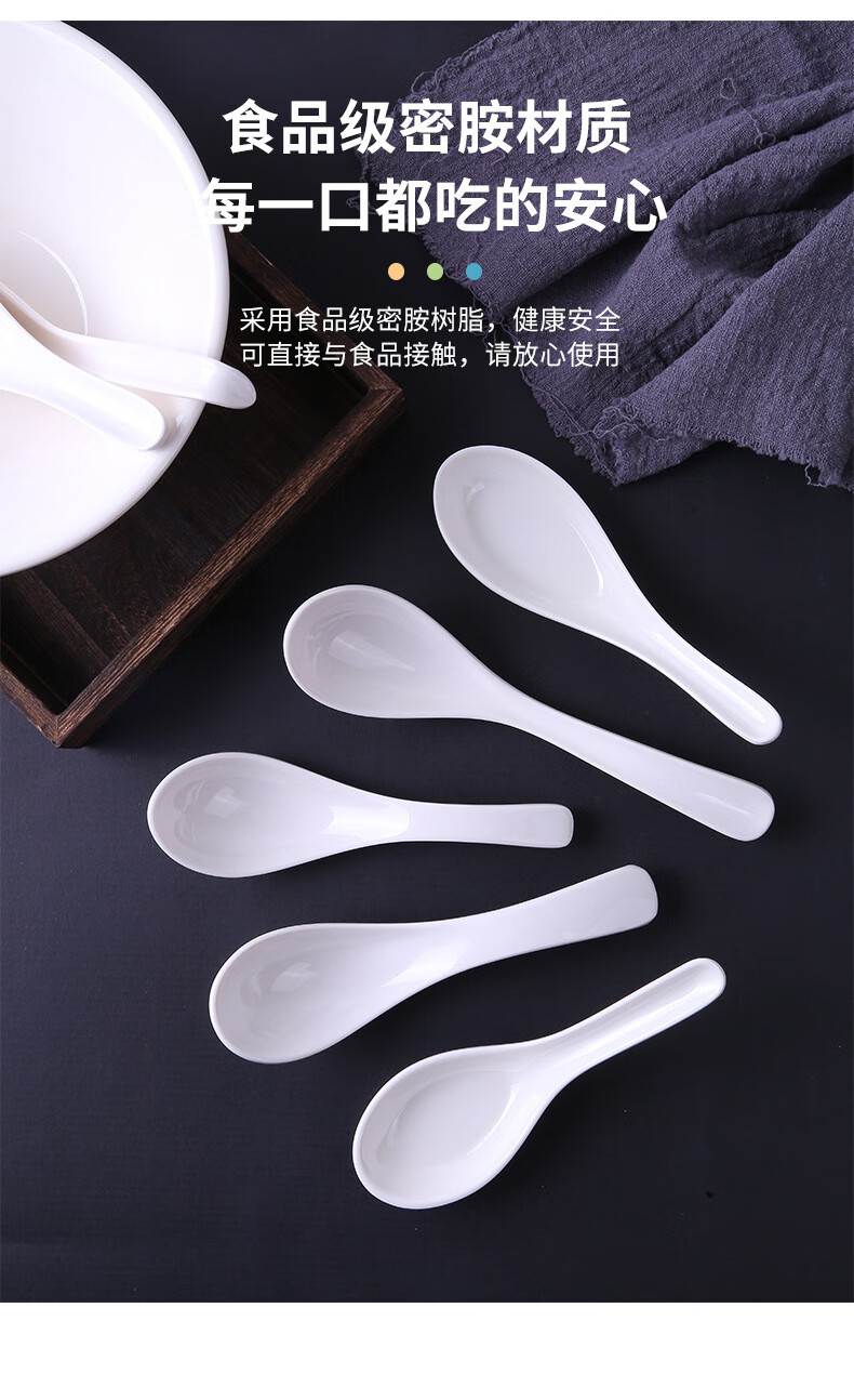 Wuhe sterilizer special melamine tableware white spoon imitation porcelain tableware wholesale hotel home catering fast food hall 50 special spoons for sterilizer
