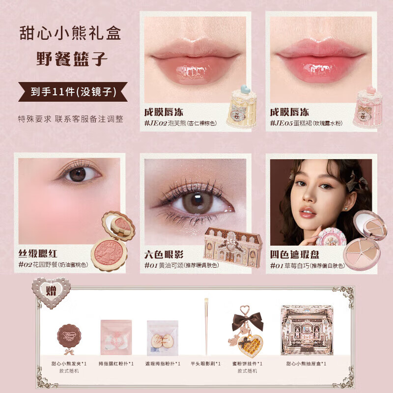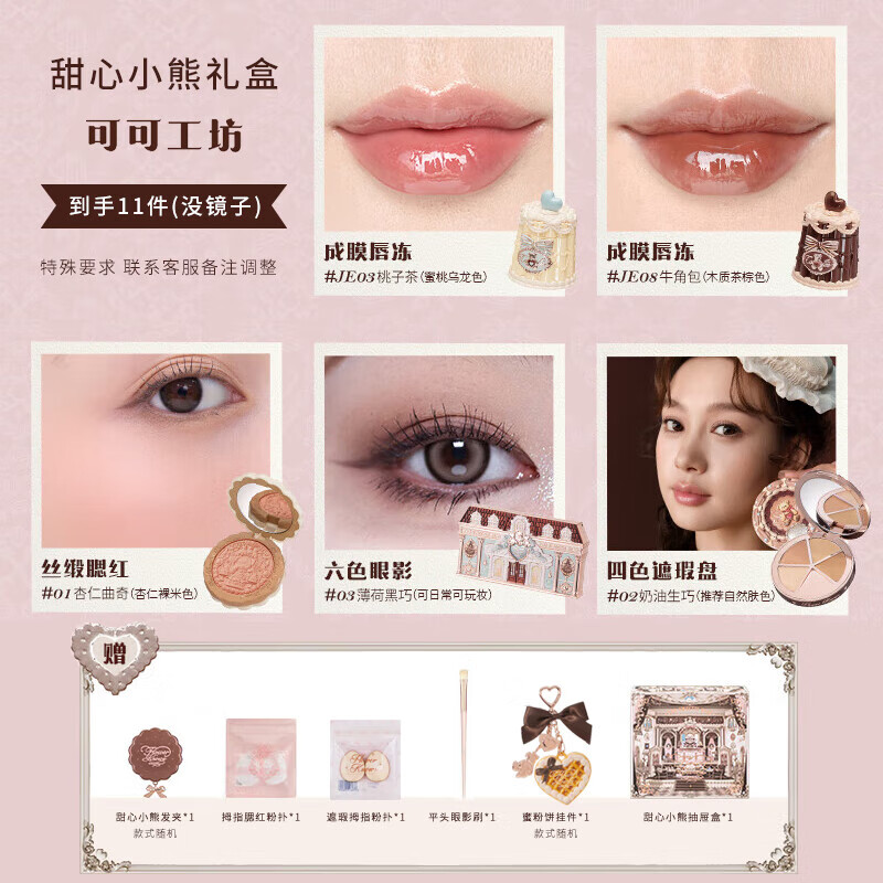 Flower Knowledge Sweetheart Bear Makeup Set Gift Box for Valentine's Day Birthday Gift for Girlfriend and Wife Peach Mousse/11 pieces in hand with mirror
