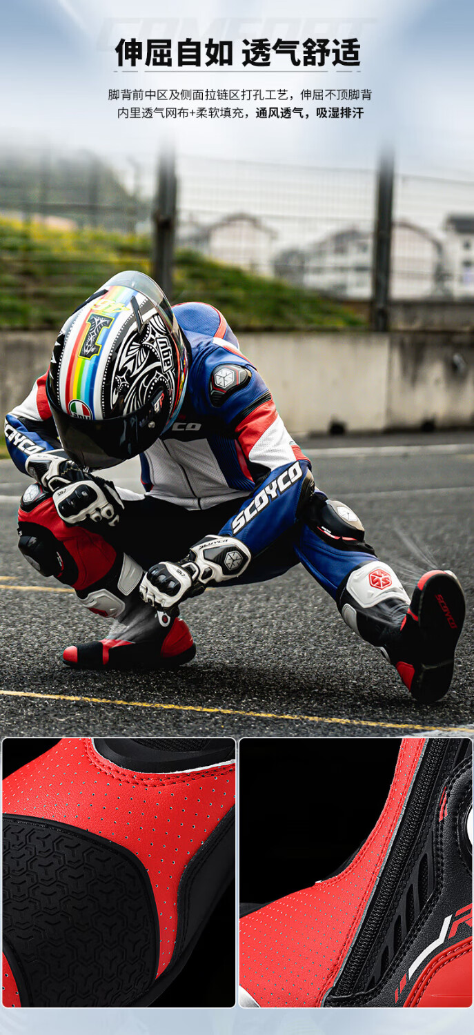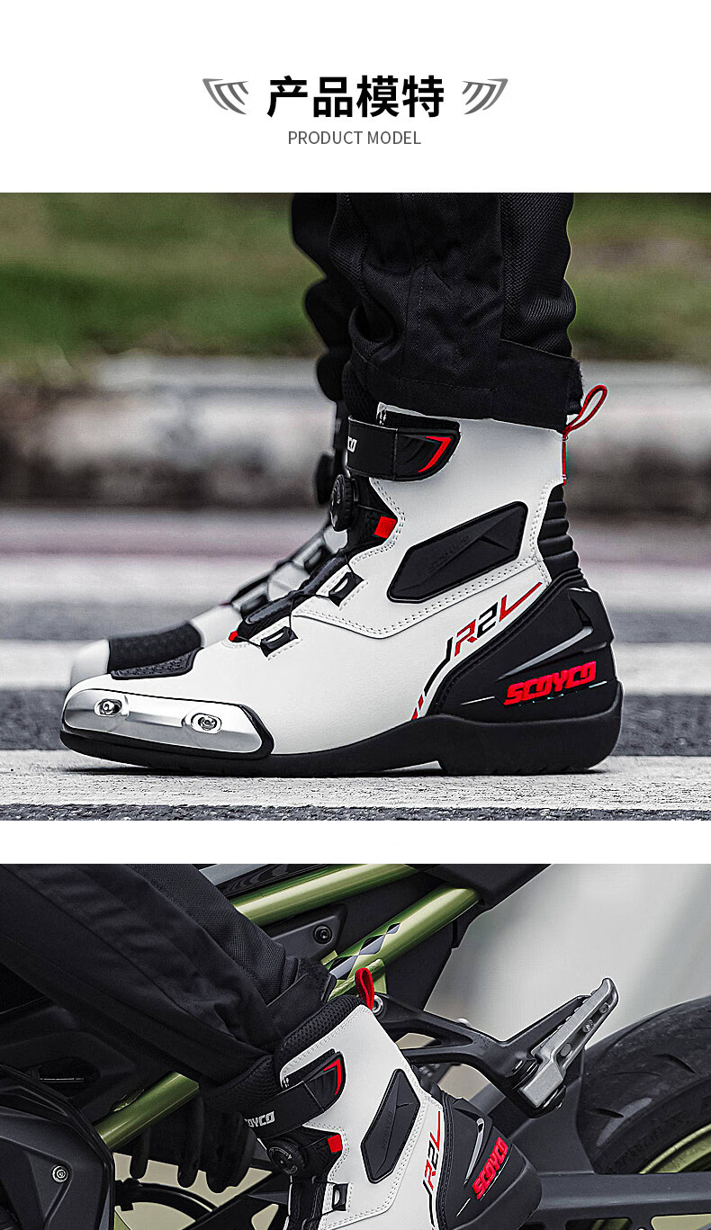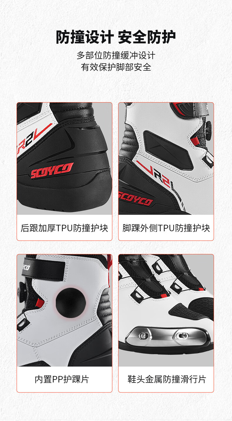 SCOYCO motorcycle riding shoes, anti-fall racing boots, wear-resistant, non-slip, breathable, protective motorcycle racing boots MR003-2 Haoyue White 42