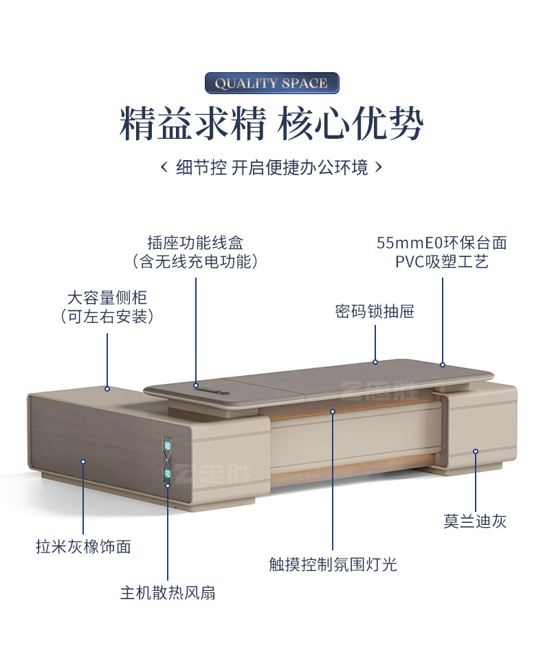 ZHONGSHENG Desk Boss Desk Modern Simple Chairman Executive Desk President Office Office Furniture Table and Chair Combination Desk Color Card Sample 10cm*10cm