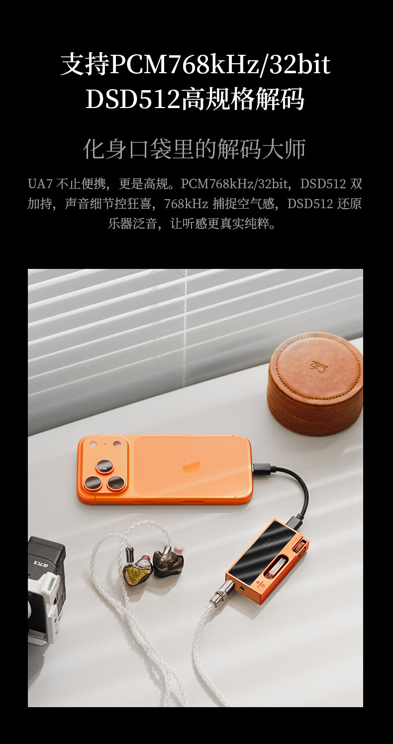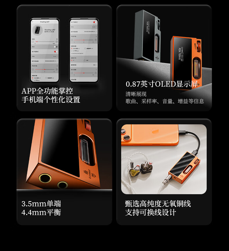 SHANLING UA7 tube portable decoder amp hifi small tail decoder audio amplifier 3.5 single-ended + 4.4 balanced replaceable cable APP full function control gilded orange