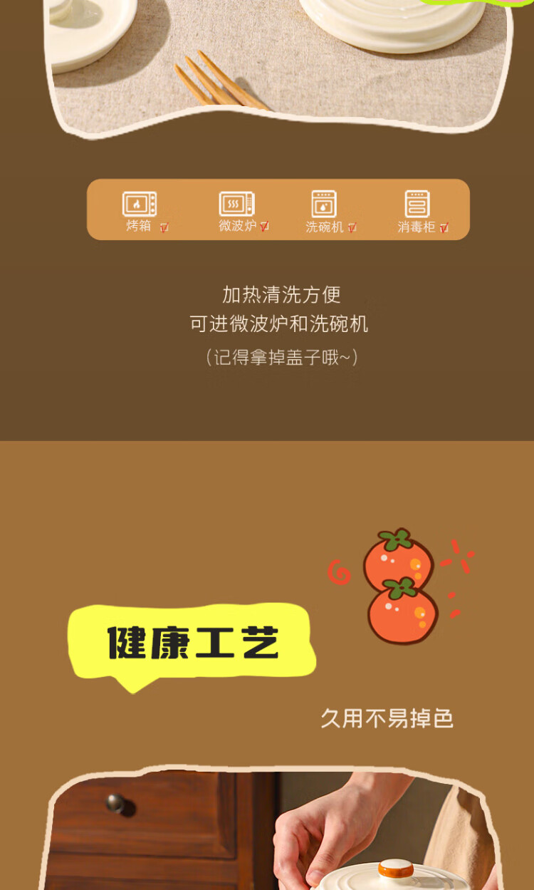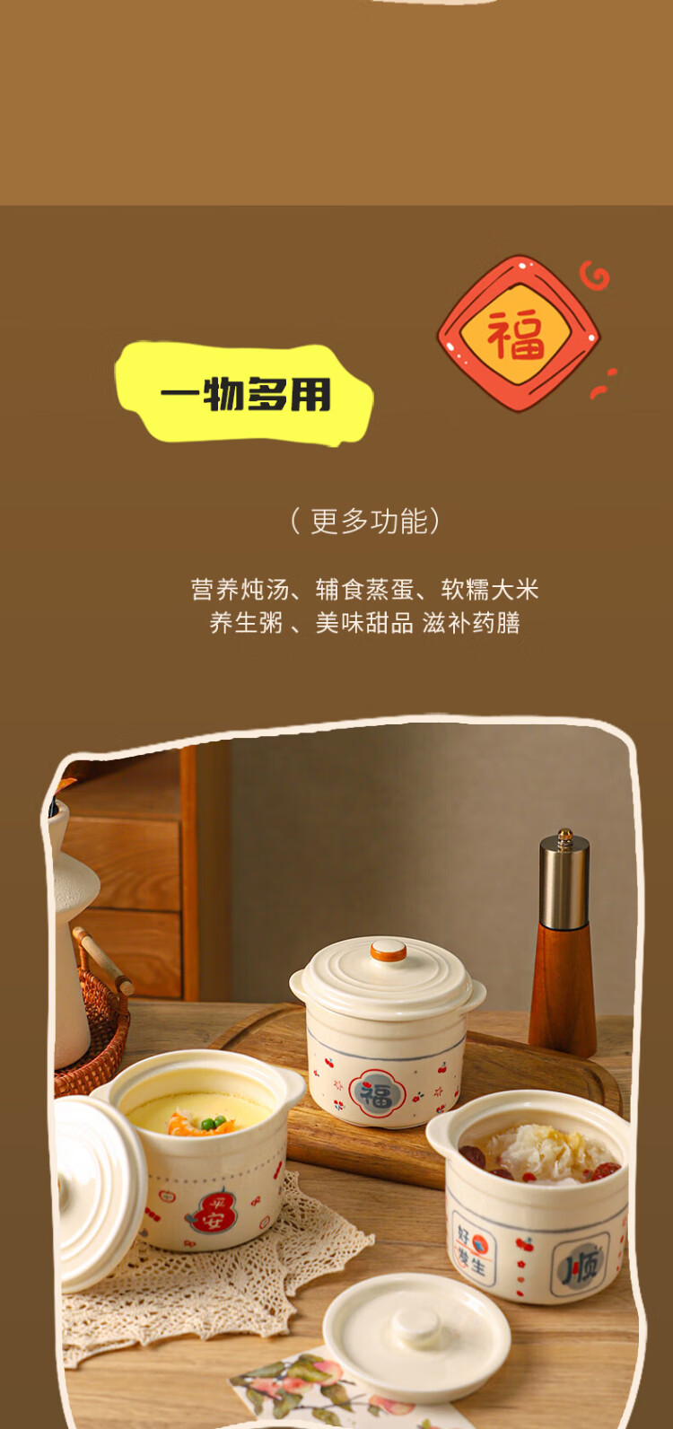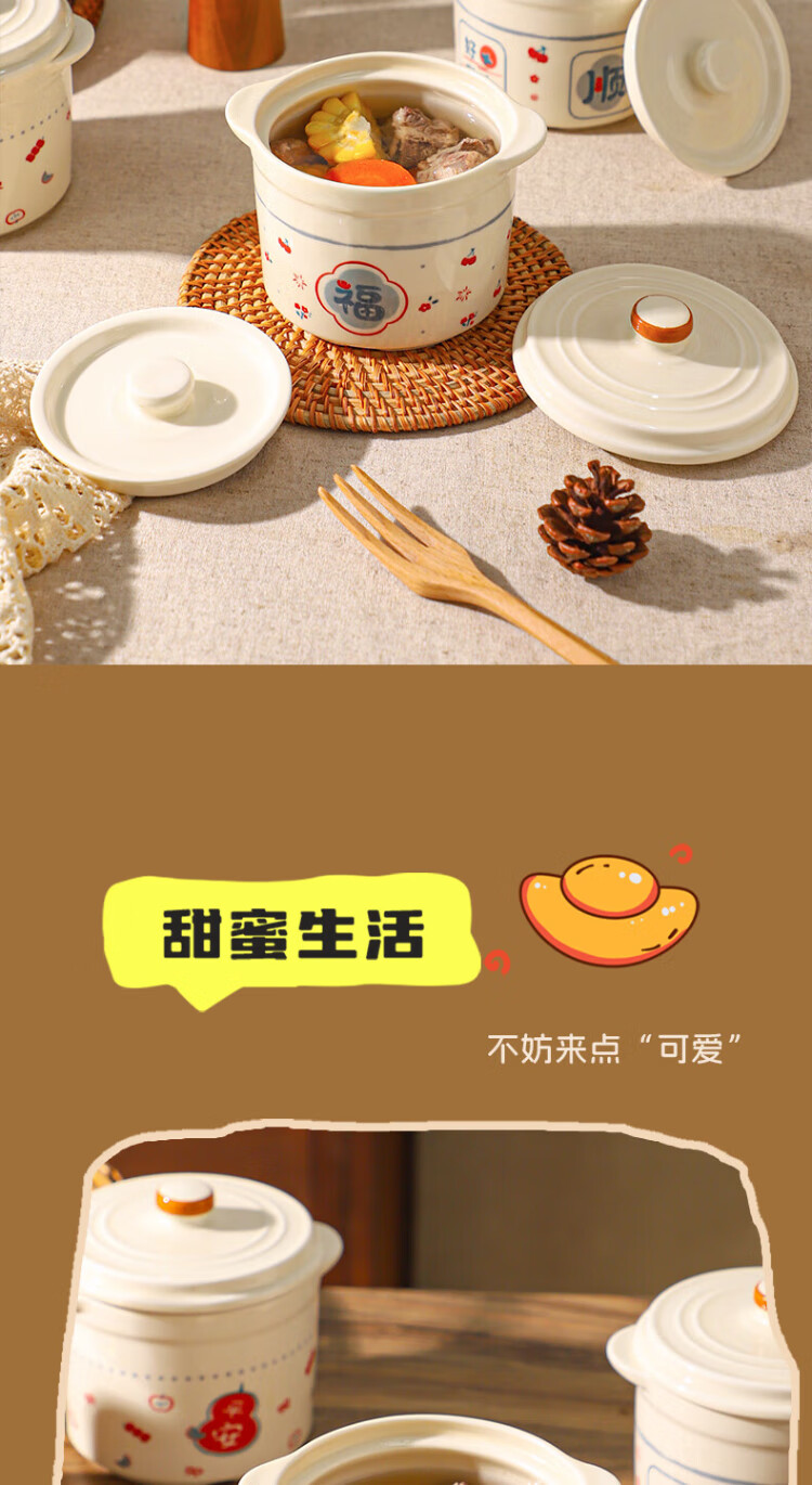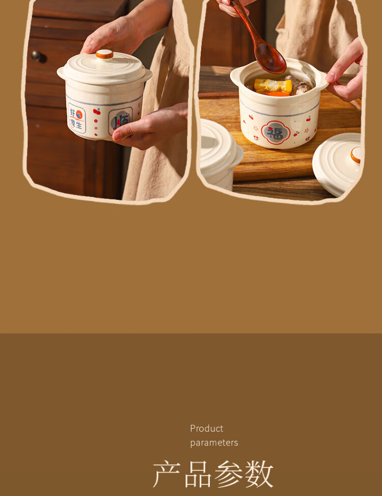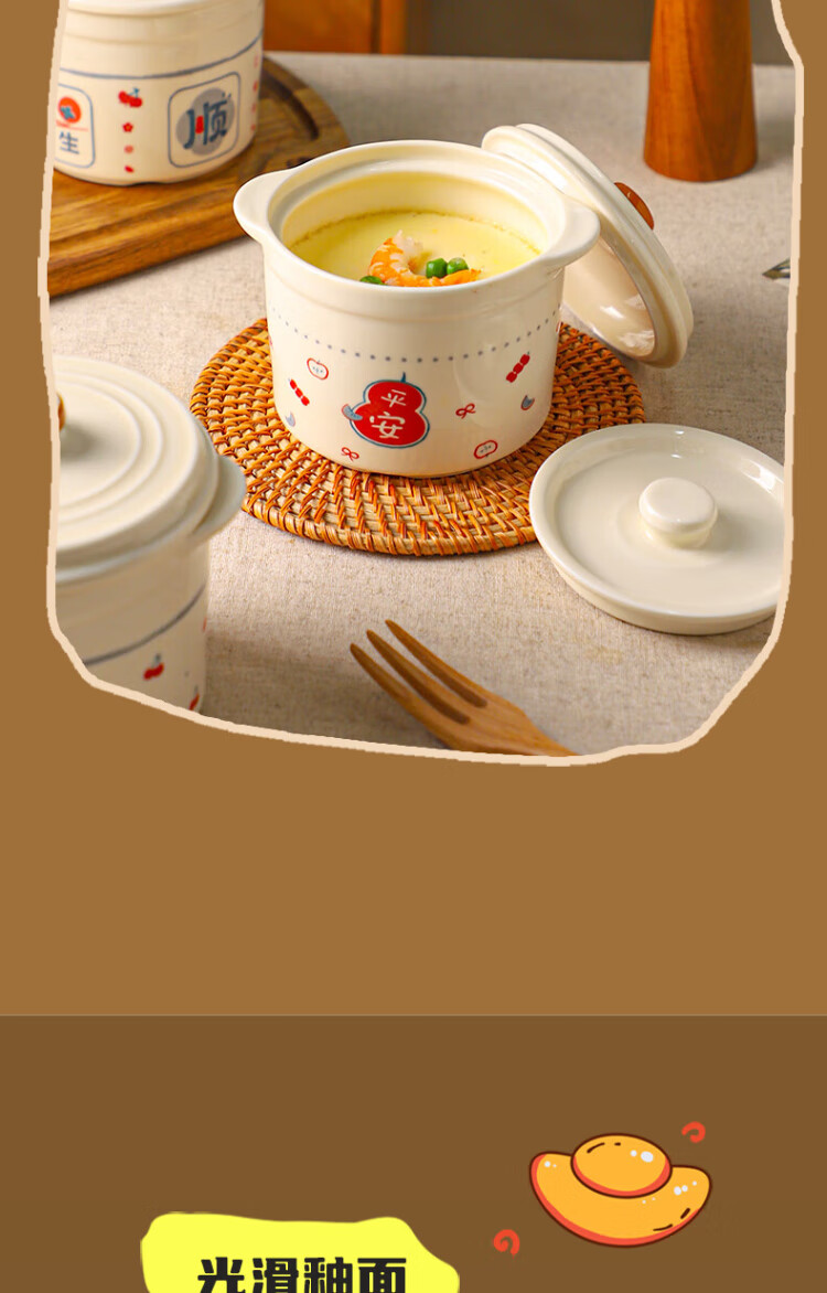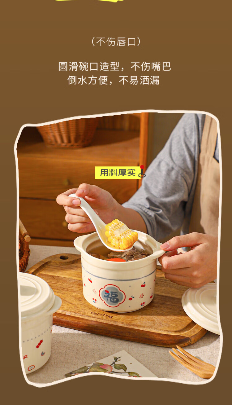 Sheli Chinese double-lid stew pot, double-ear ceramic water-proof stew steamed egg bowl, stew pot, household dessert bird's nest special soup cup, two packs, Fu style + Ping An style/small spoon, 550ml, can be steamed and baked | double cover to lock in freshness