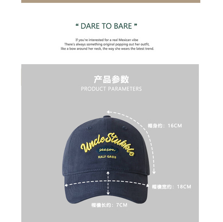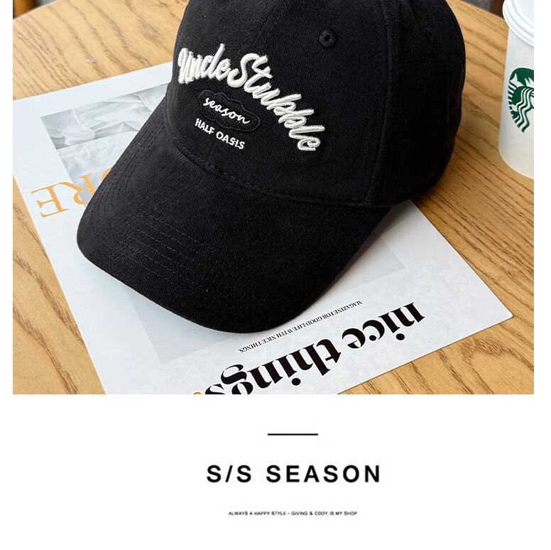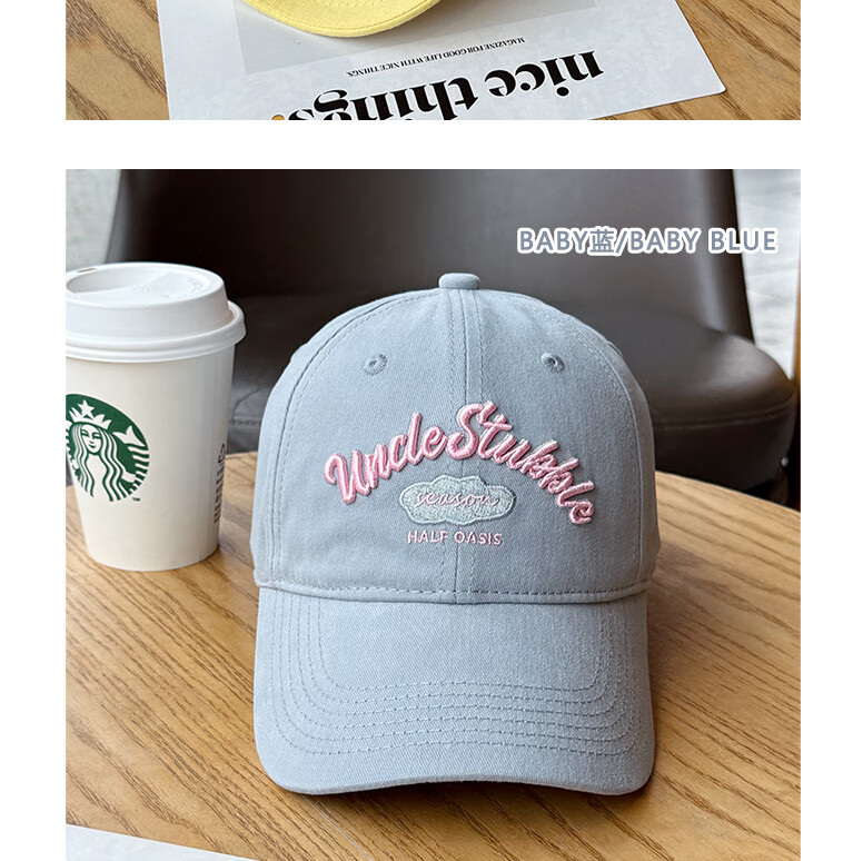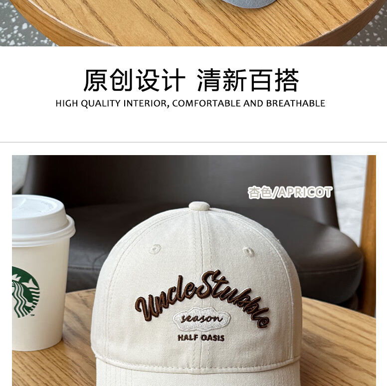 Embroidery style curved brim student baseball cap, sweet and cool three-dimensional peaked cap, soft top spring and summer original couple hat, apricot color, one size fits all (55-61cm) adjustable