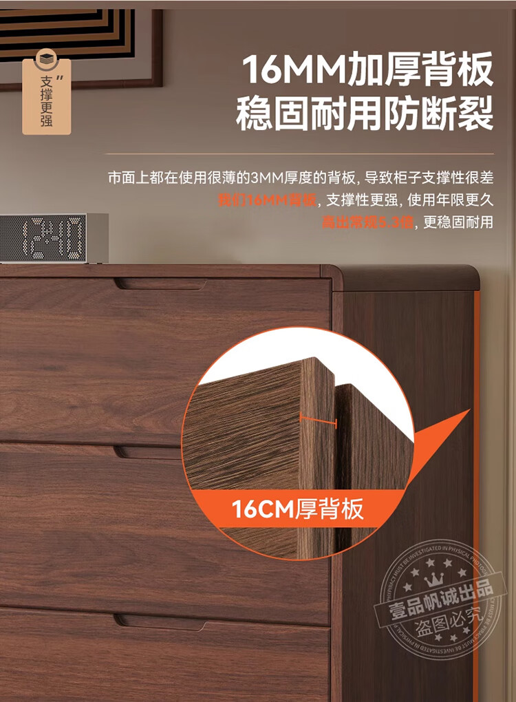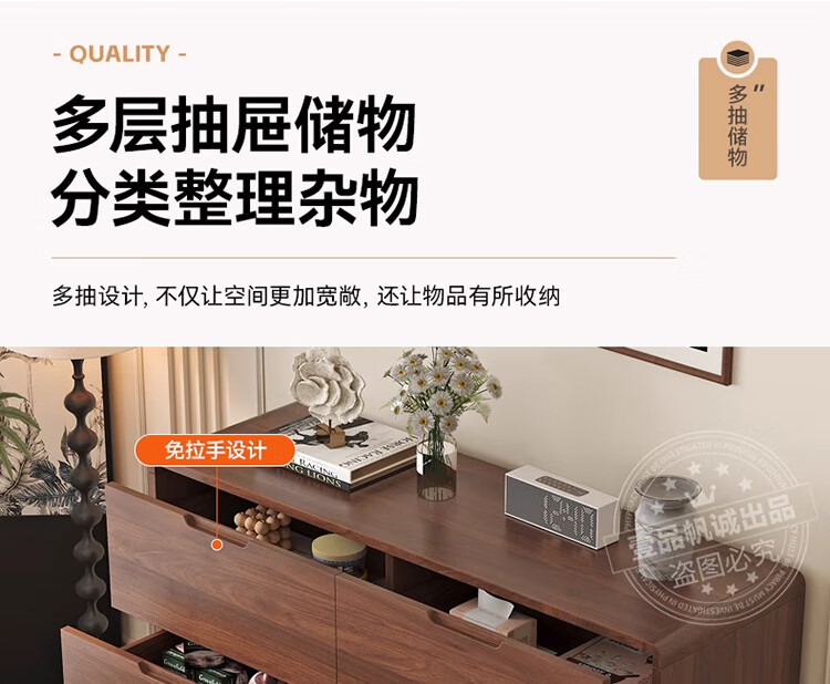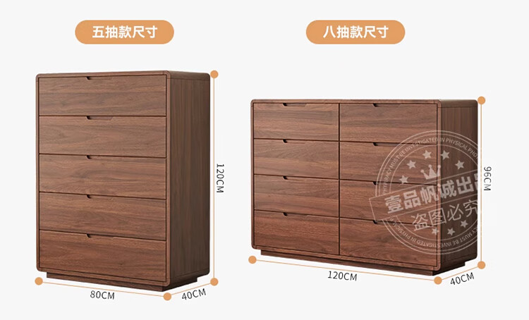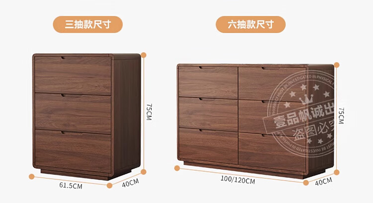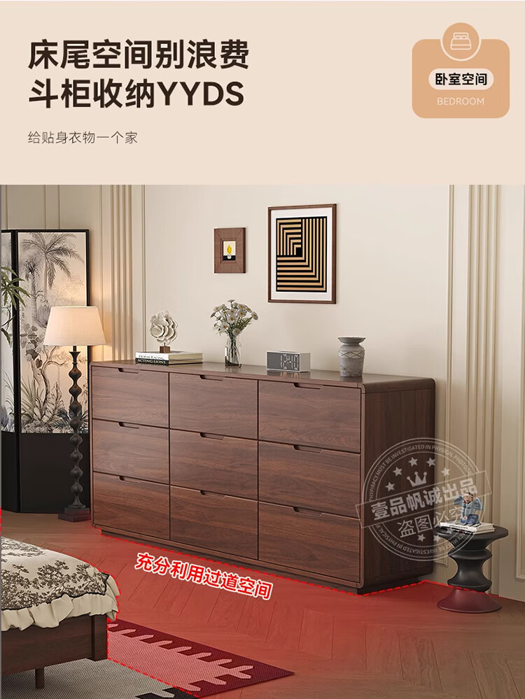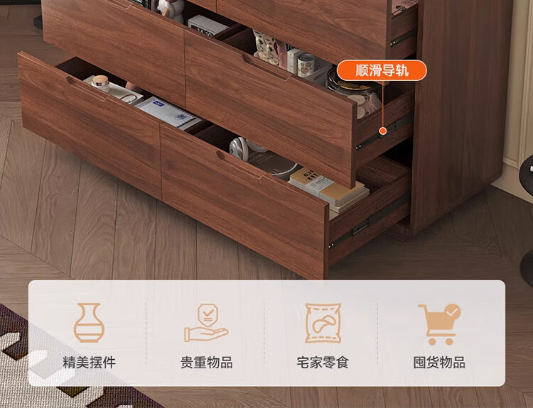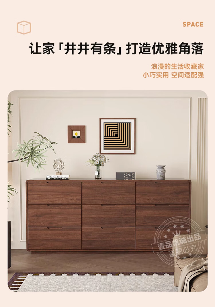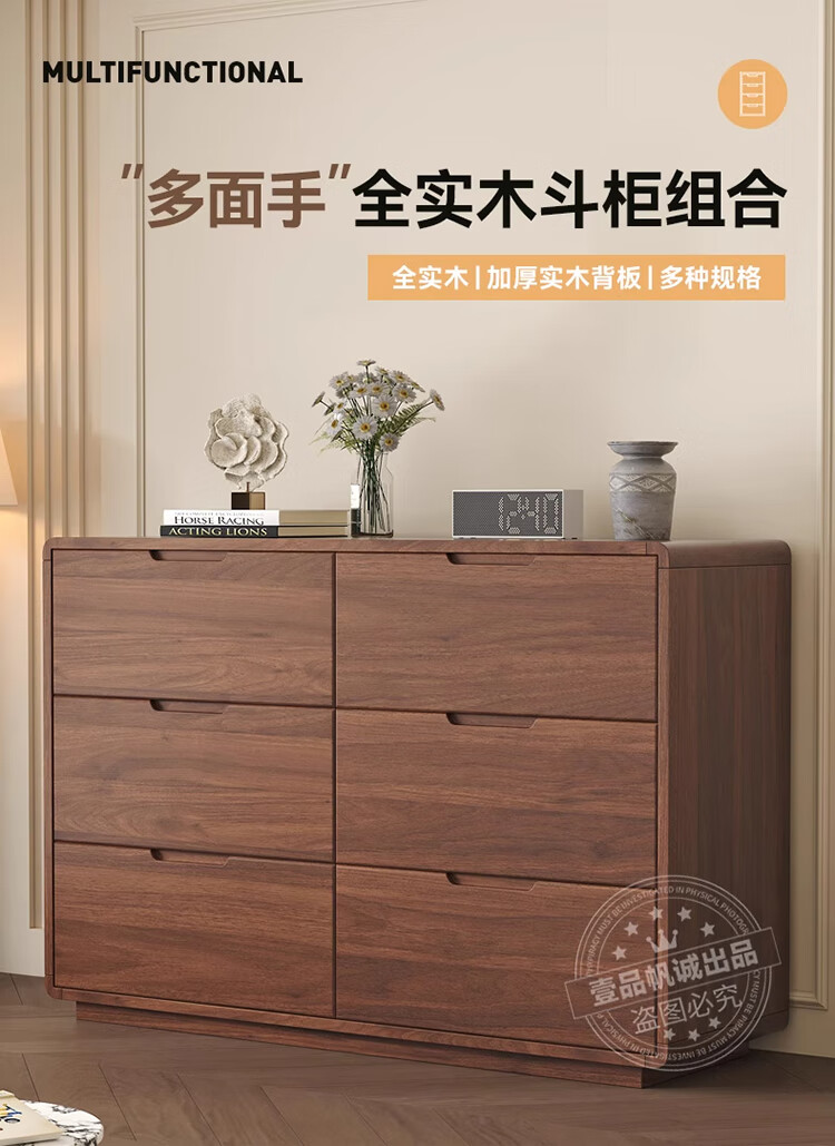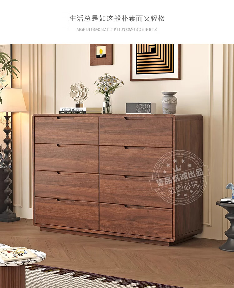 Yipinfancheng mid-century style solid wood chest of drawers living room chest of drawers dopamine chest of drawers bedside cabinet bedroom bedside storage cabinet all solid wood material mid-century style walnut color - chest of drawers 80CM
