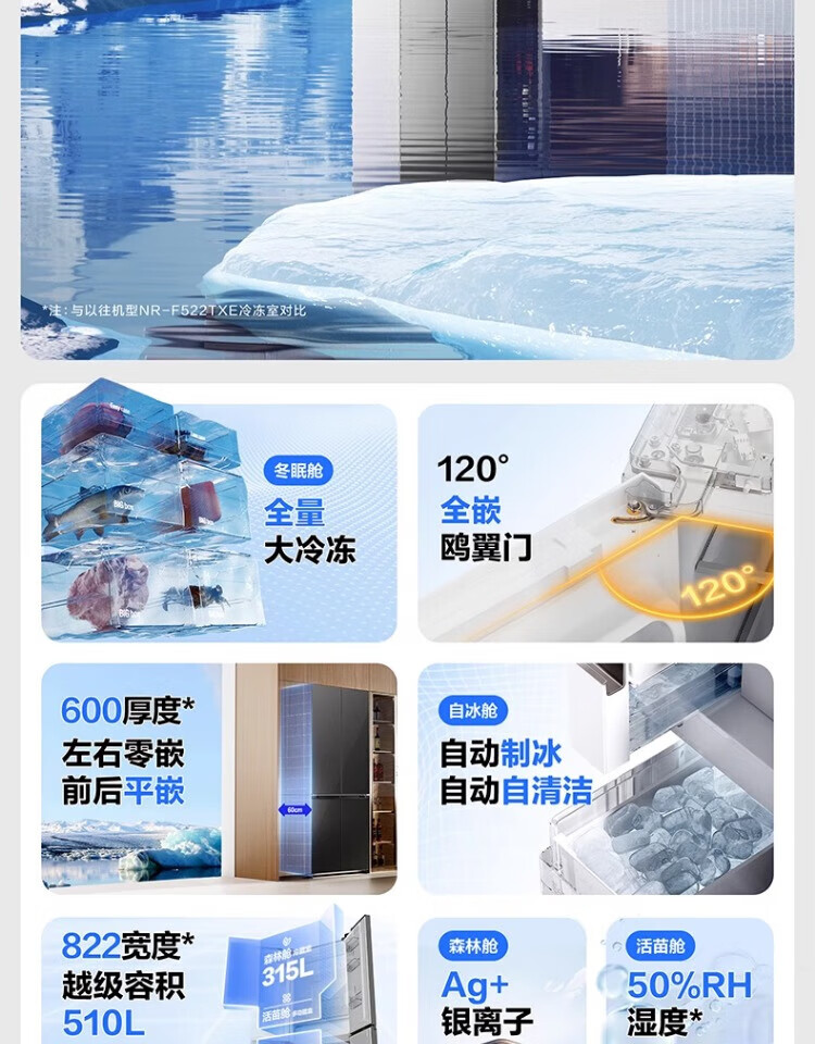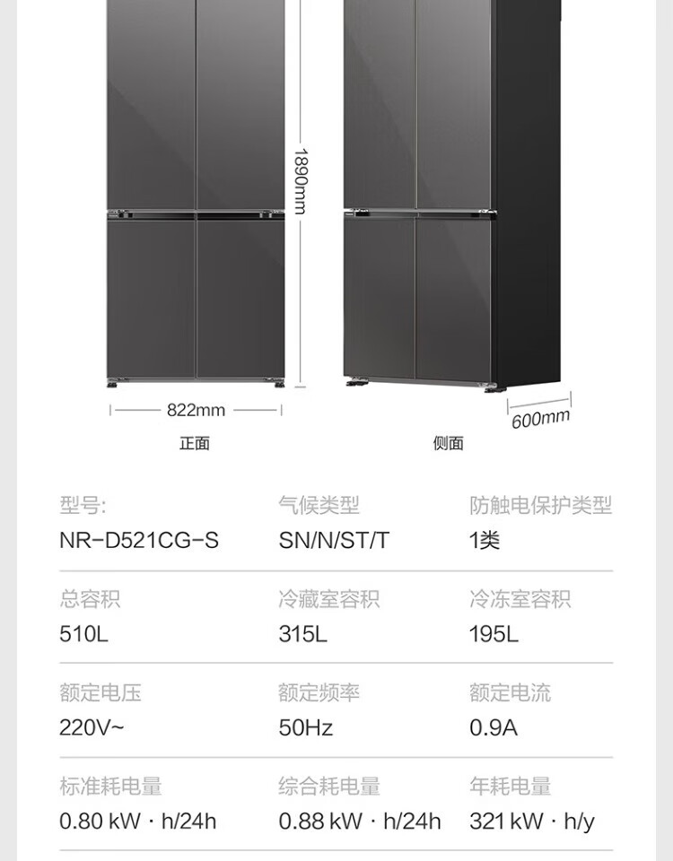 Panasonic panasonicNR-D521CG-S cross door 510L fully embedded automatic ice making silver ion sterilization titanium gray silver commercial freezer