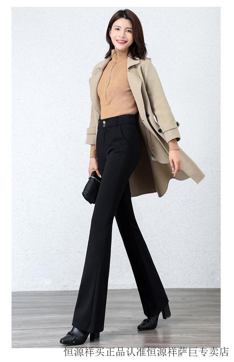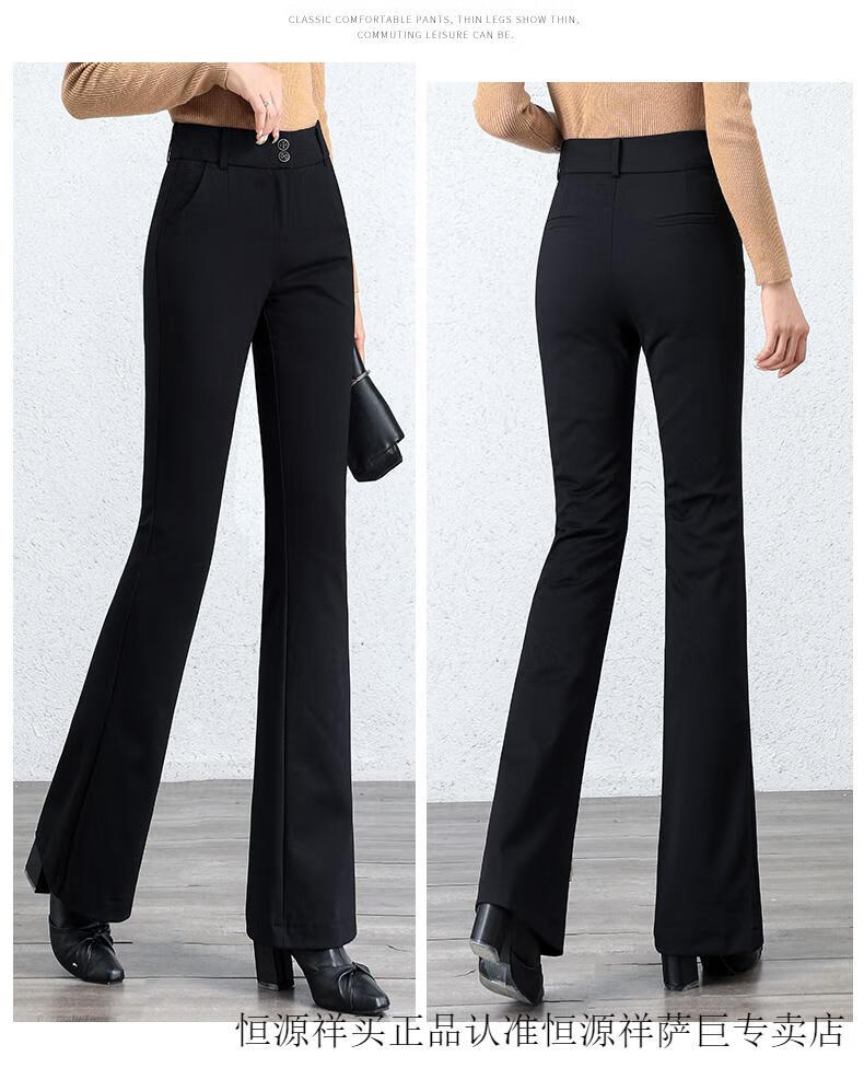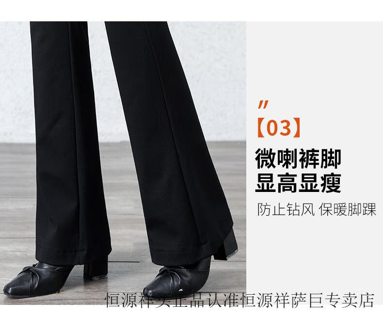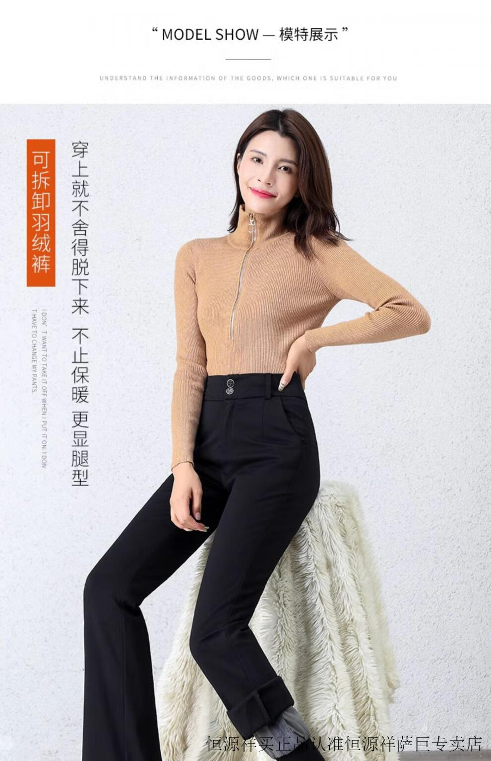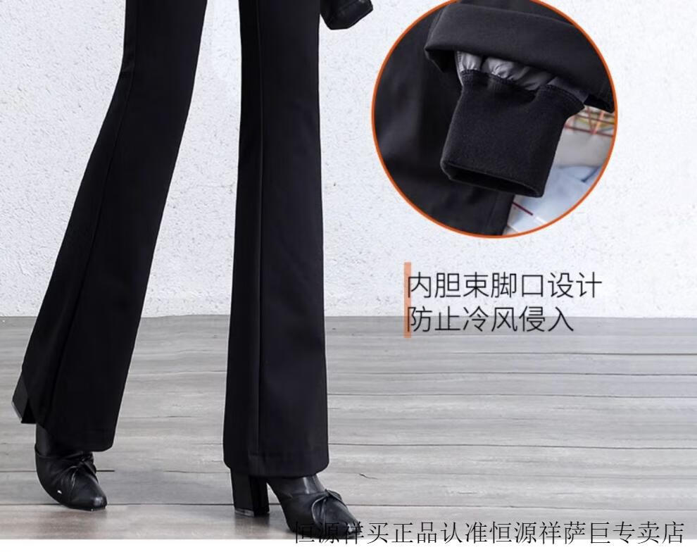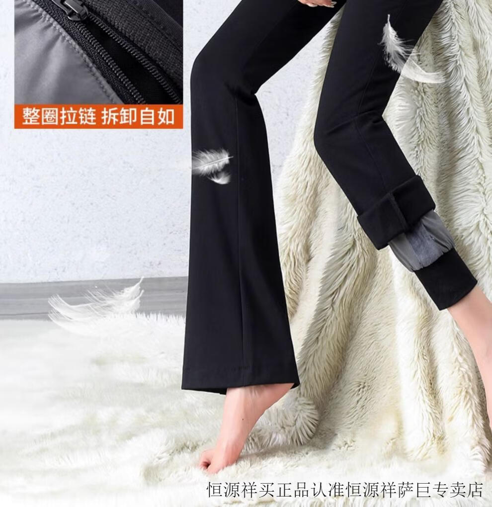 Hengyuanxiang Down Pants Women's Outerwear Fashionable High Waist Slimming Detachable Plus Velvet Thickened White Duck Down Flared Winter Warm Cotton Pants Black Open Placket Flared Style 3XL Recommended 135-145 Jin Jin is equal to 0.5 kg