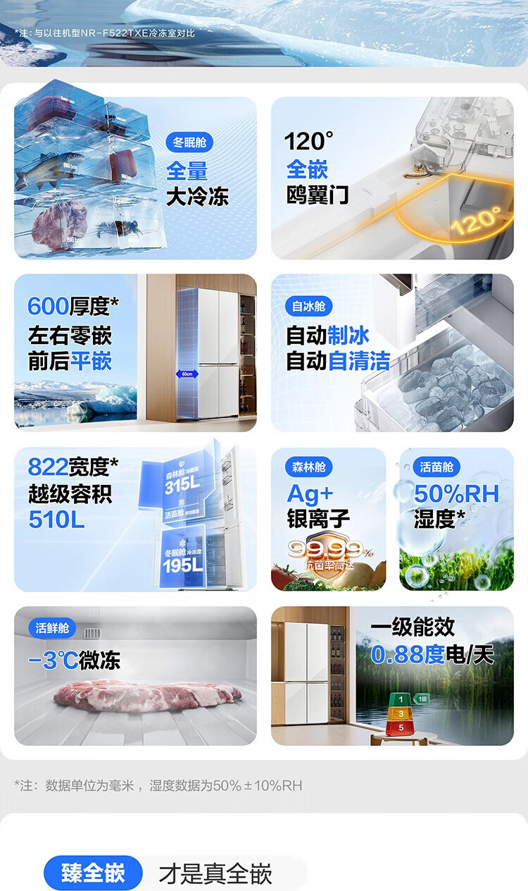 Panasonic panasonicNR-D521CG-W cross door 510 liter fully embedded automatic ice making silver ion sterilization crystal diamond white commercial freezer