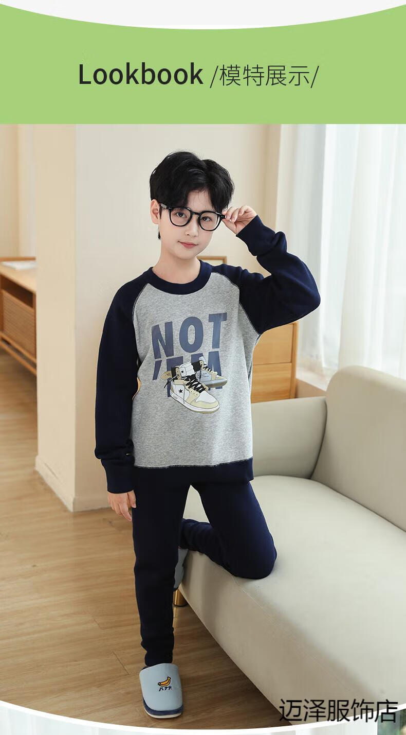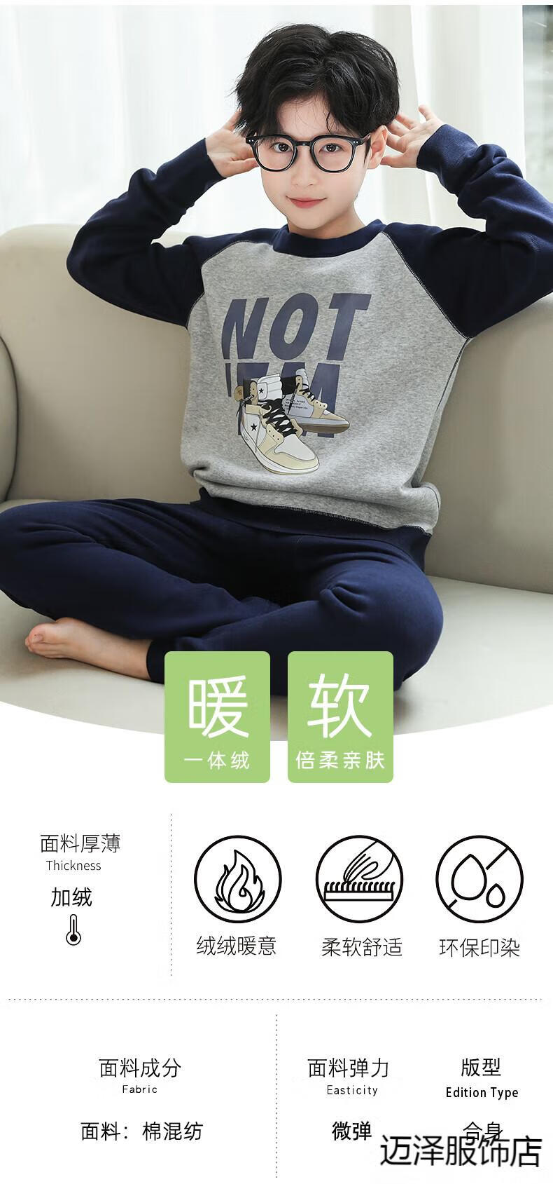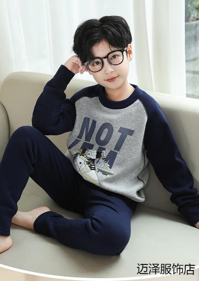 Hongdou Children's Boneless Underwear Set Boys' Autumn Clothes and Autumn Pants Plus Velvet Warm Clothes for Middle-aged Boys Autumn and Winter Basement Clothes Gray Green 23725 Model M 110C Recommended Height 95-105 Centimeters