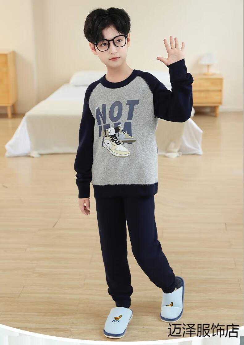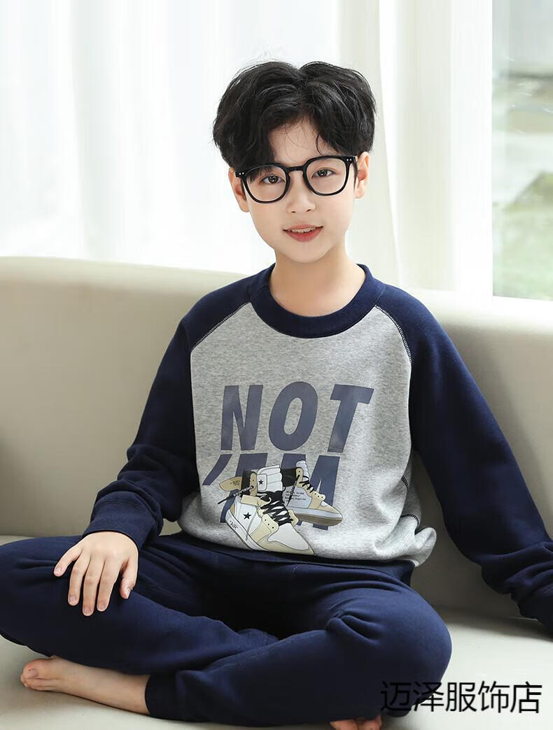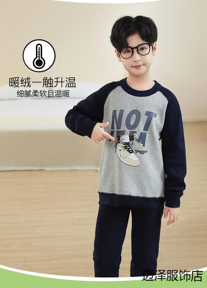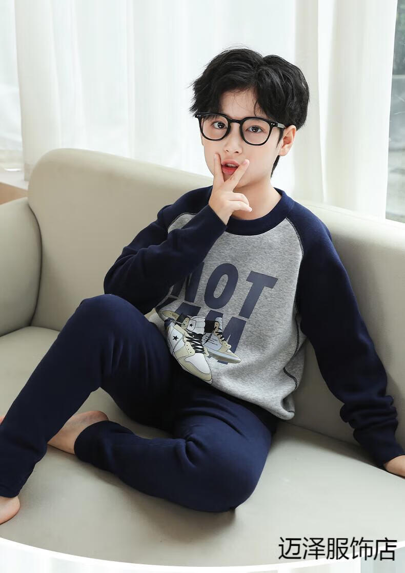 Hongdou Children's Boneless Underwear Set Boys' Autumn Clothes and Autumn Pants Plus Velvet Warm Clothes for Middle-aged Boys Autumn and Winter Basement Clothes Gray Green 23725 Model M 110C Recommended Height 95-105 Centimeters