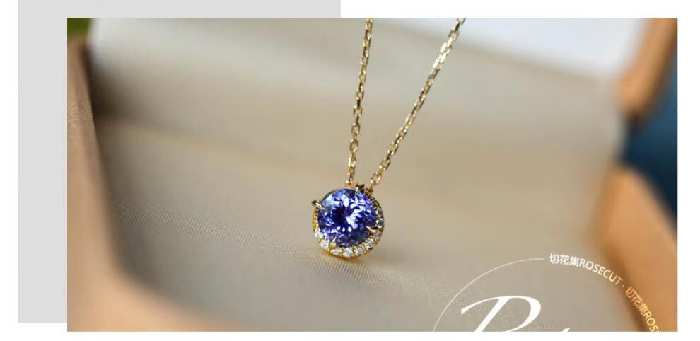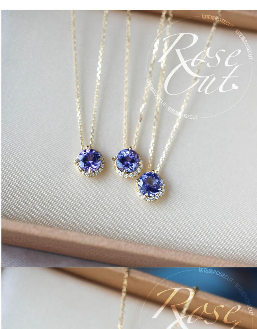 Tanzanite Japanese natural 18K gold necklace light luxury amethyst fashion simple pendant for women natural tanzanite necklace