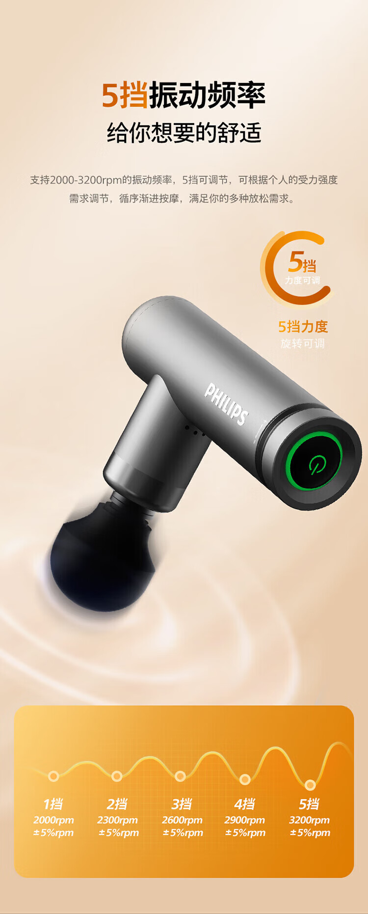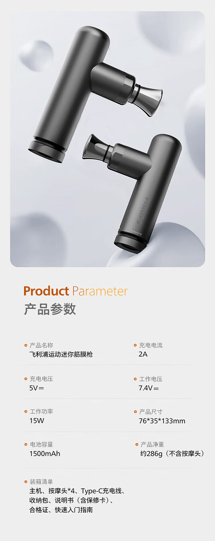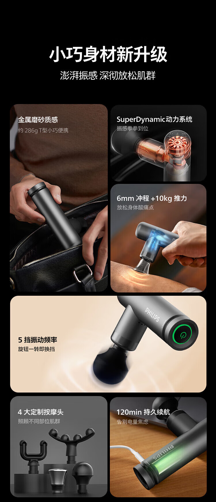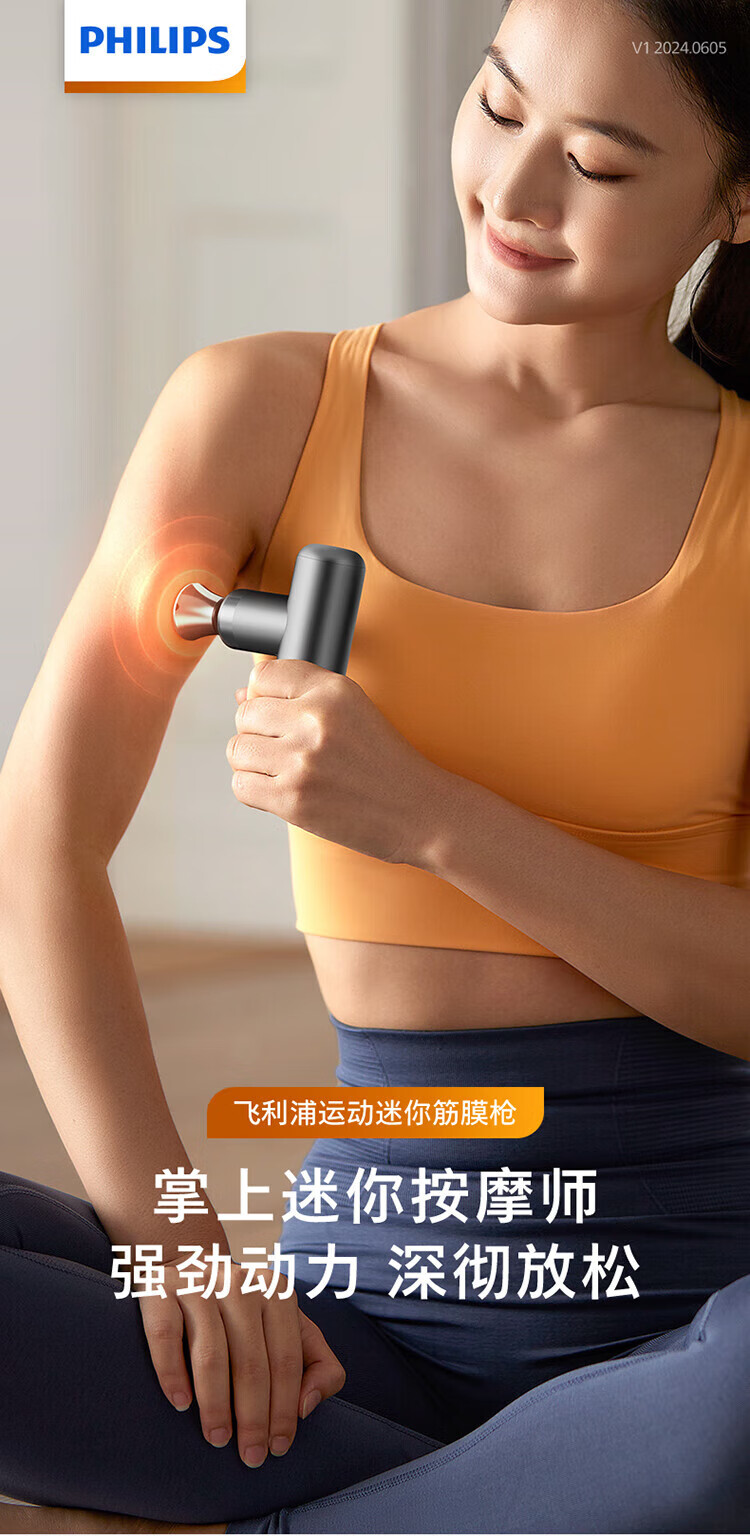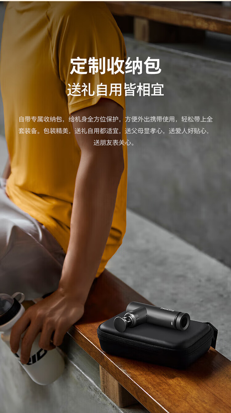 Philips (PHILIPS) Fascial Gun Portable Whole Body Deep Muscle Relaxation Massager Fascia Massager Neck Mask Gun Birthday New Year Valentine’s Day Gift for Boy and Girl 7308D Upgraded Hot Compress 12kg Thrust + 6mm Depth