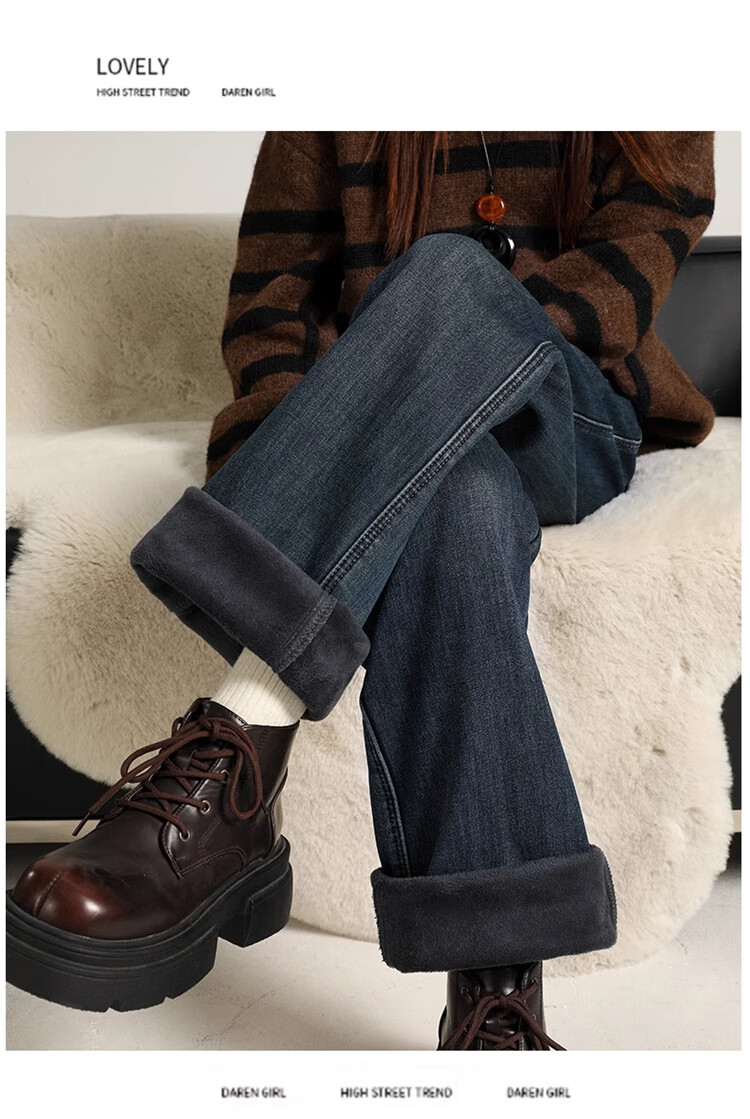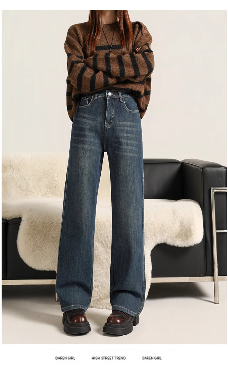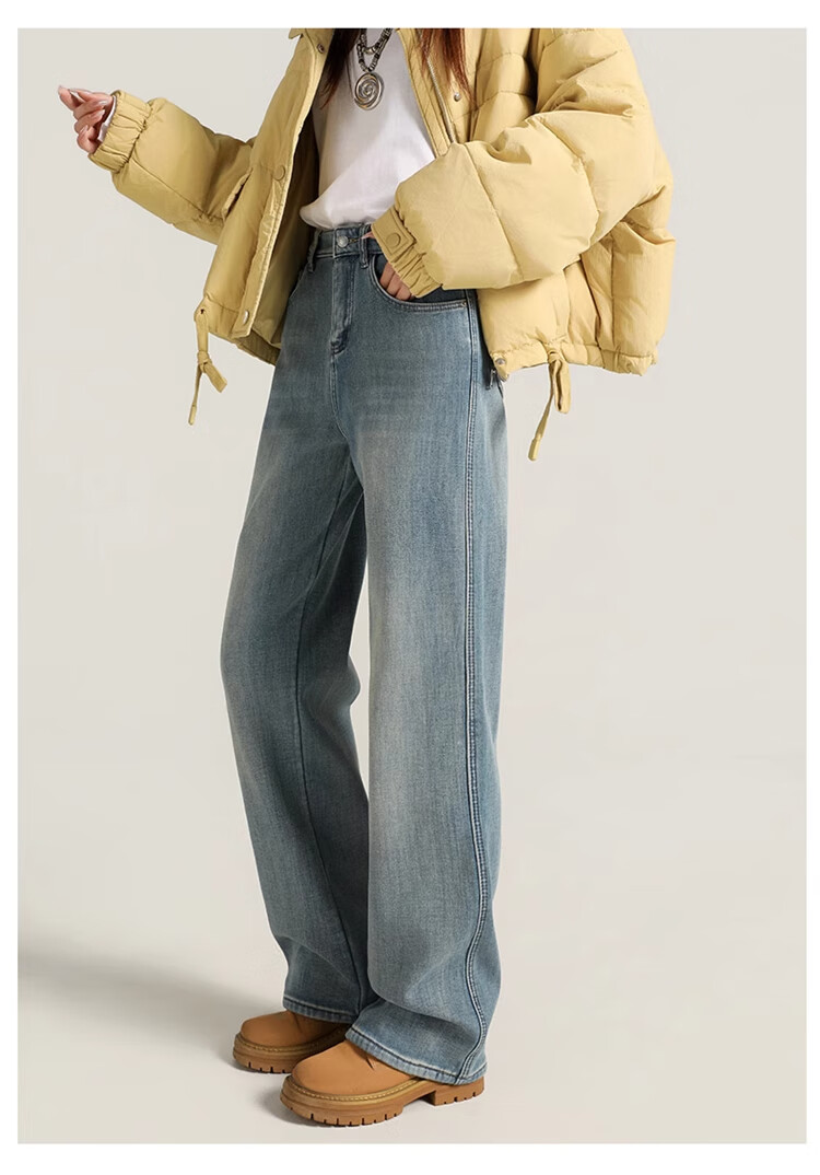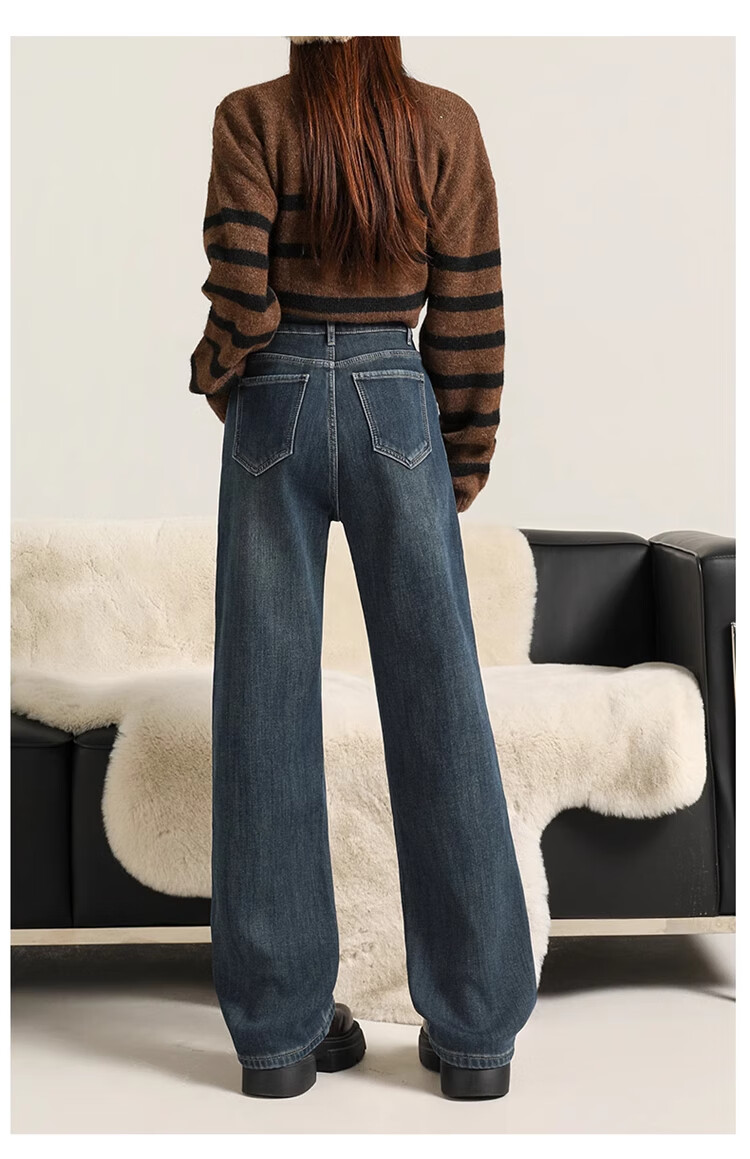 Cotton plus velvet thickened slightly flared wide-leg jeans for women autumn and winter new high-waisted loose straight casual pants for small people 1101 retro blue plus velvet high quality L 105-115Jin Jin is equal to 0.5 kg