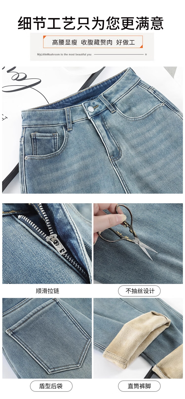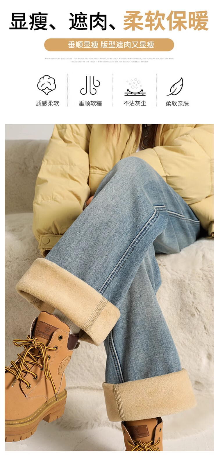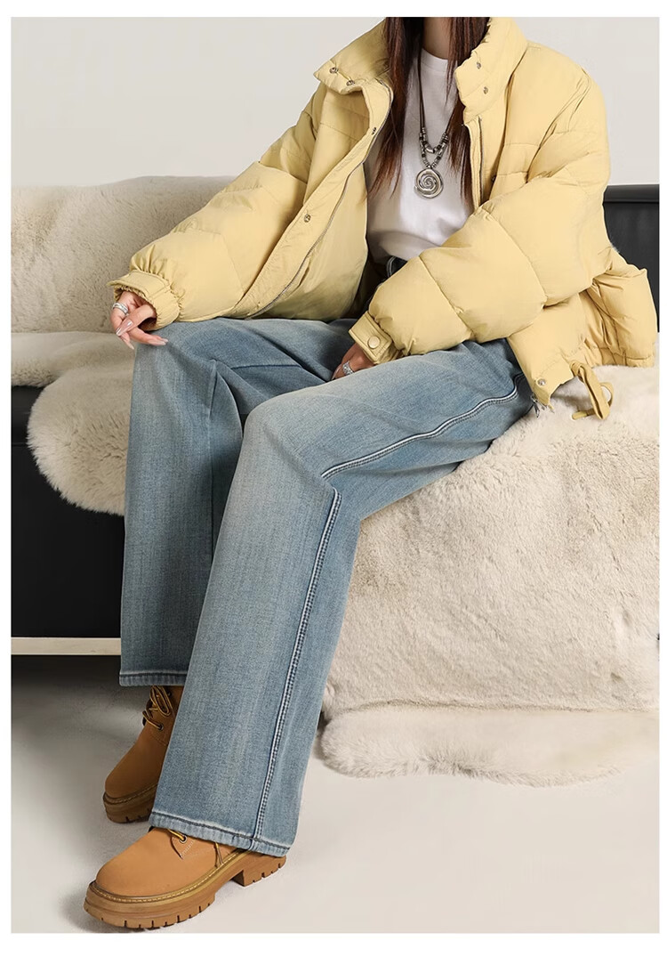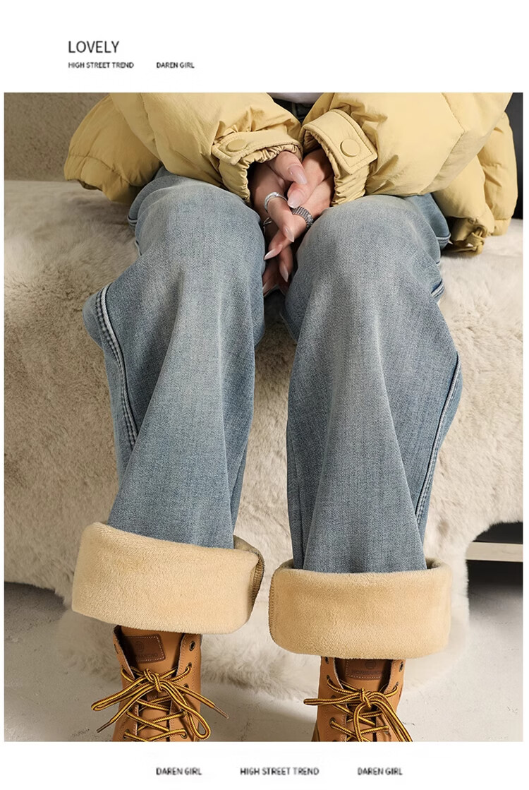 Cotton plus velvet thickened slightly flared wide-leg jeans for women autumn and winter new high-waisted loose straight casual pants for small people 1101 retro blue plus velvet high quality L 105-115Jin Jin is equal to 0.5 kg