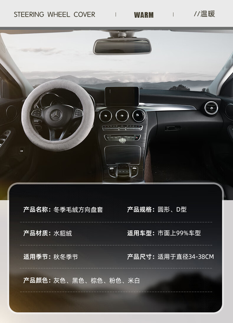 Car steering wheel cover winter plush O-type D-type mink velvet thermal insulation handlebar cover anti-slip car for men and women black-medium O-type mink velvet polythermal insulation