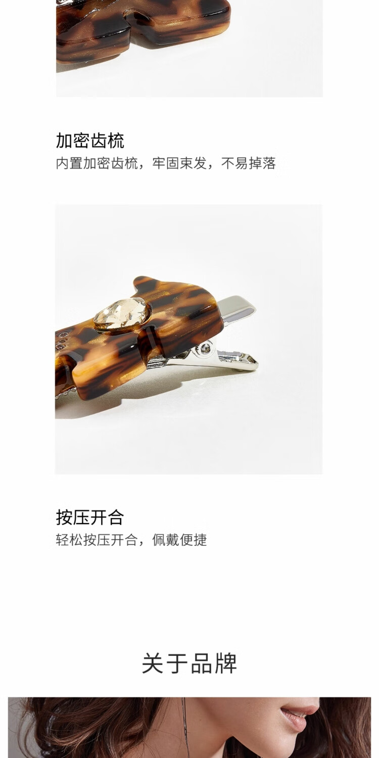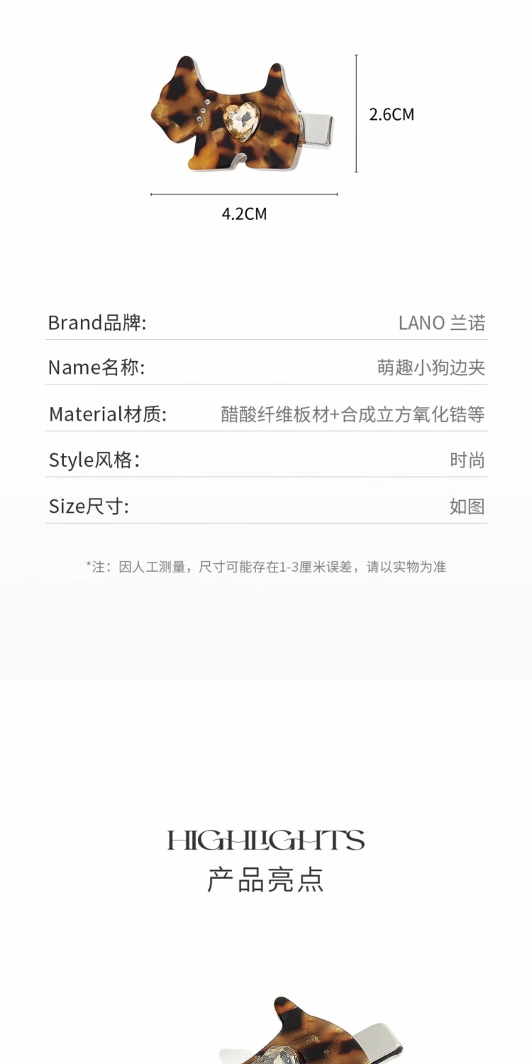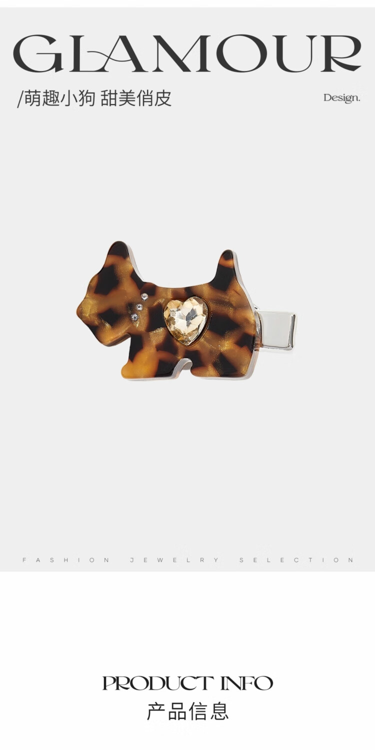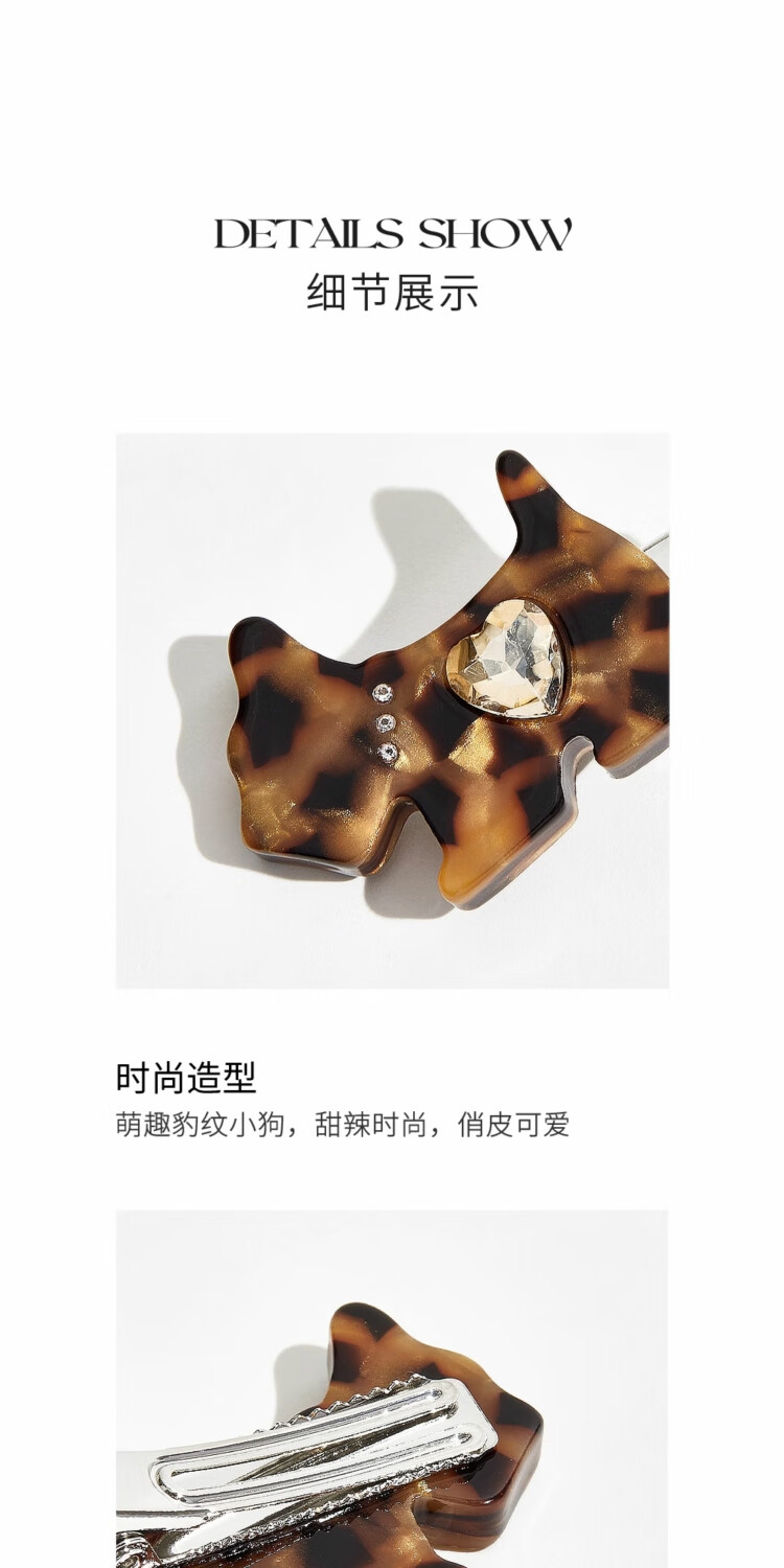 Lannuo leopard print puppy acetate hair clip for women 2025 new high-end side clip forehead bangs clip children's duckbill clip coffee color
