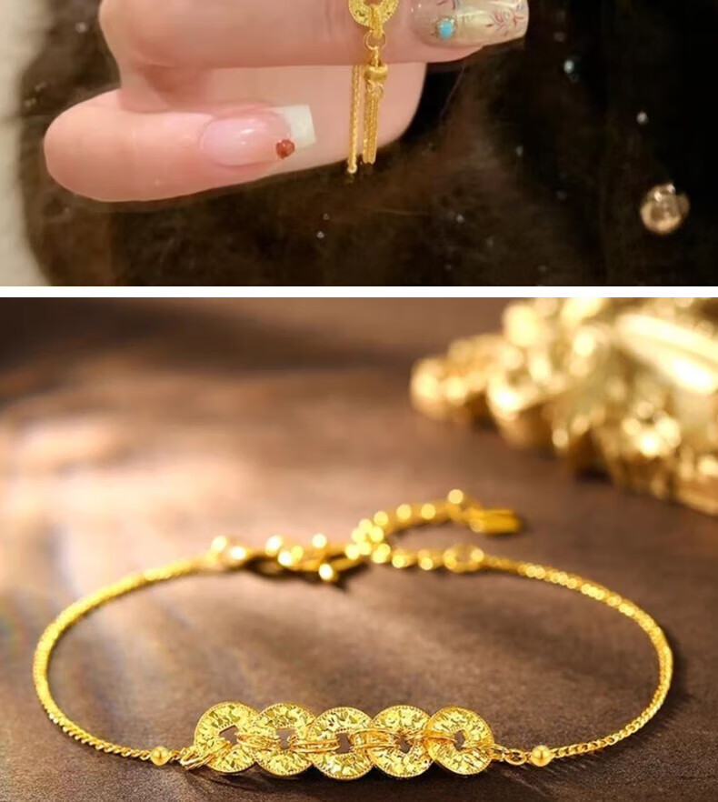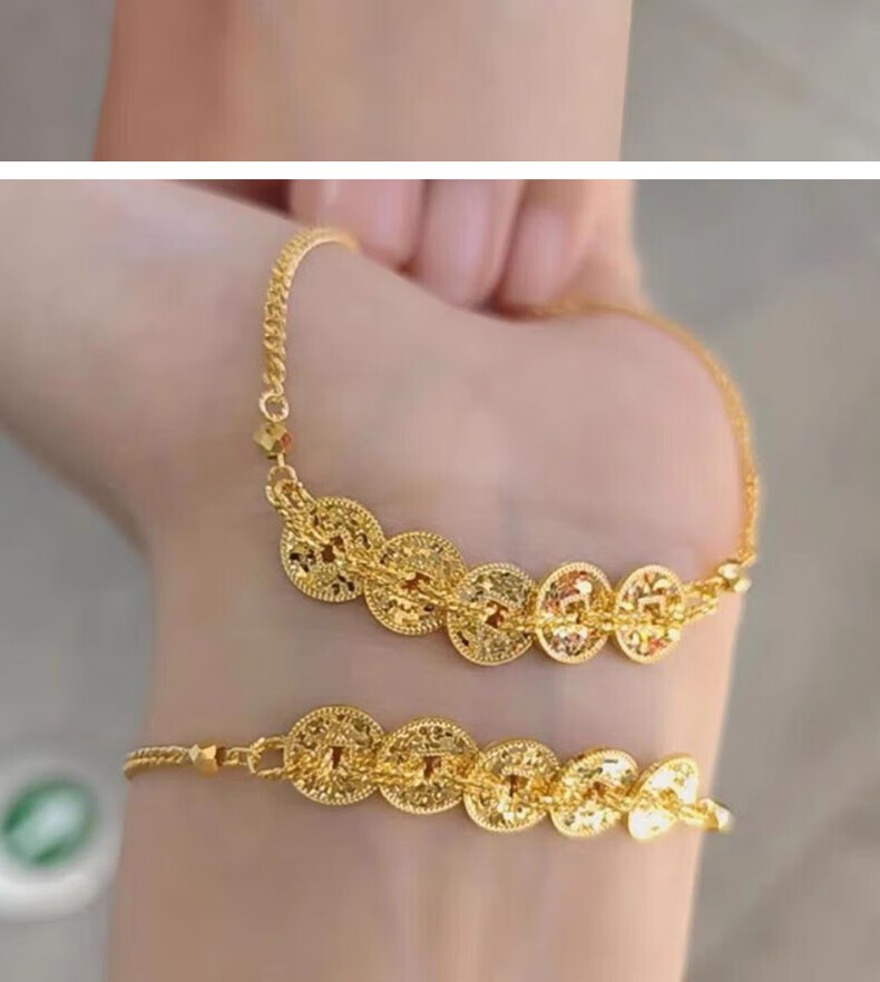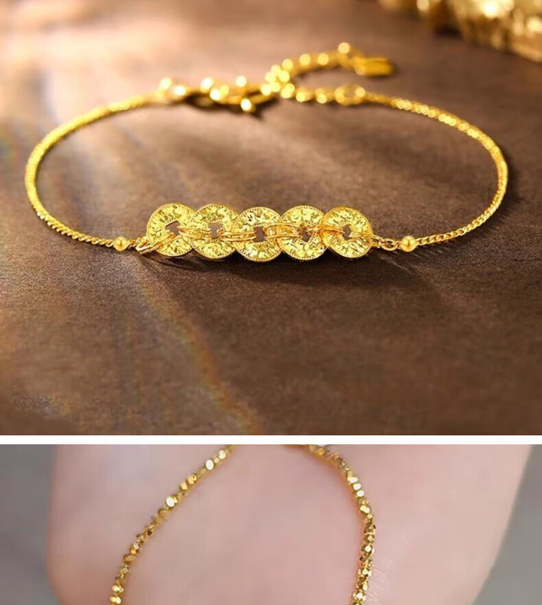 The Five Emperors Exploding Ice Golden Bracelet has a lot of money and does not fade for a long time. It is good luck to wear it to show your style and aura. It is versatile. The Golden Five Emperors Money Bracelet