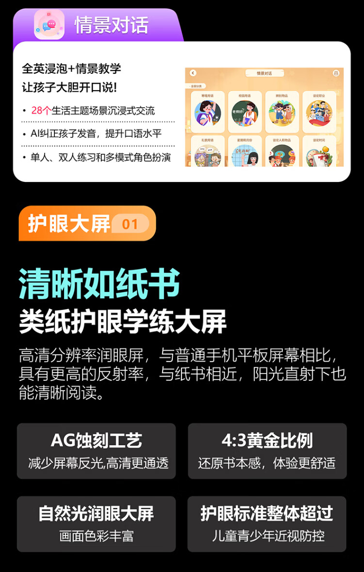 华夏骄子学习机平板P30款高清大屏护眼学生小初高中电脑早教机一体同步英语拼音智能儿童 12英寸【512G】新款AG护眼+终身免教材