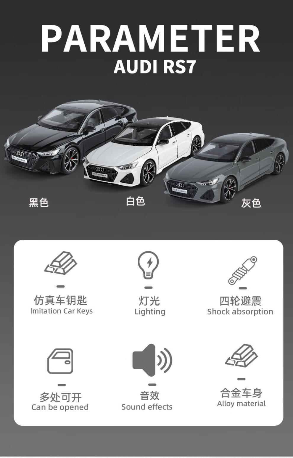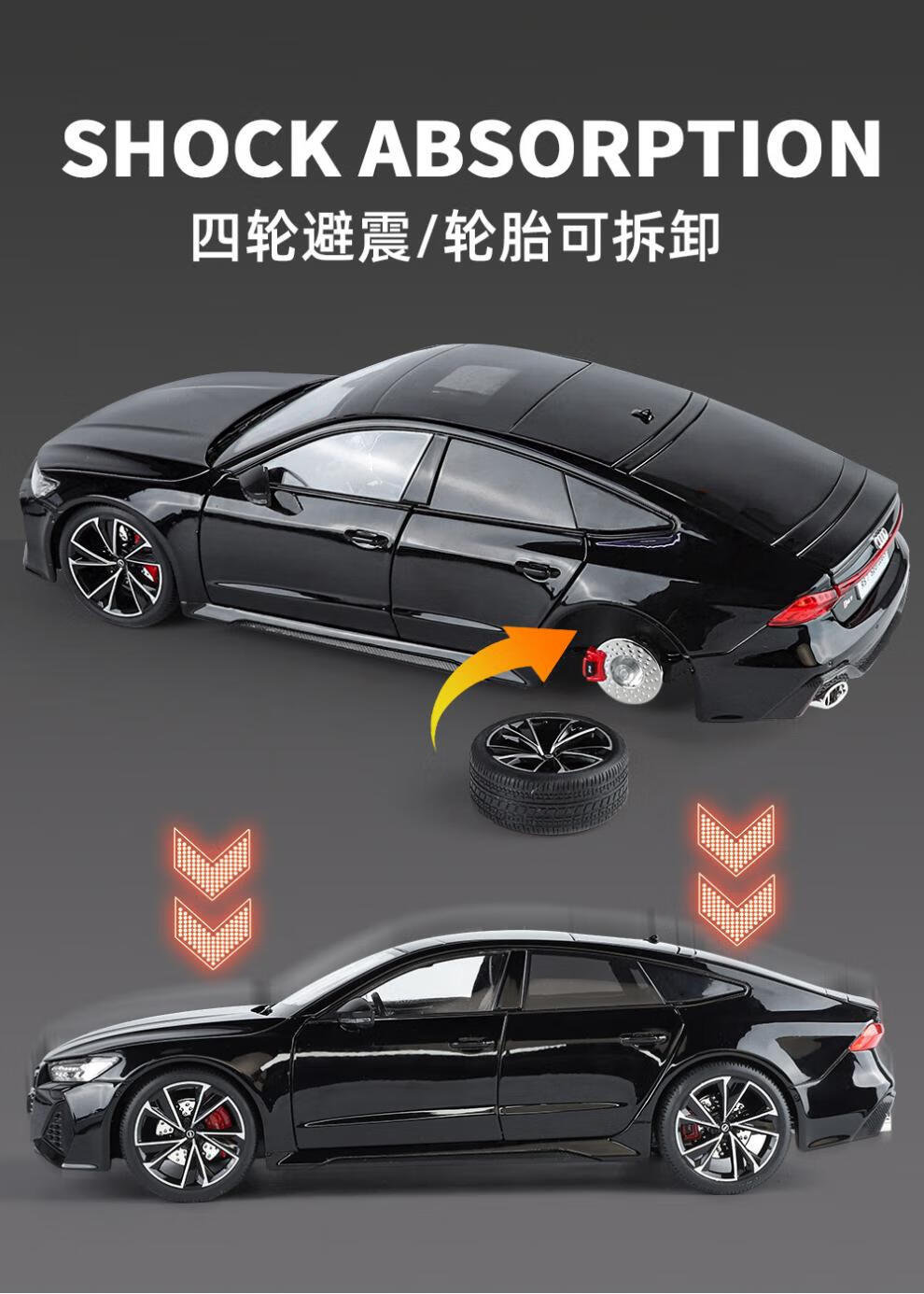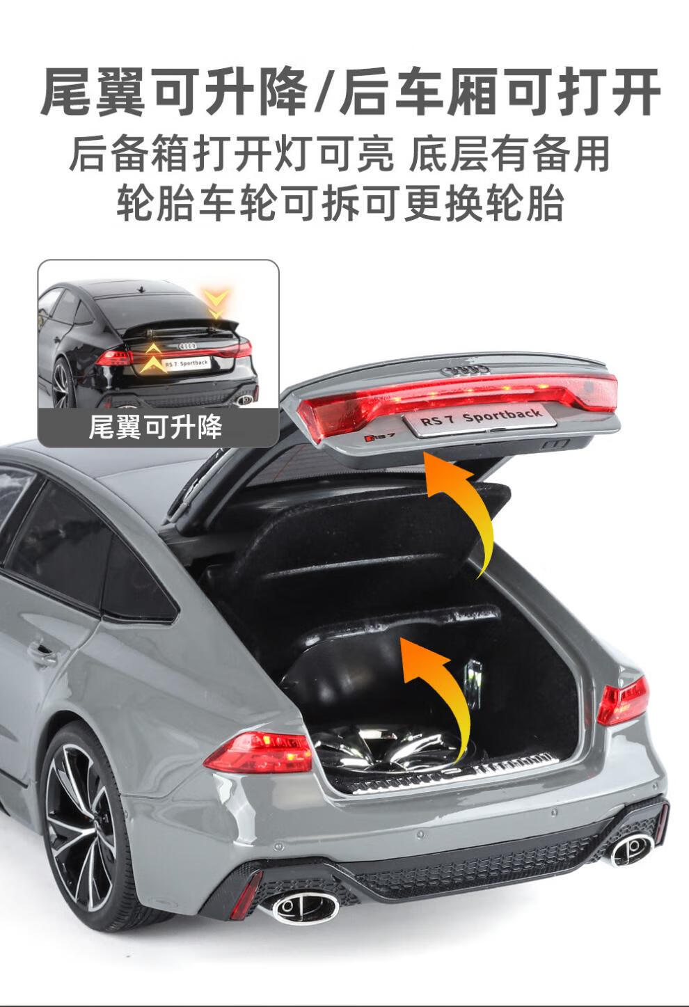 Gongma Gongma simulation 1 18 Audi RS7 alloy car model remote key version children's toy birthday 1 18 Audi RS7 Black Warrior + luxury lighting