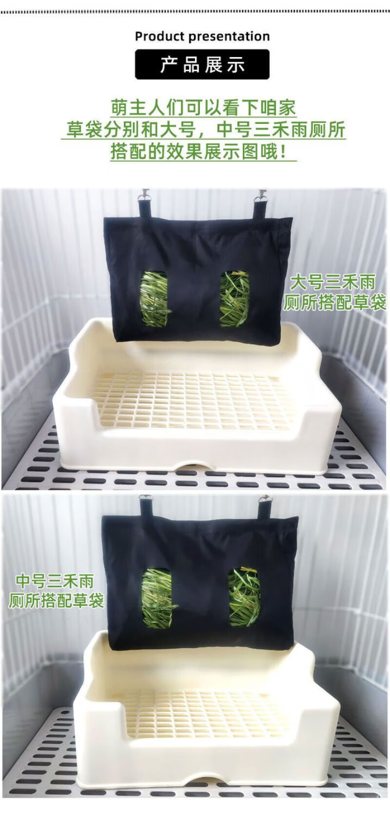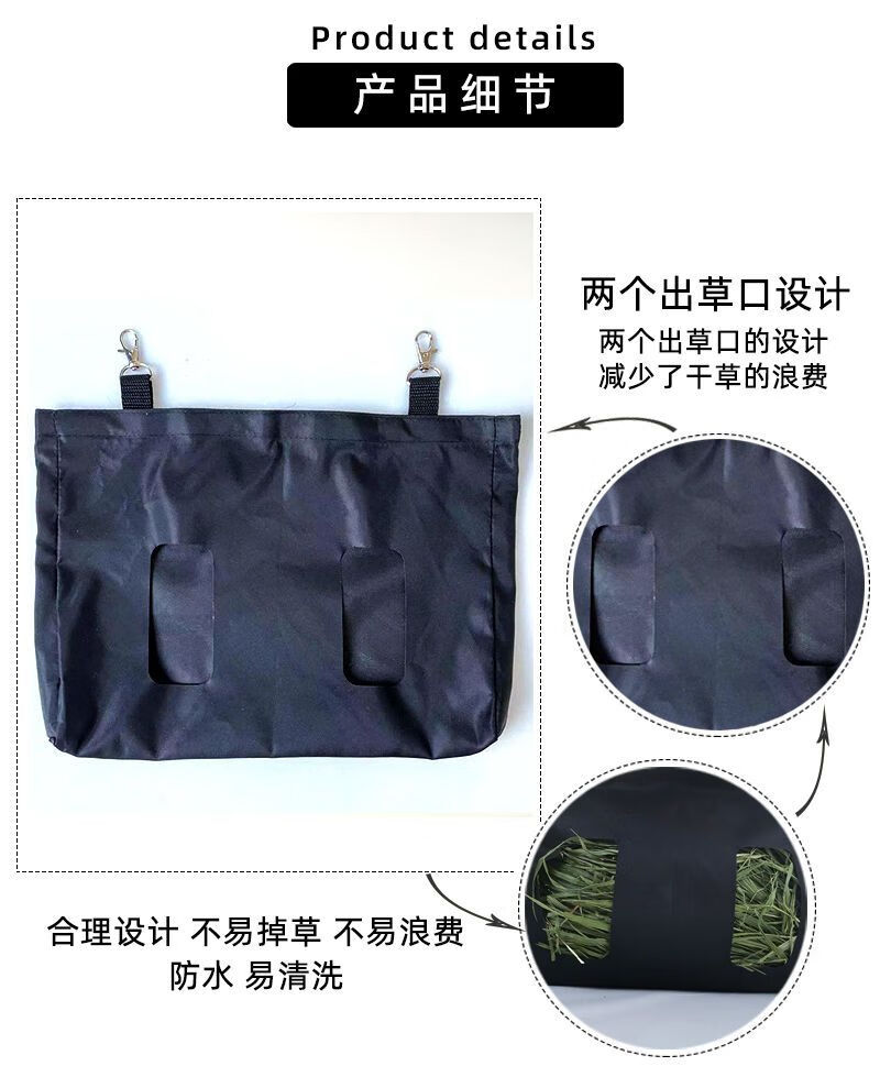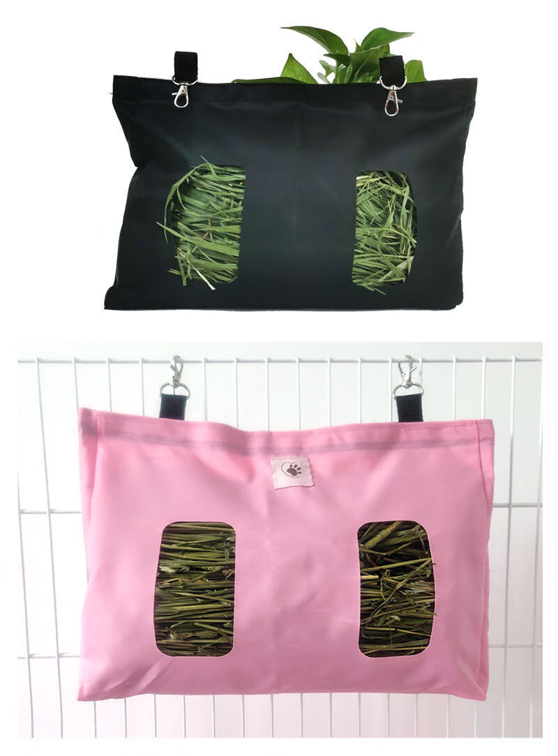Wind Pet Rabbit Grass Bag Anti-Waste Cloth Rack Pet Dutch Pig Grass Bag Rabbit Large Capacity Waterproof Hanging Hay Bag Cloth Bag Black 33*24cm