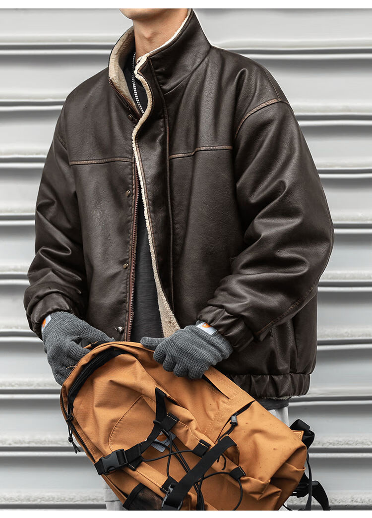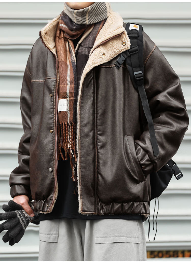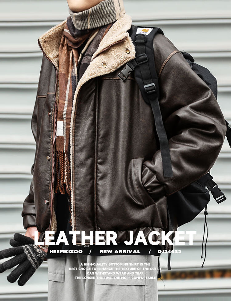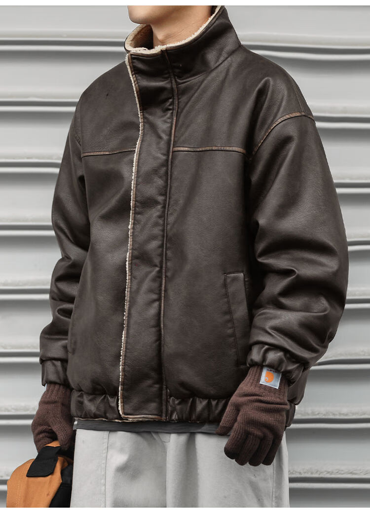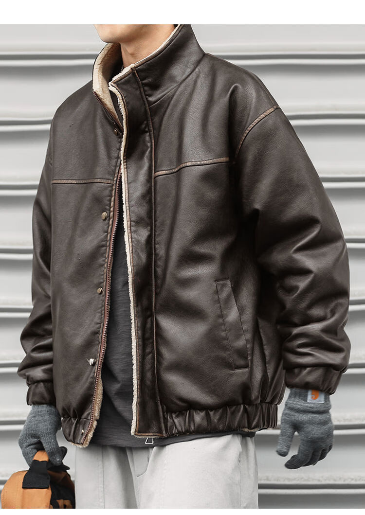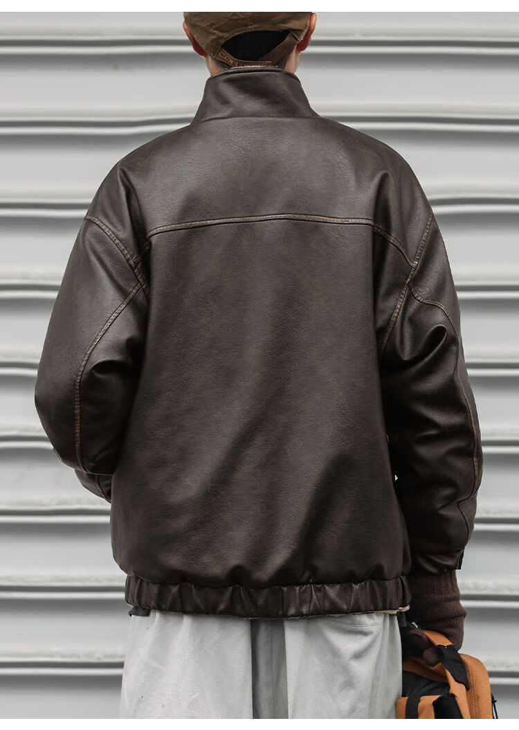 American winter men's Maillard jacket, retro colored leather jacket, casual versatile cotton jacket, trendy coffee color S S
