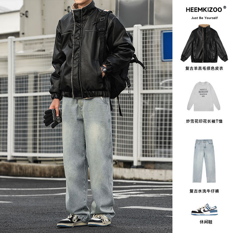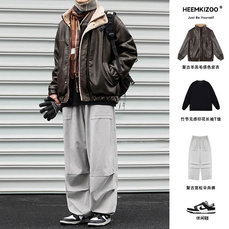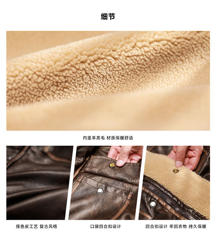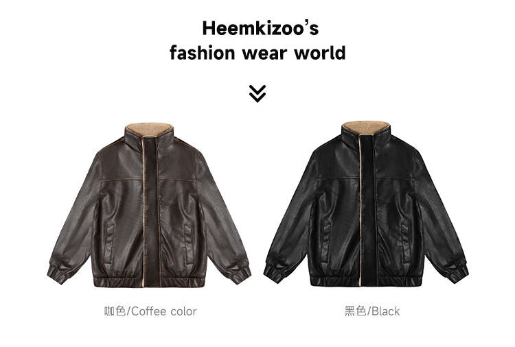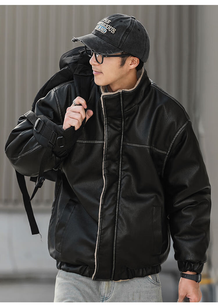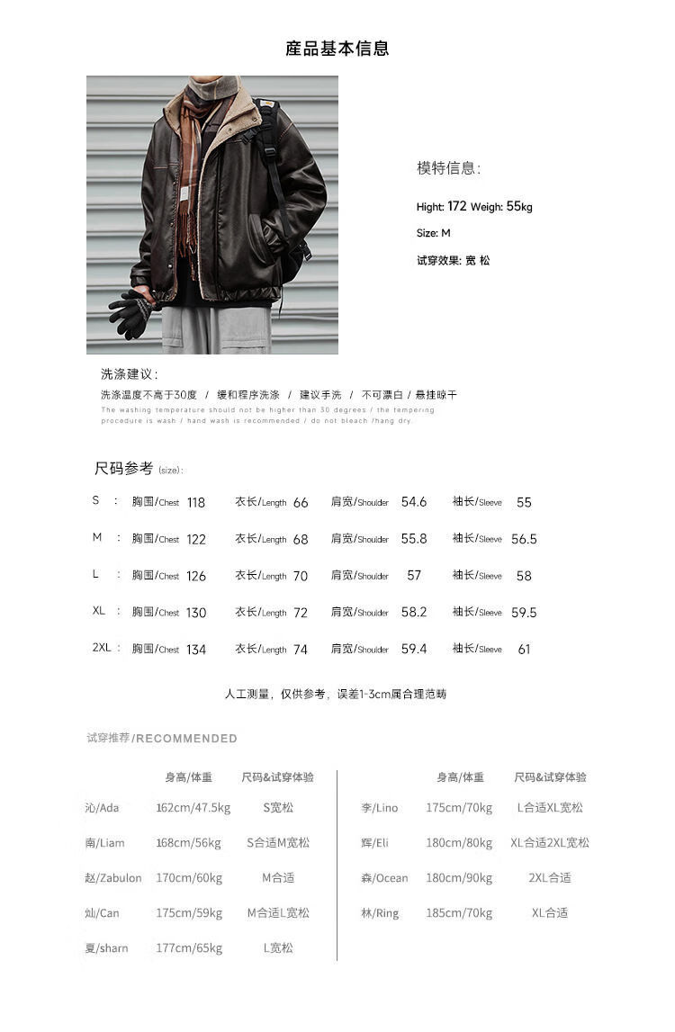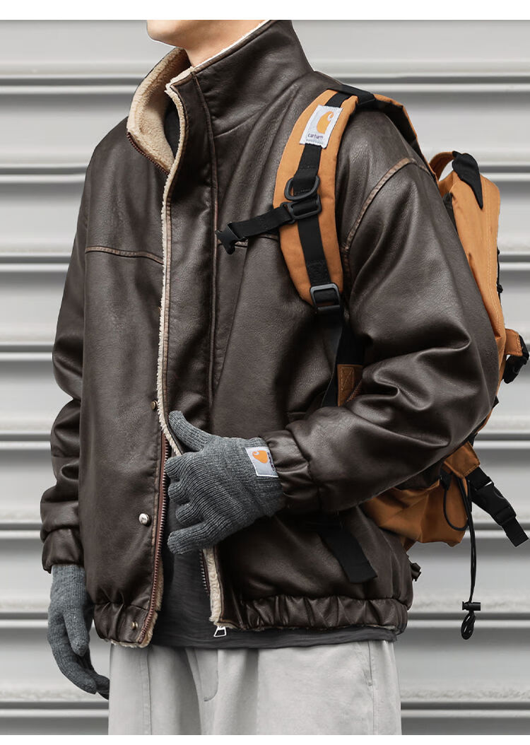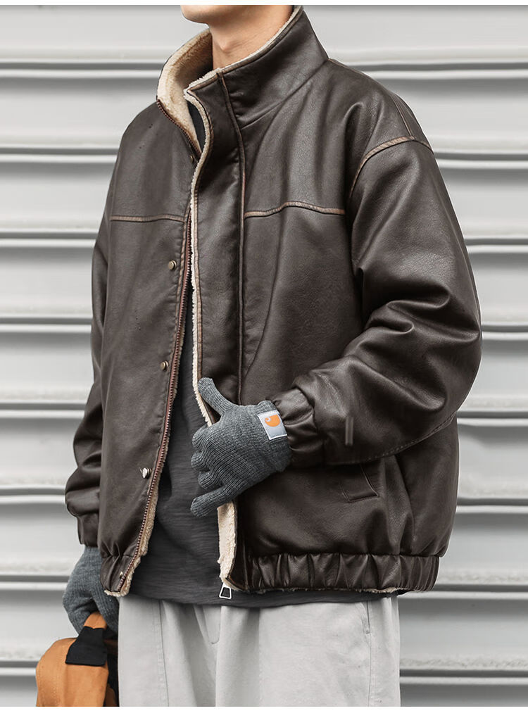 American winter men's Maillard jacket, retro colored leather jacket, casual versatile cotton jacket, trendy coffee color S S