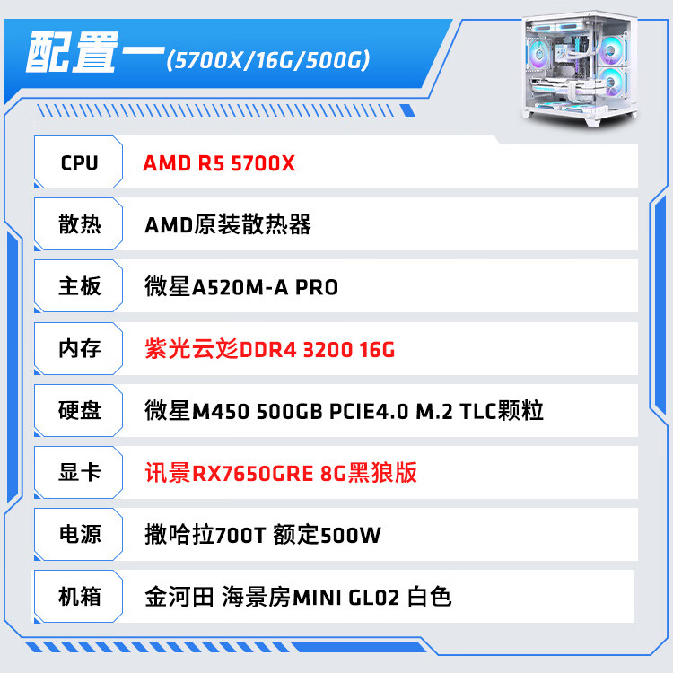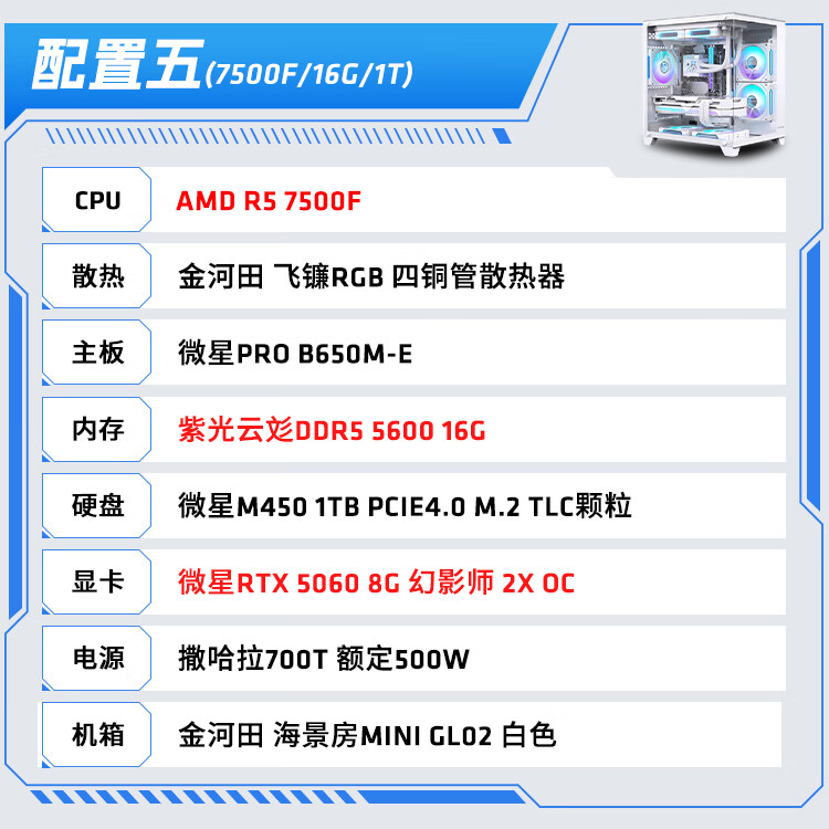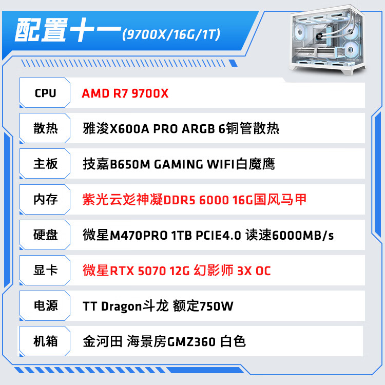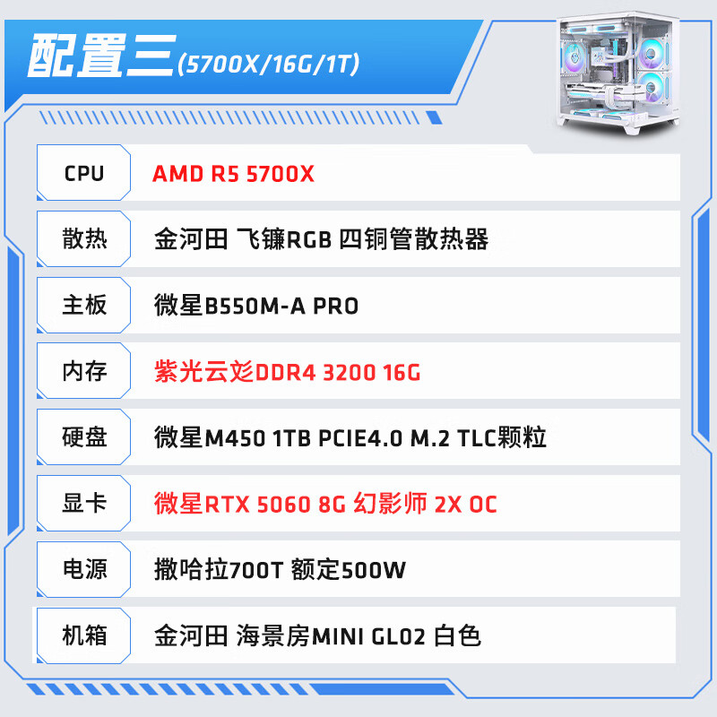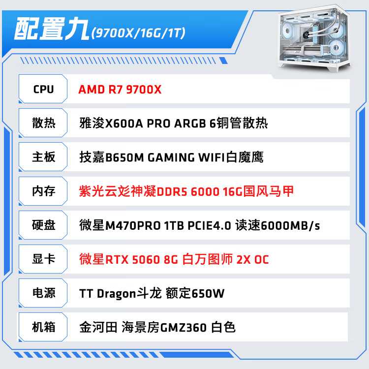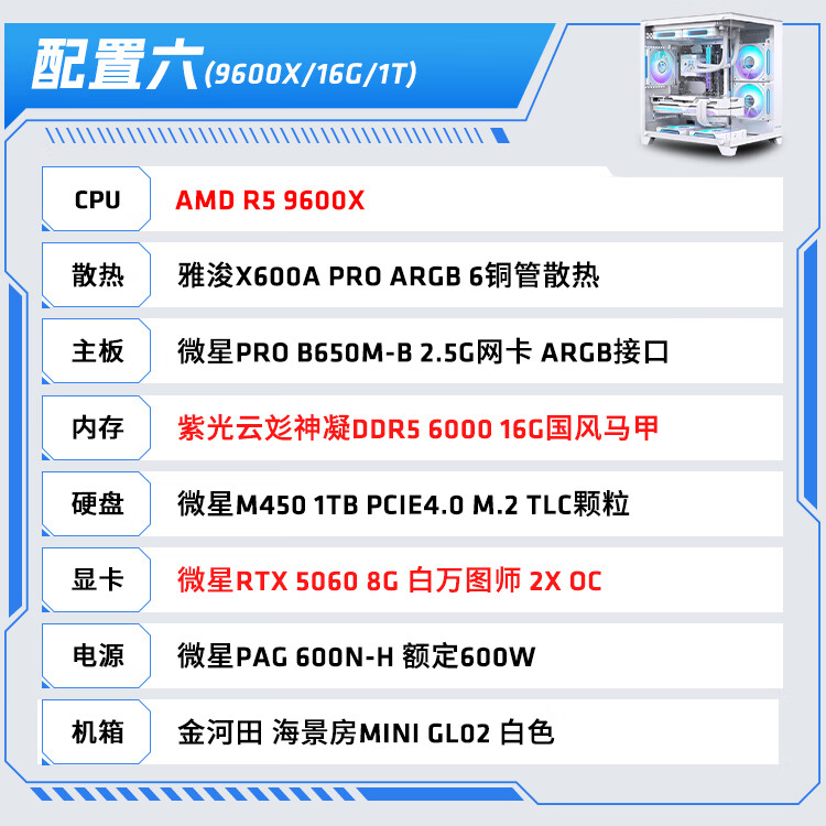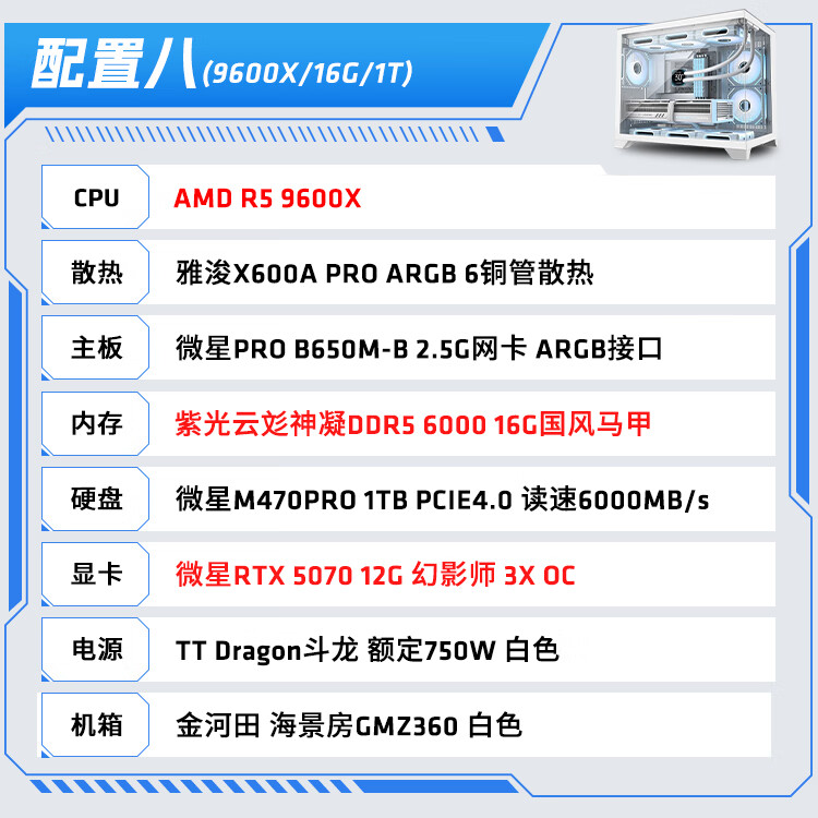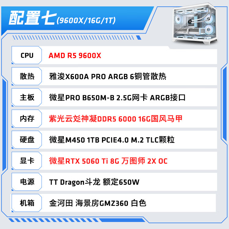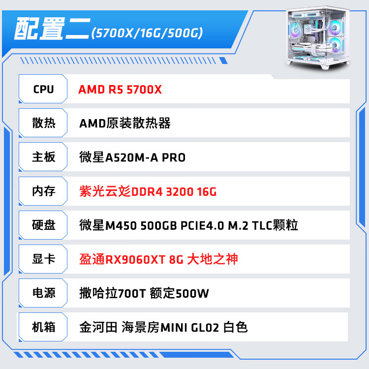 AMD Ryzen R5 9600X/R7 5700X white sea view room RTX 5060/5060TI graphics card game live broadcast desktop computer host assembly computer DIY assembly machine configuration two R7 5700X+RX9060XT host