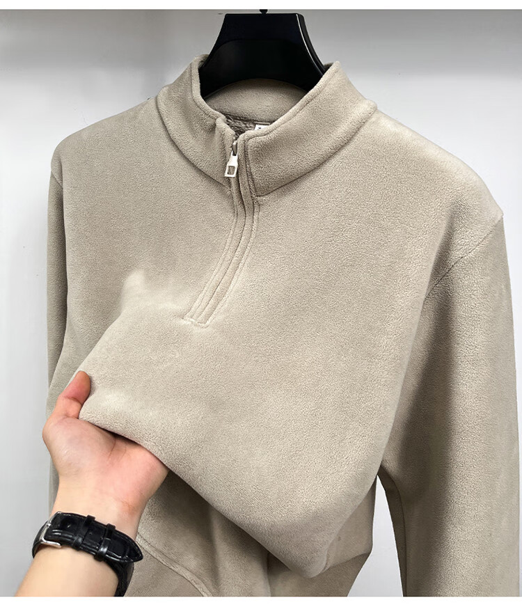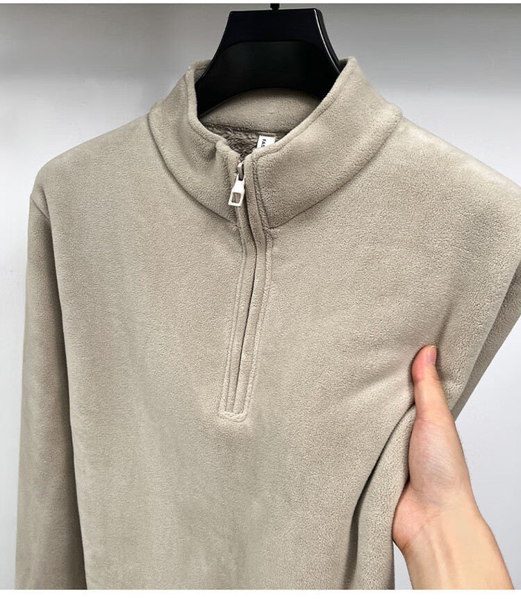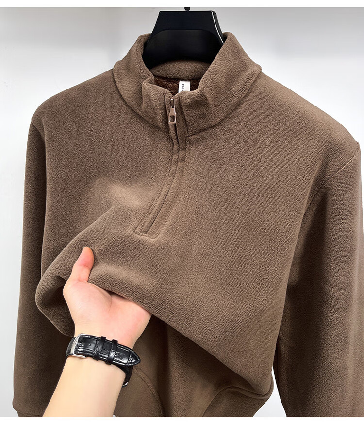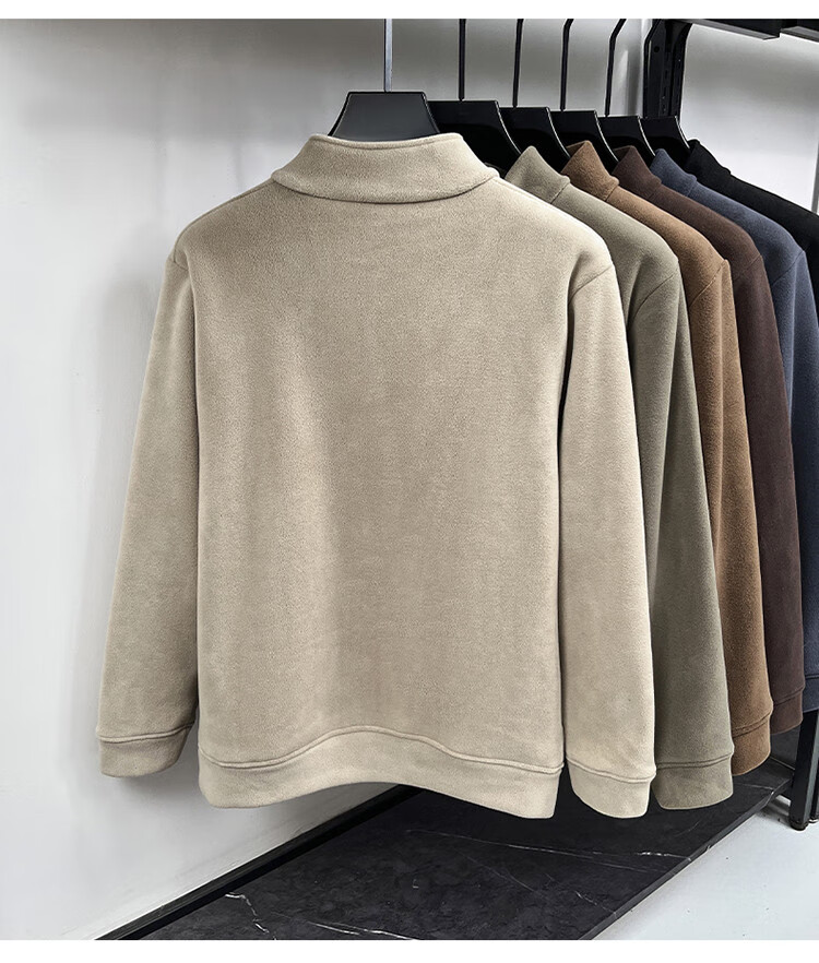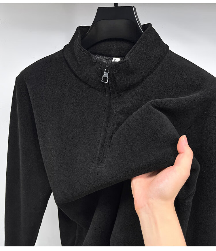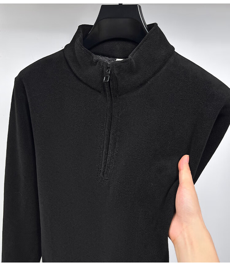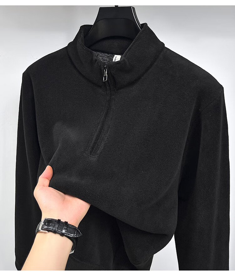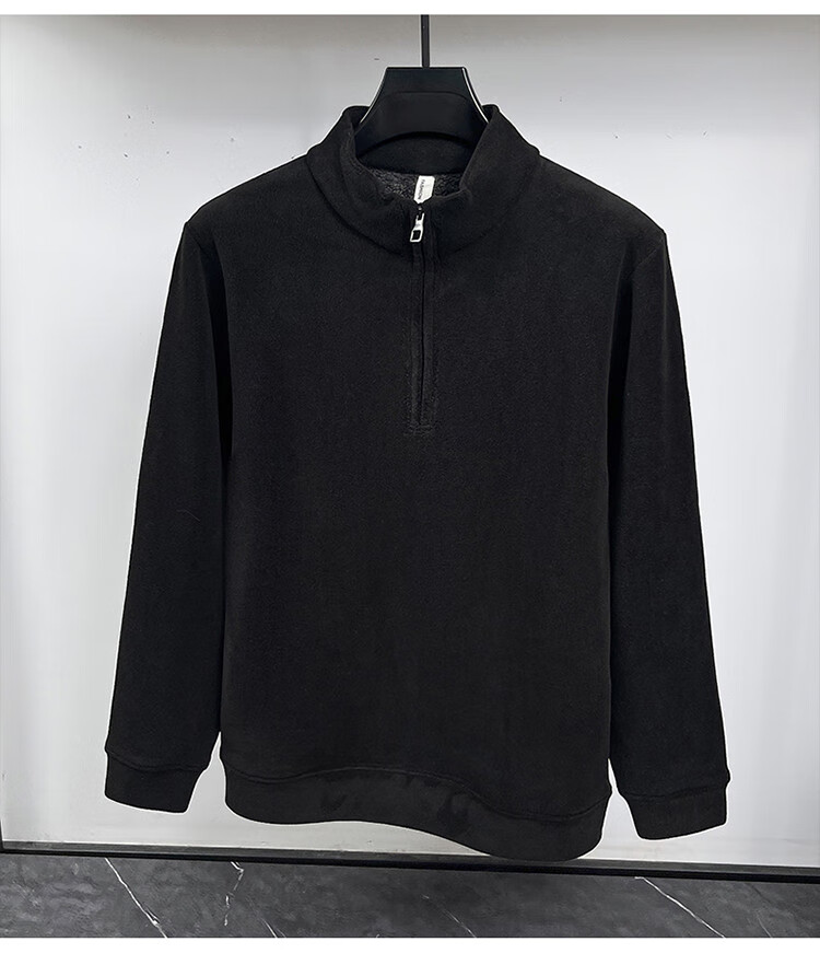 Nasawassup light luxury men's autumn and winter Austrian velvet half-high zipper bottoming shirt solid color fleece long-sleeved velvet thickened sweatshirt black XL