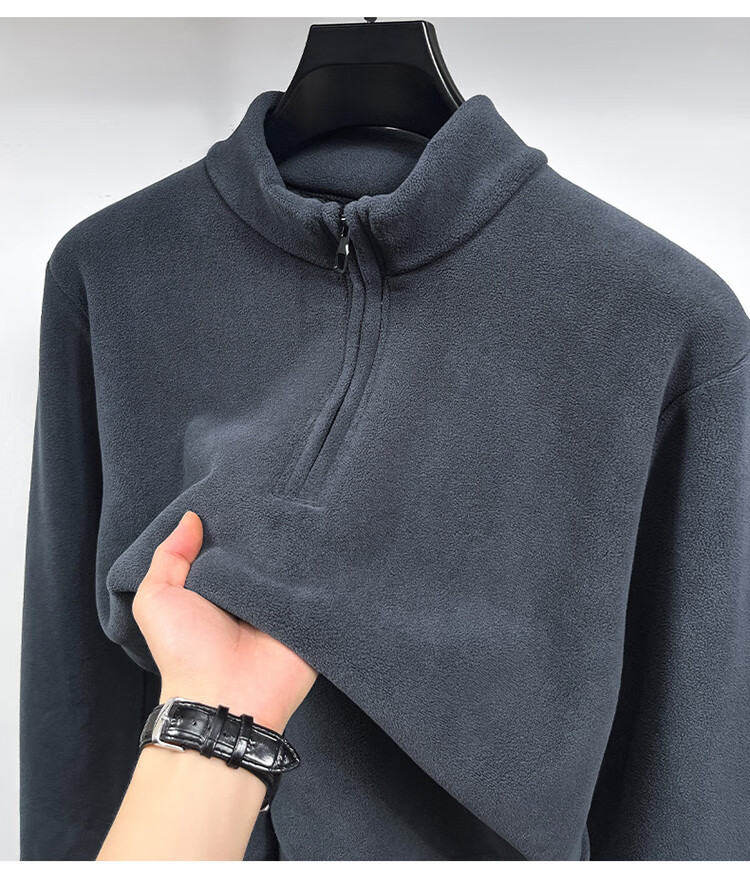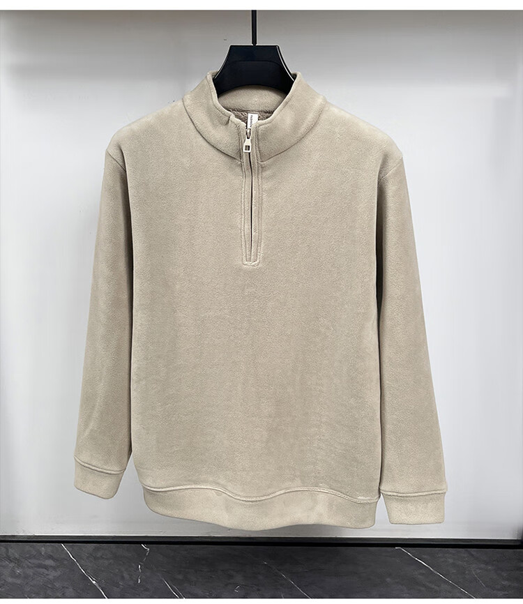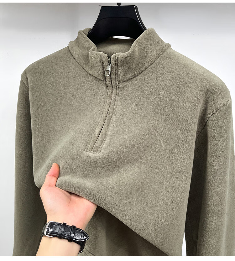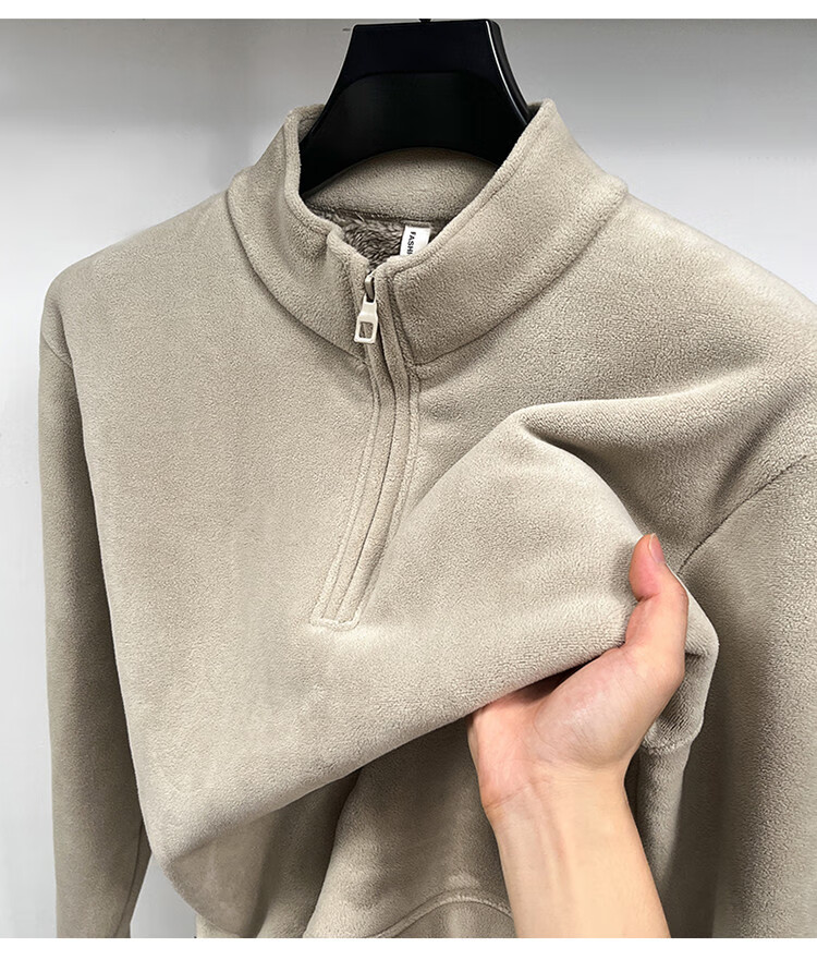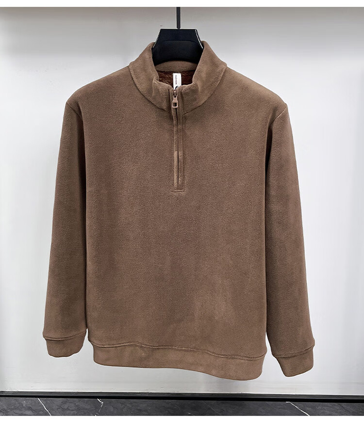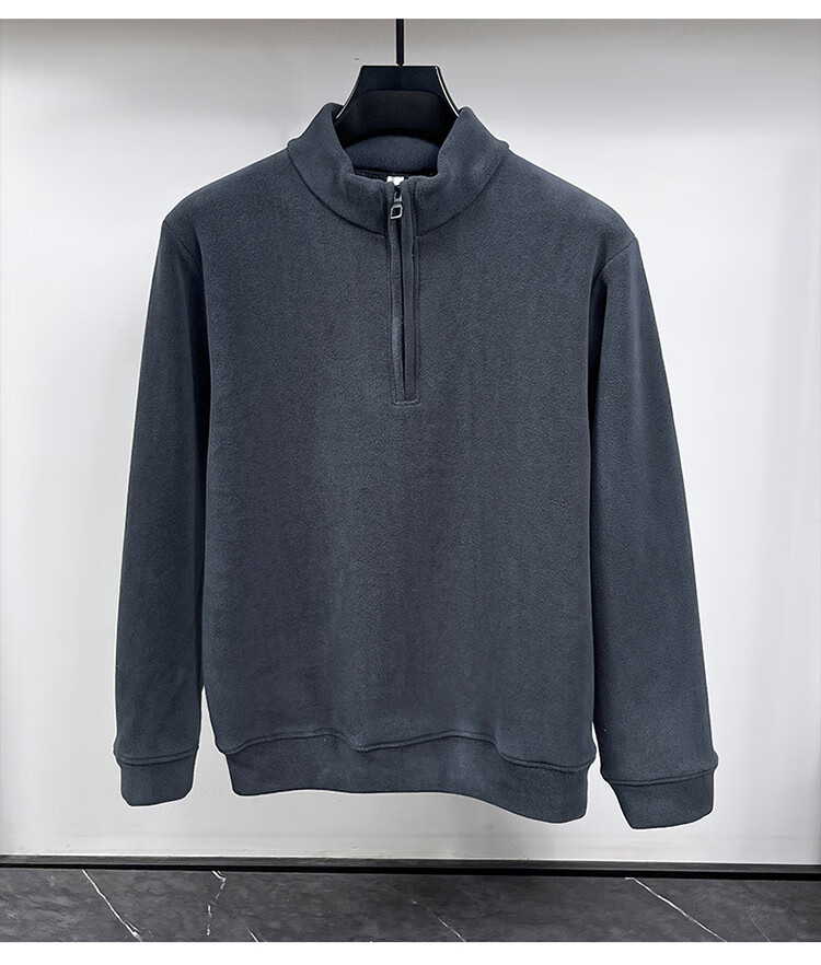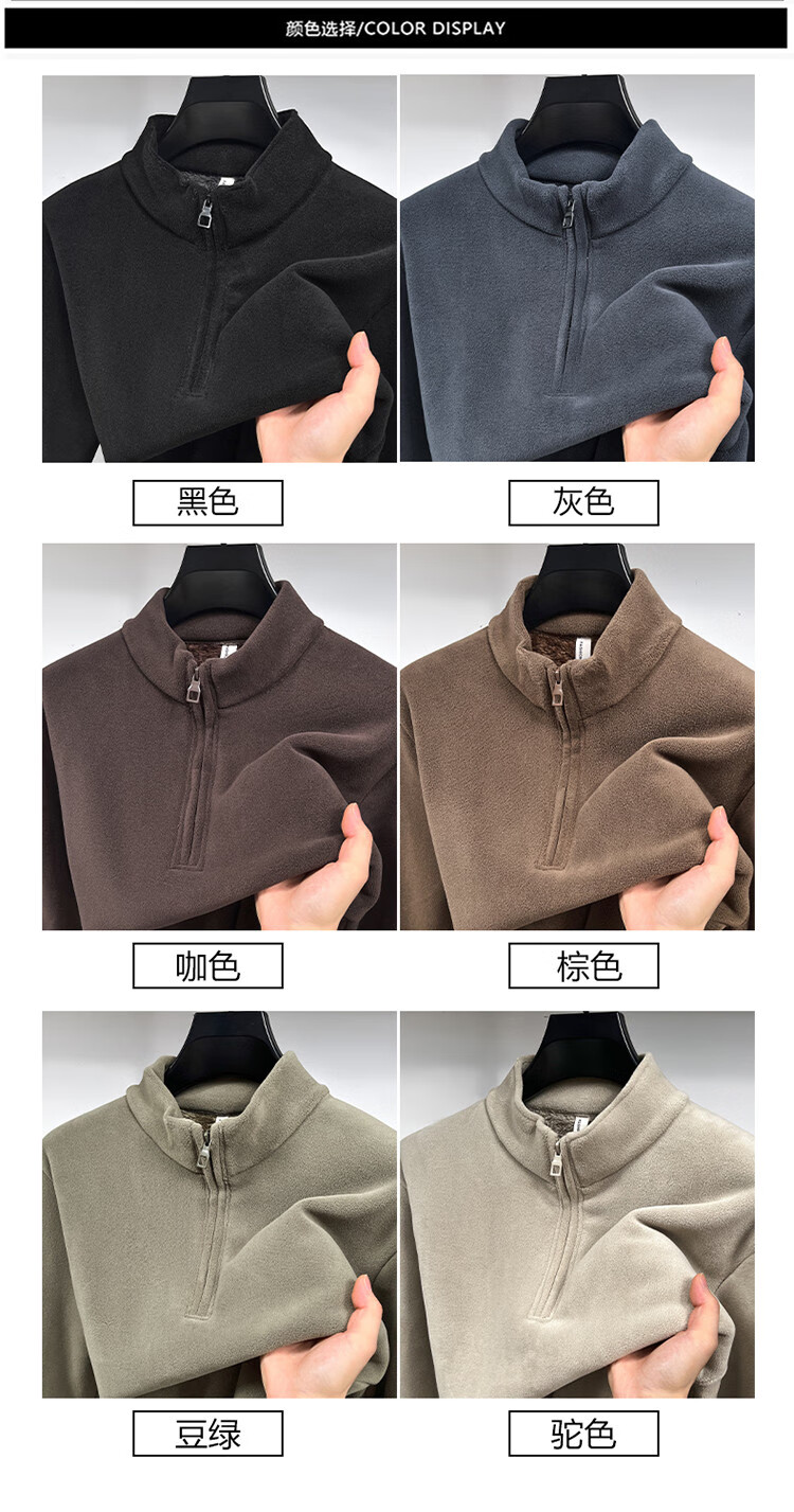 Nasawassup light luxury men's autumn and winter Austrian velvet half-high zipper bottoming shirt solid color fleece long-sleeved velvet thickened sweatshirt black XL