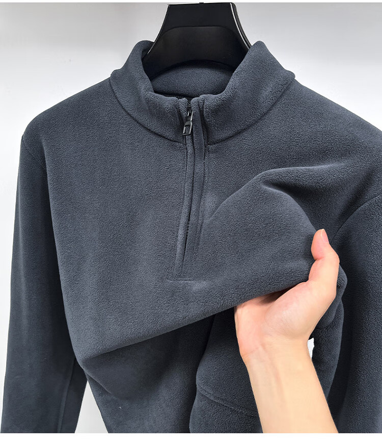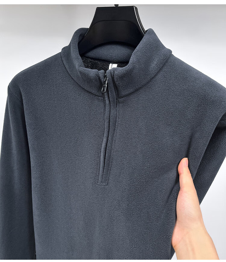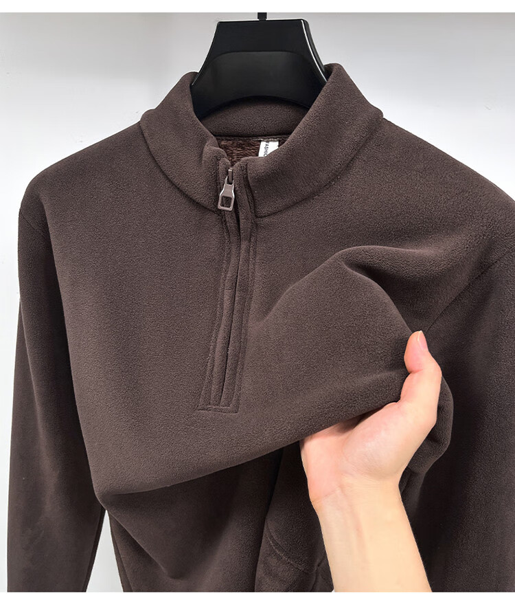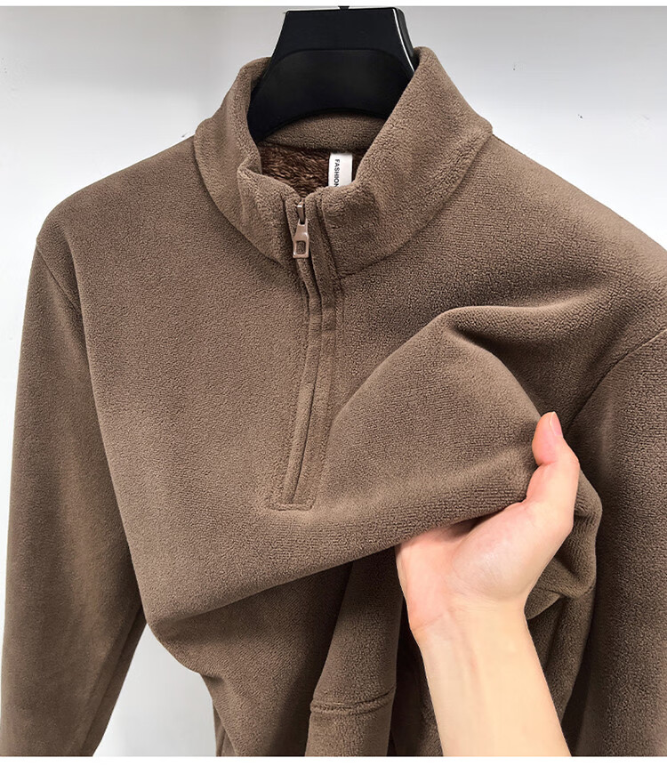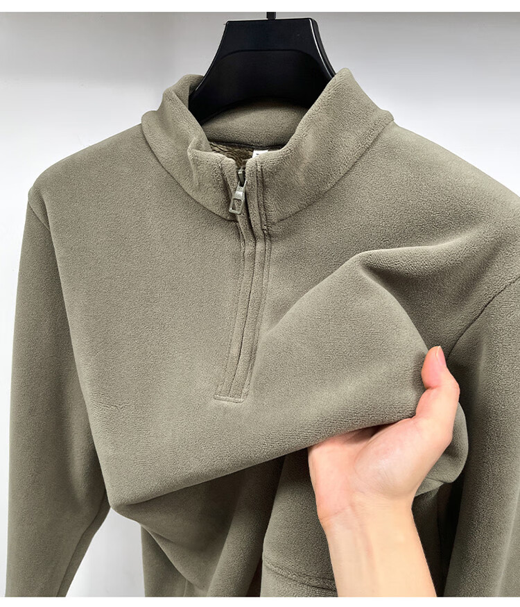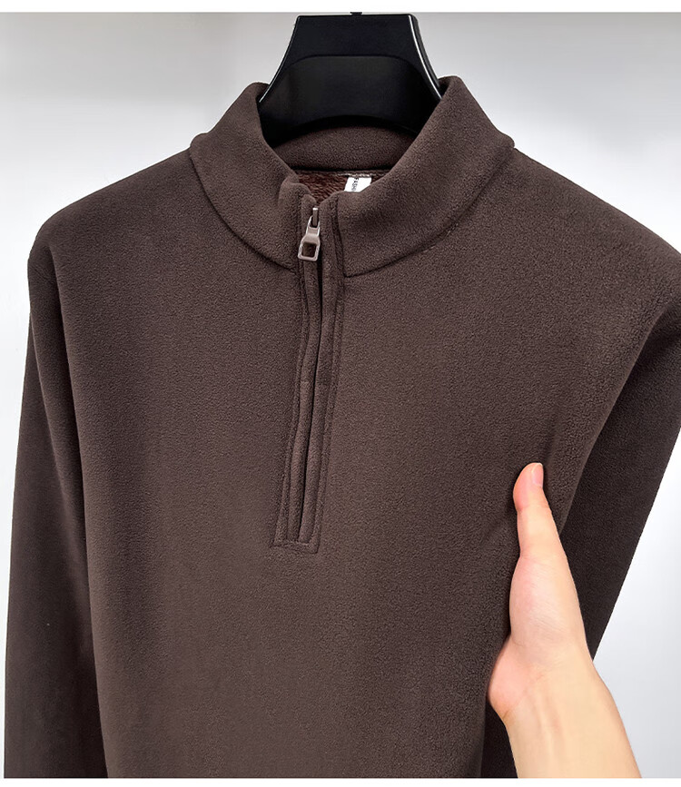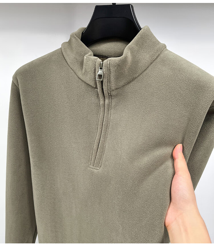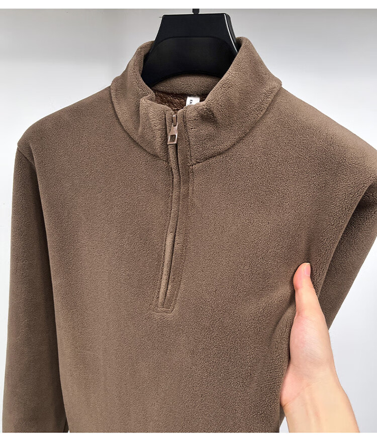 Nasawassup light luxury men's autumn and winter Austrian velvet half-high zipper bottoming shirt solid color fleece long-sleeved velvet thickened sweatshirt black XL