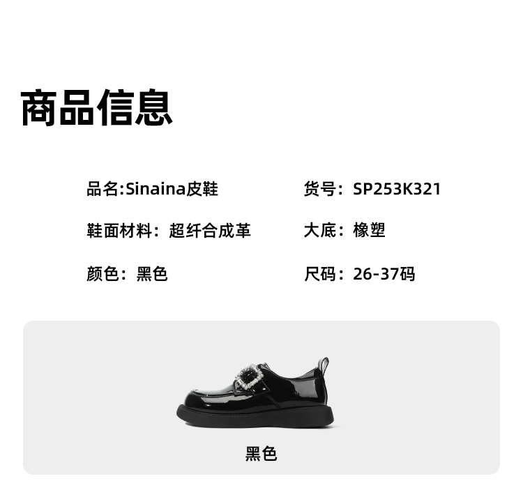 Sinaina Girls Loafers 2025 Autumn New Girls Loafers Princess Black Single Shoes Campus Student Shoes Bright Black 34