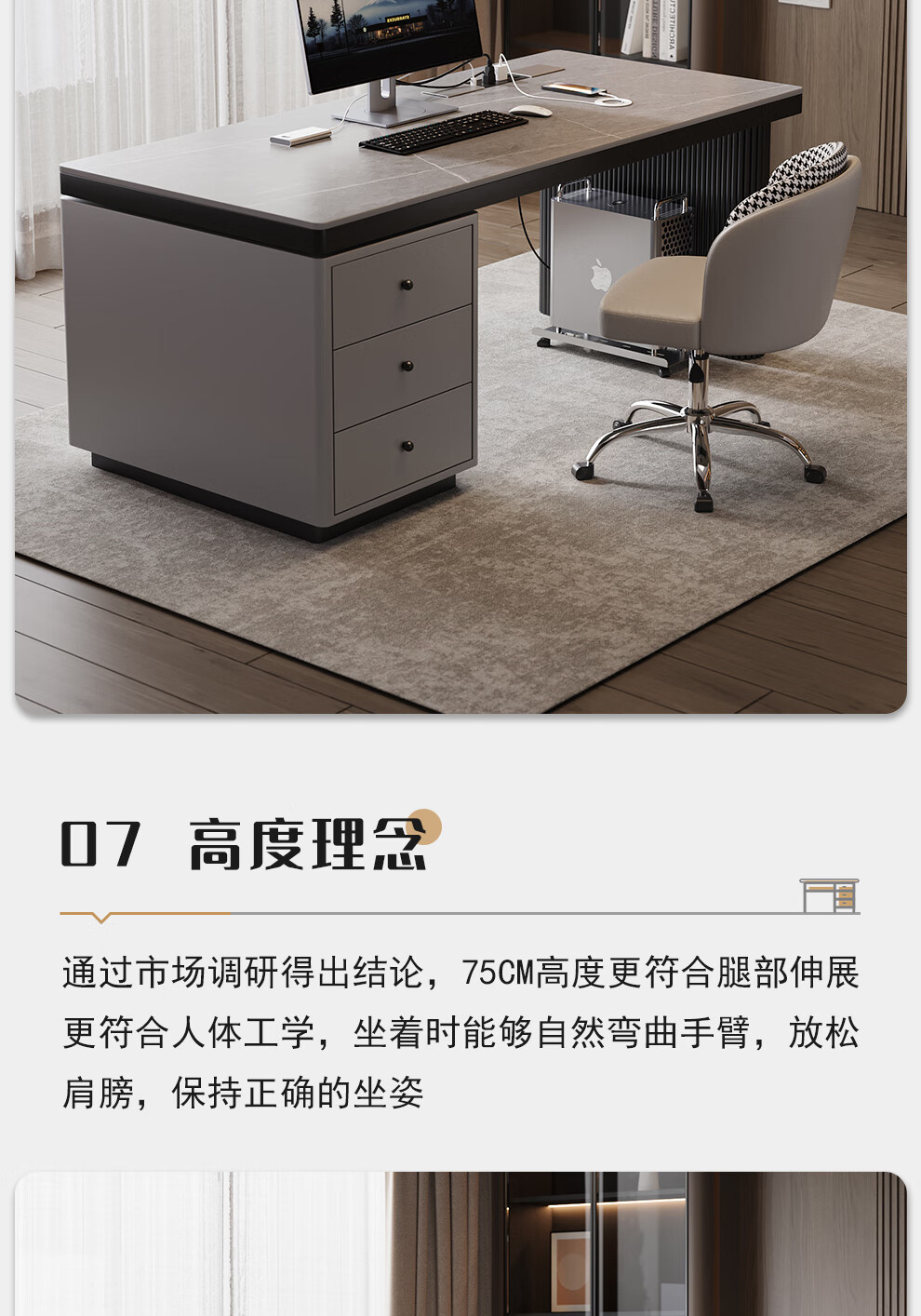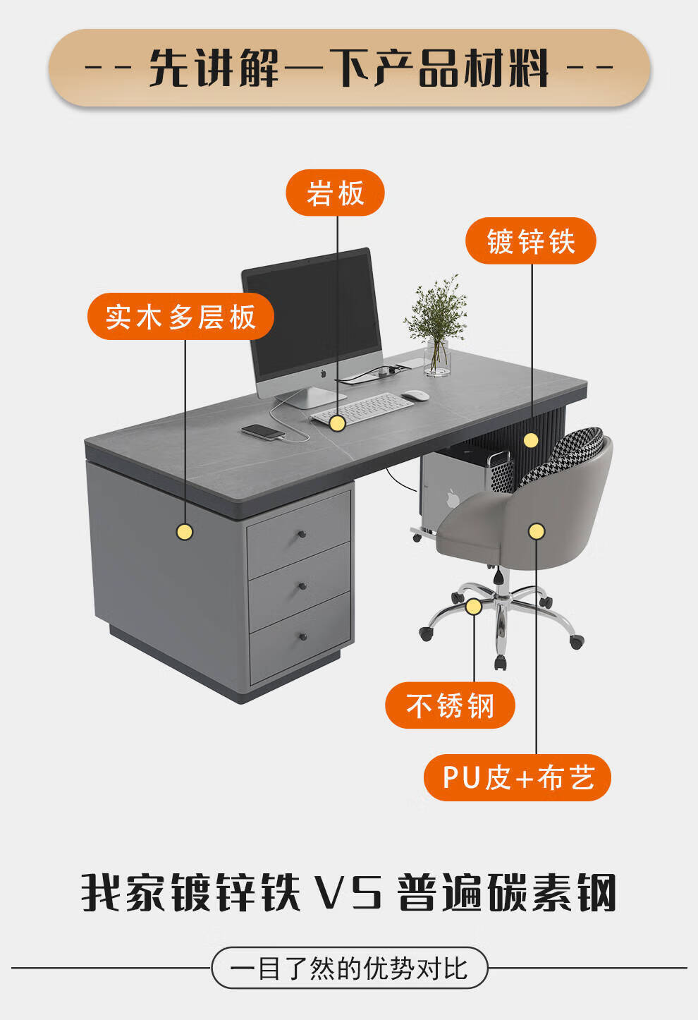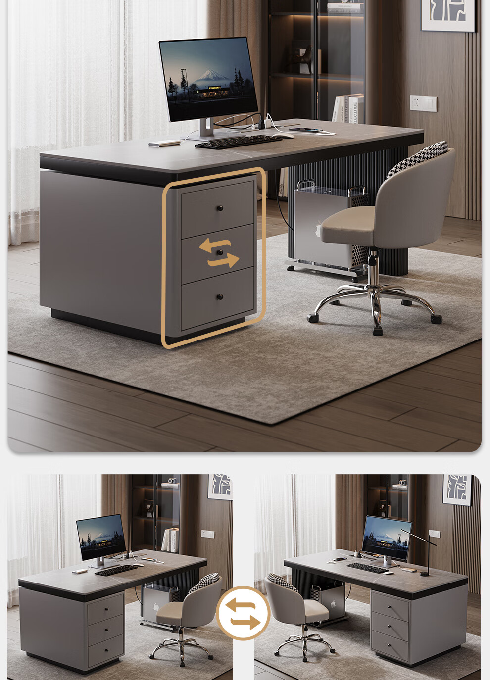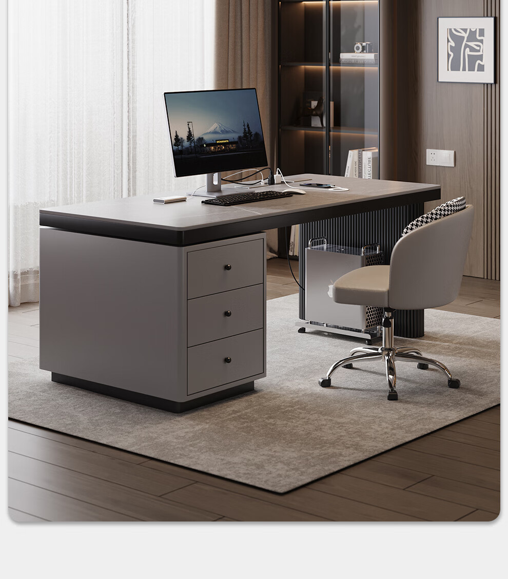 Verdainton Italian light luxury style computer desk bedroom student study table new home slate desk study office writing desk black feet + black cabinet + Chanel glossy 160*60*75 single table with desktop power strip + threading hole + host position