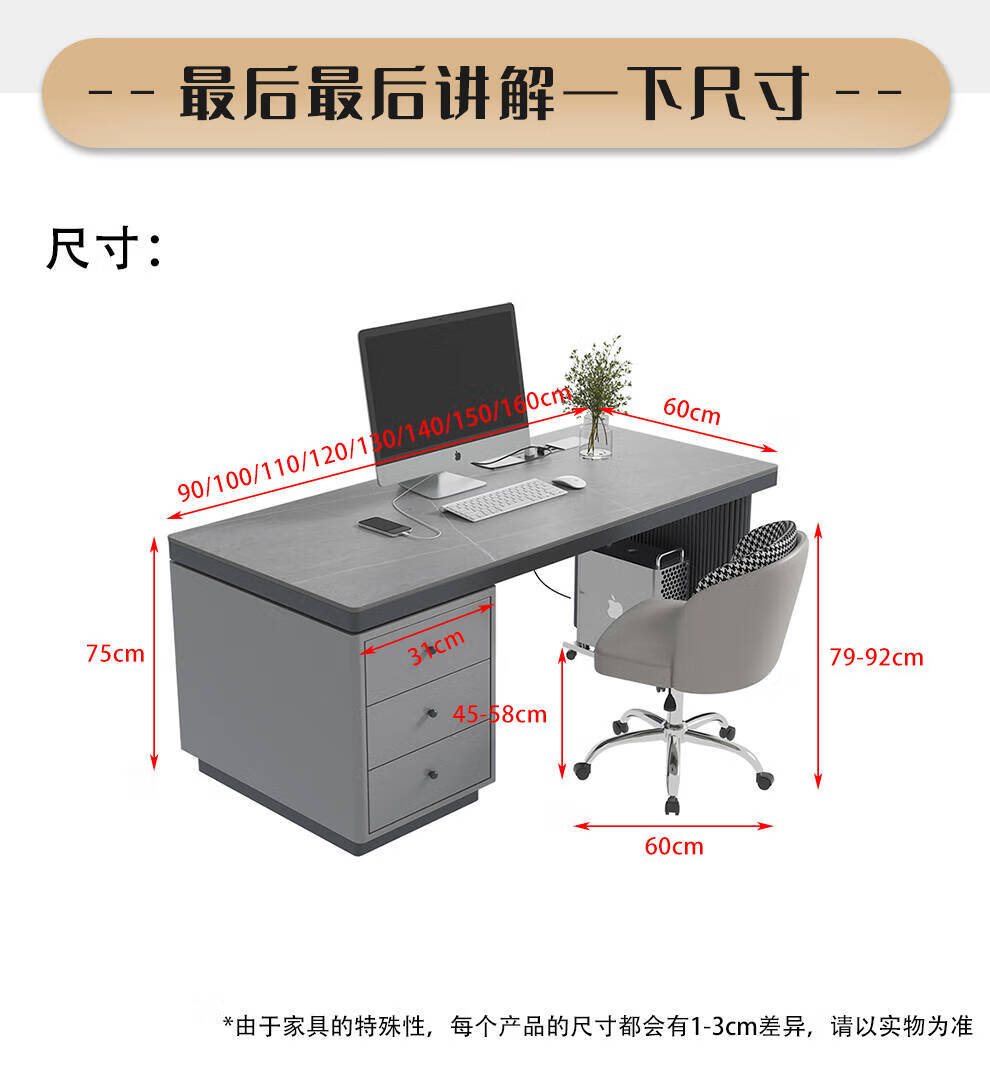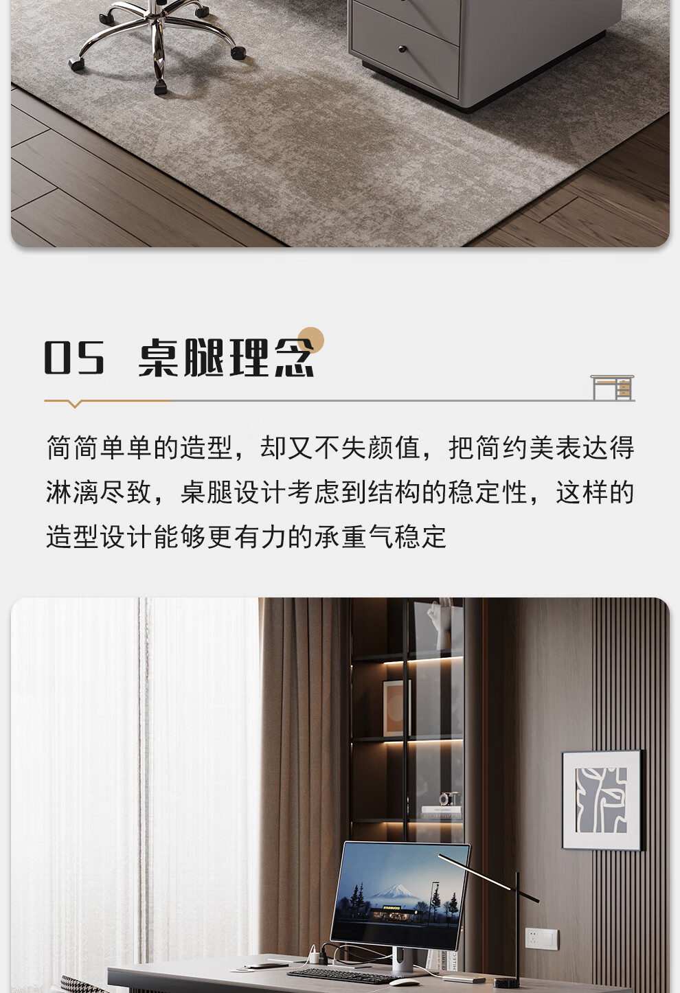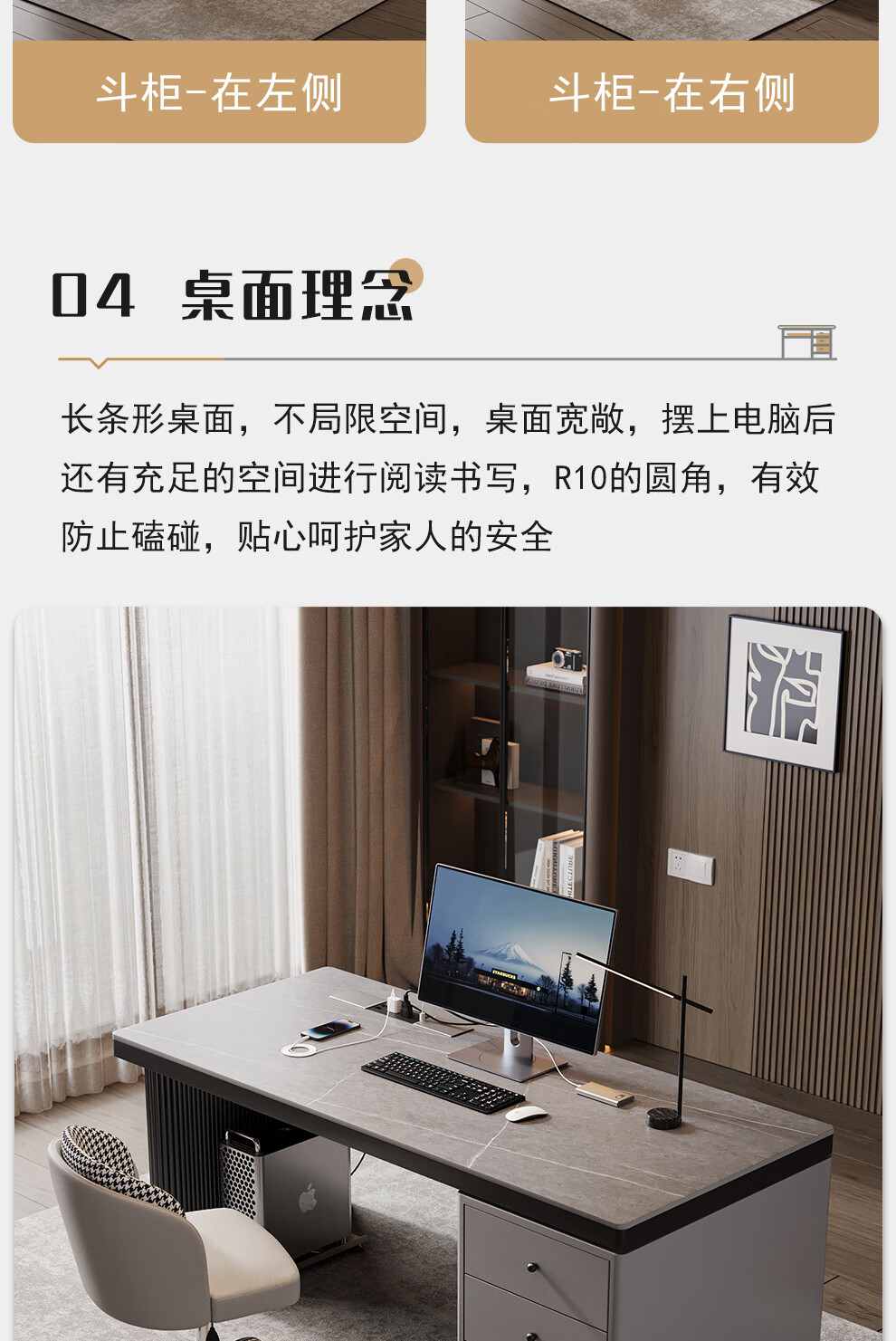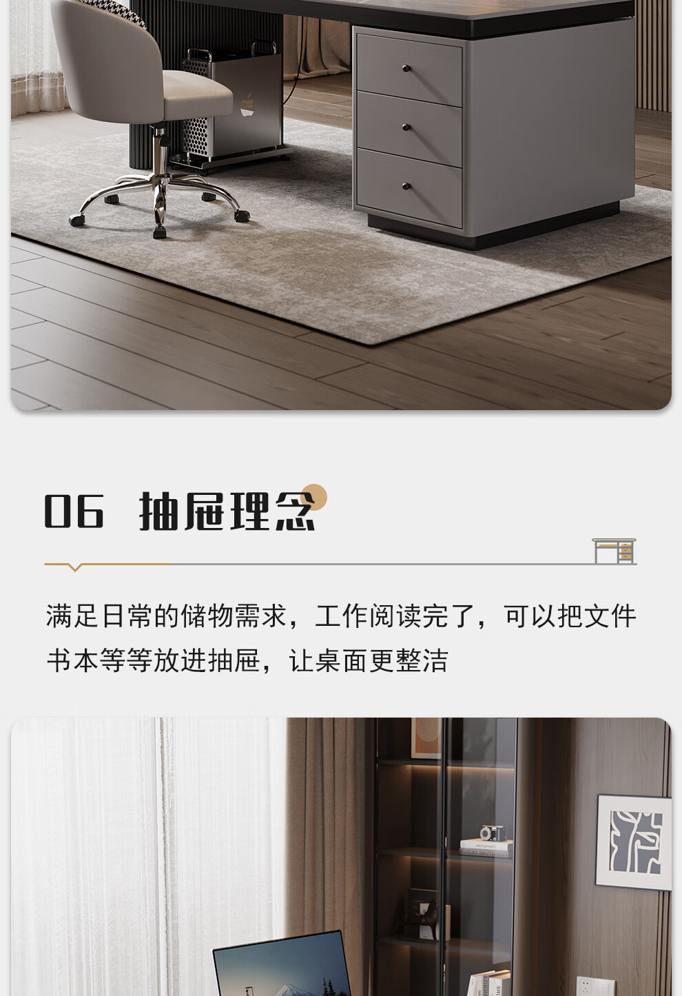Verdainton Italian light luxury style computer desk bedroom student study table new home slate desk study office writing desk black feet + black cabinet + Chanel glossy 160*60*75 single table with desktop power strip + threading hole + host position