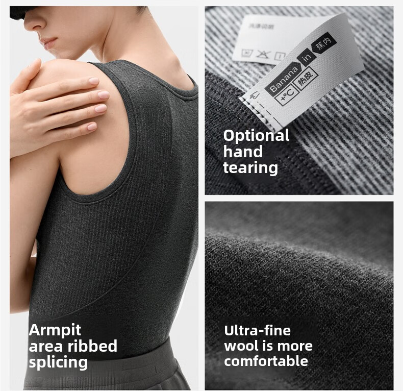 Jiao Nei Ruipi 701++ Women's Vest Sweatshirt Breathable Round Neck 7A Wool Warm T-Shirt Women Sheep 90 Degrees Gray S
