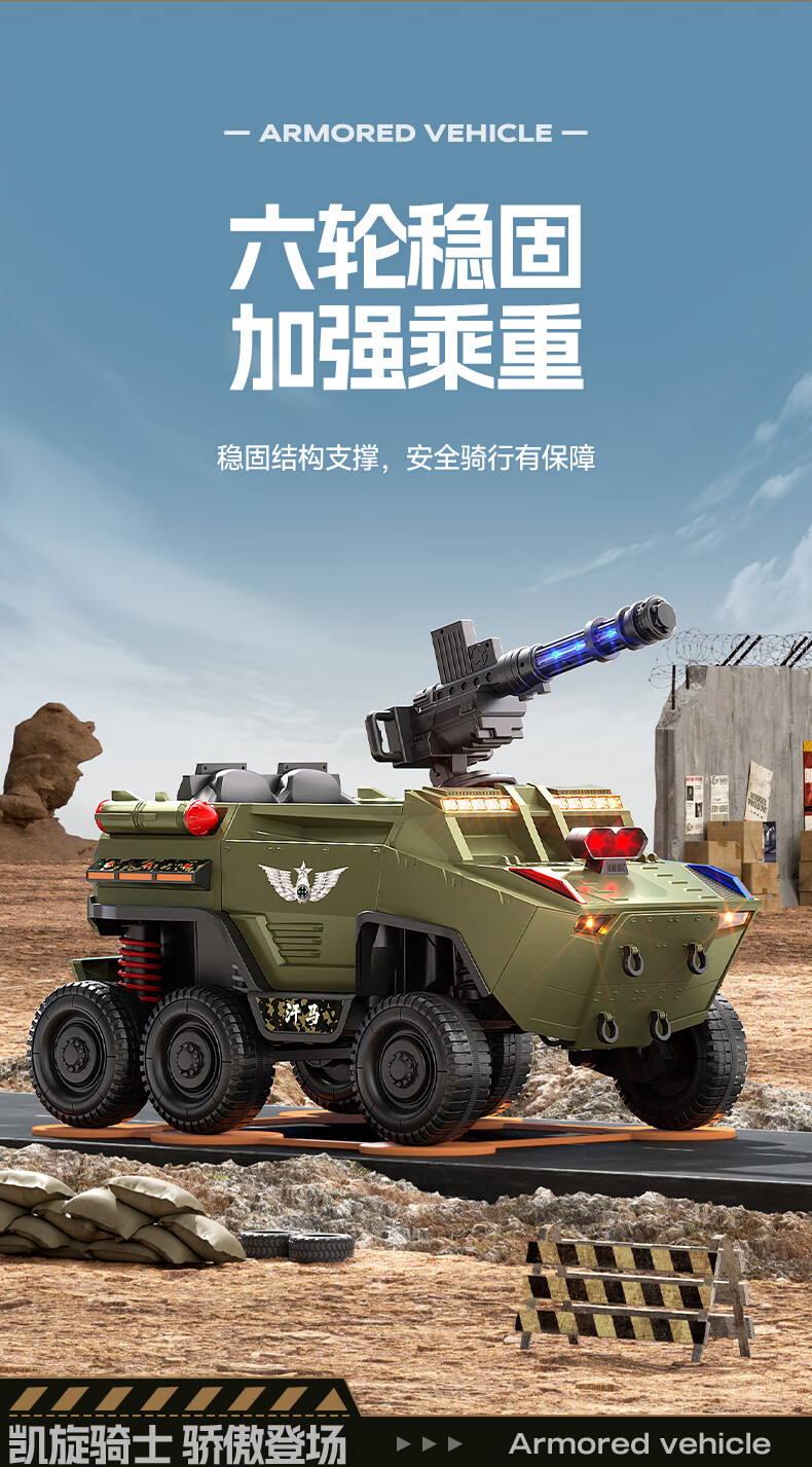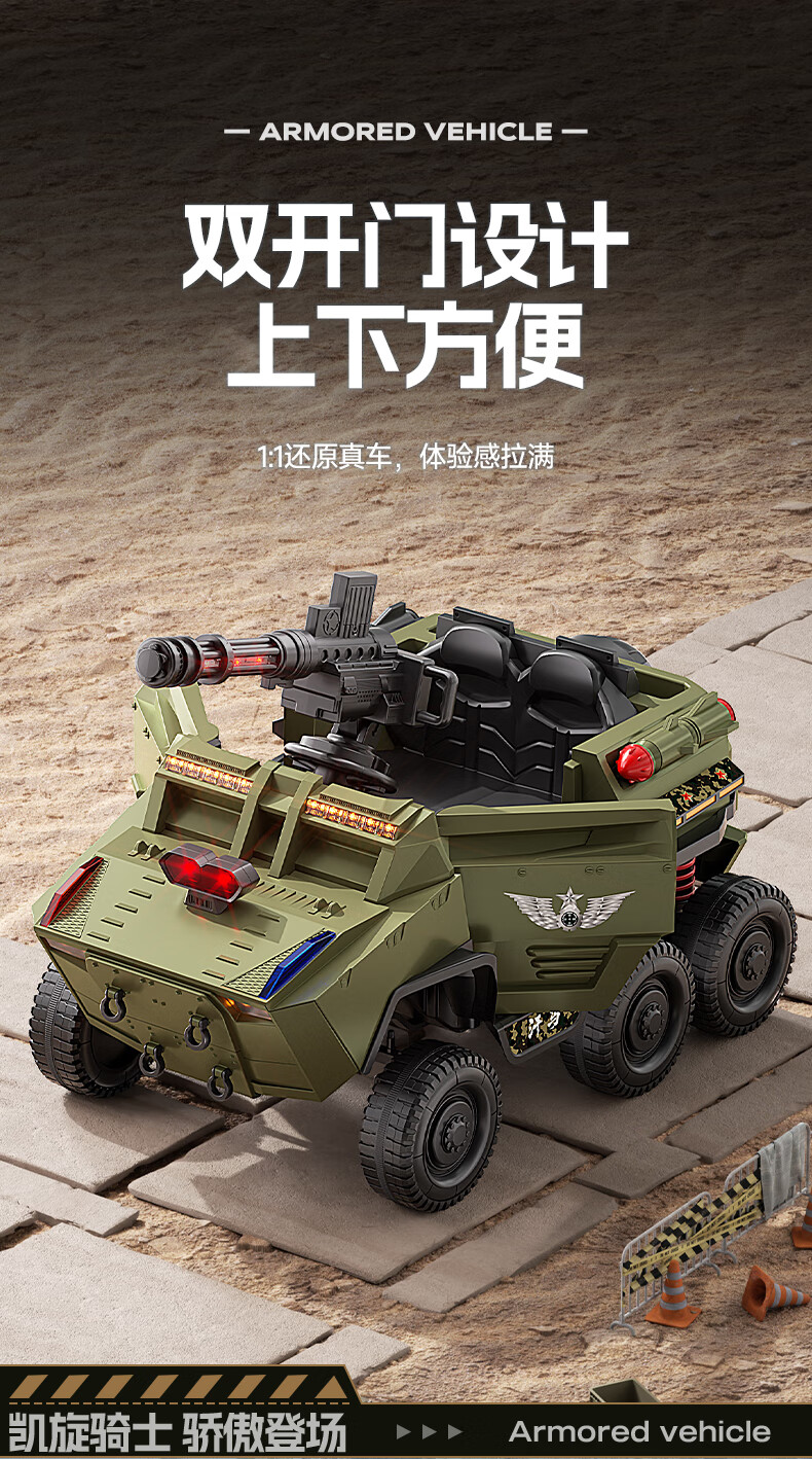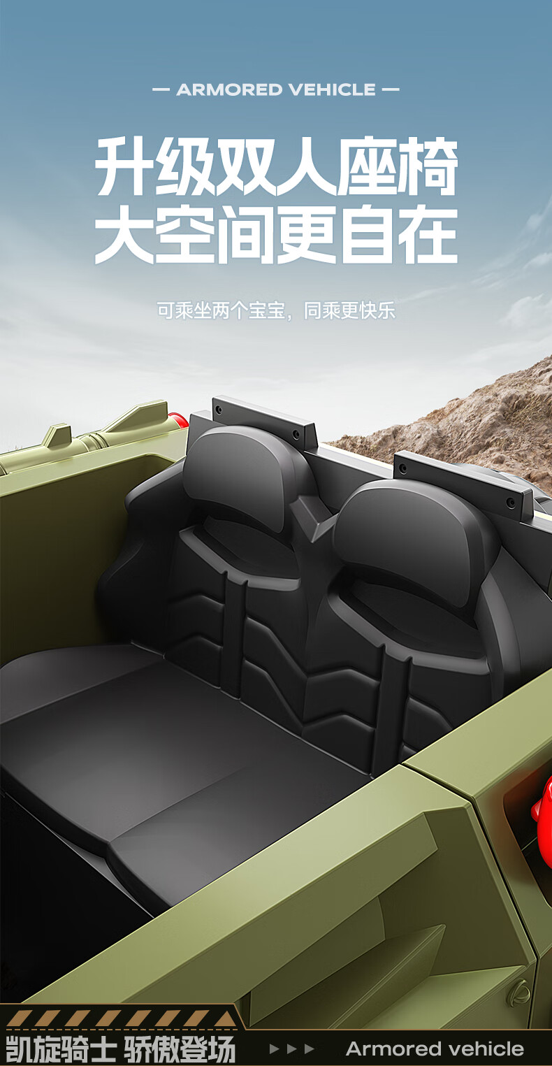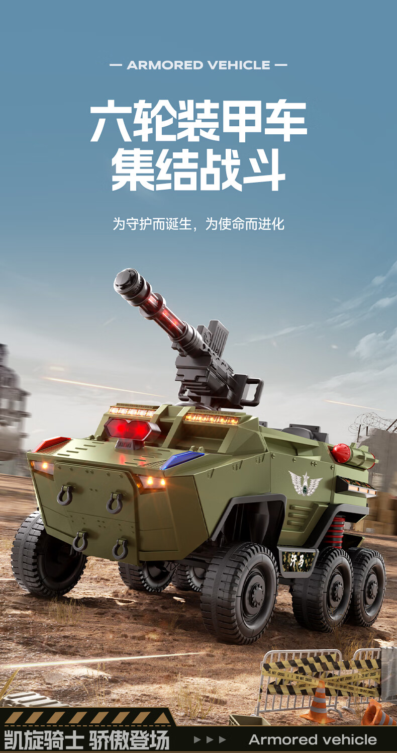 Mother and baby children's electric car boy six-wheel child remote control toy car baby tank armored car can take adults off-road army green + four-wheel drive + 12V7 + light and music + remote control electric drive